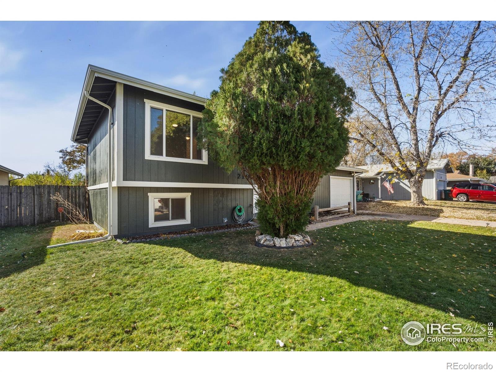 This inviting property has been lovingly refreshed from top to bottom, offering a move-in ready experience with updated finishes and modern touches throughout. Step inside to a split-level layout featuring vaulted ceilings that enhance the spacious feel, complemented by fresh paint, brand-new wood-grain tile and carpet flooring, and new front windows that flood the home with natural light. The main level is designed for everyday living, seamlessly connecting the living, kitchen, and dining areas for effortless entertaining. The kitchen has been given a fresh new look with updated modern appliances, a sleek new backsplash, and newly painted cabinets, with plenty of prep space and storage to match. Upstairs, discover a comfortable family room highlighted by a cozy fireplace, plus an adjacent bed and bath for flexible use. The lower level has been completely renovated down to the studs, offering two more flexible bedrooms that can easily adapt to your needs, whether as a home office or a creative studio. Both bathrooms have been beautifully renovated as well, with custom tilework for a polished look. Outside, the spacious fenced yard features a large, covered patio, mature trees, a variety of plants, and a firepit area, giving you the perfect space for outdoor entertaining. A storage shed adds convenient space for tools and outdoor gear. An insulated 1-car attached garage adds utility, providing secure parking, extra storage, and even a workshop area. Just minutes from shopping, dining, and all the amenities Greeley has to offer. No HOA!