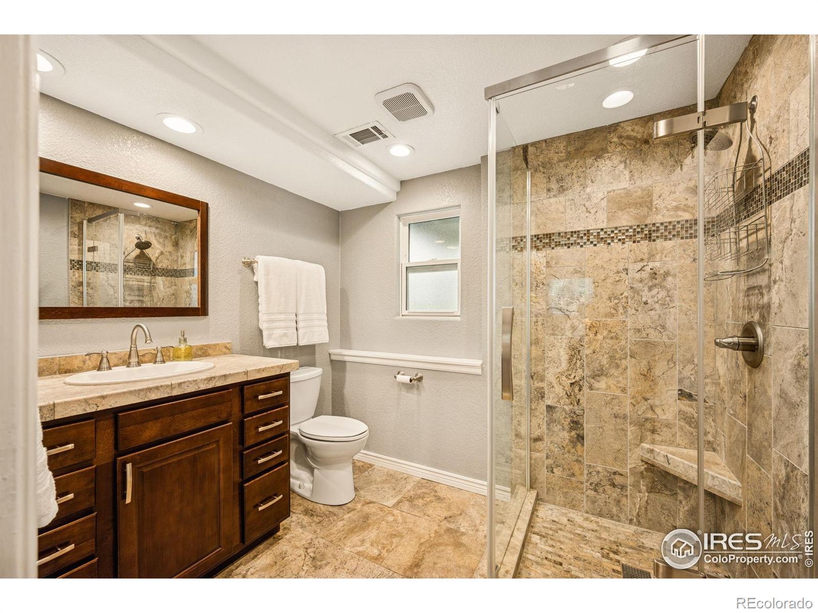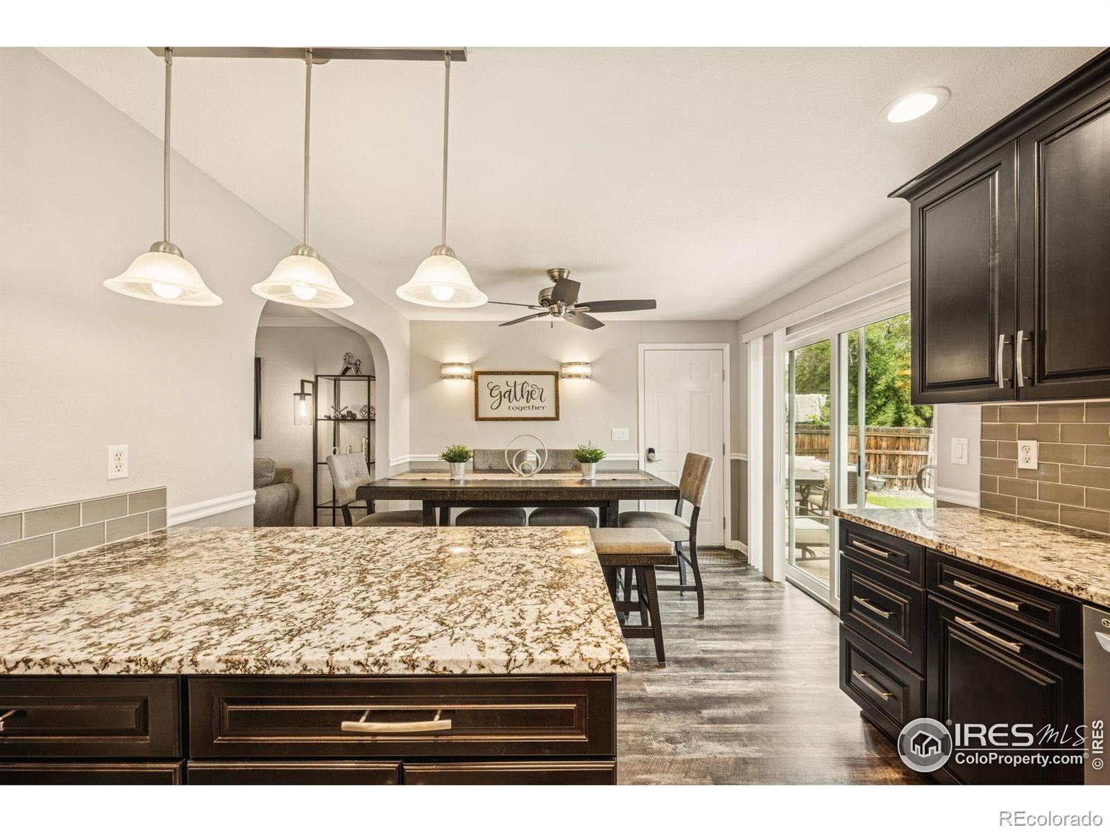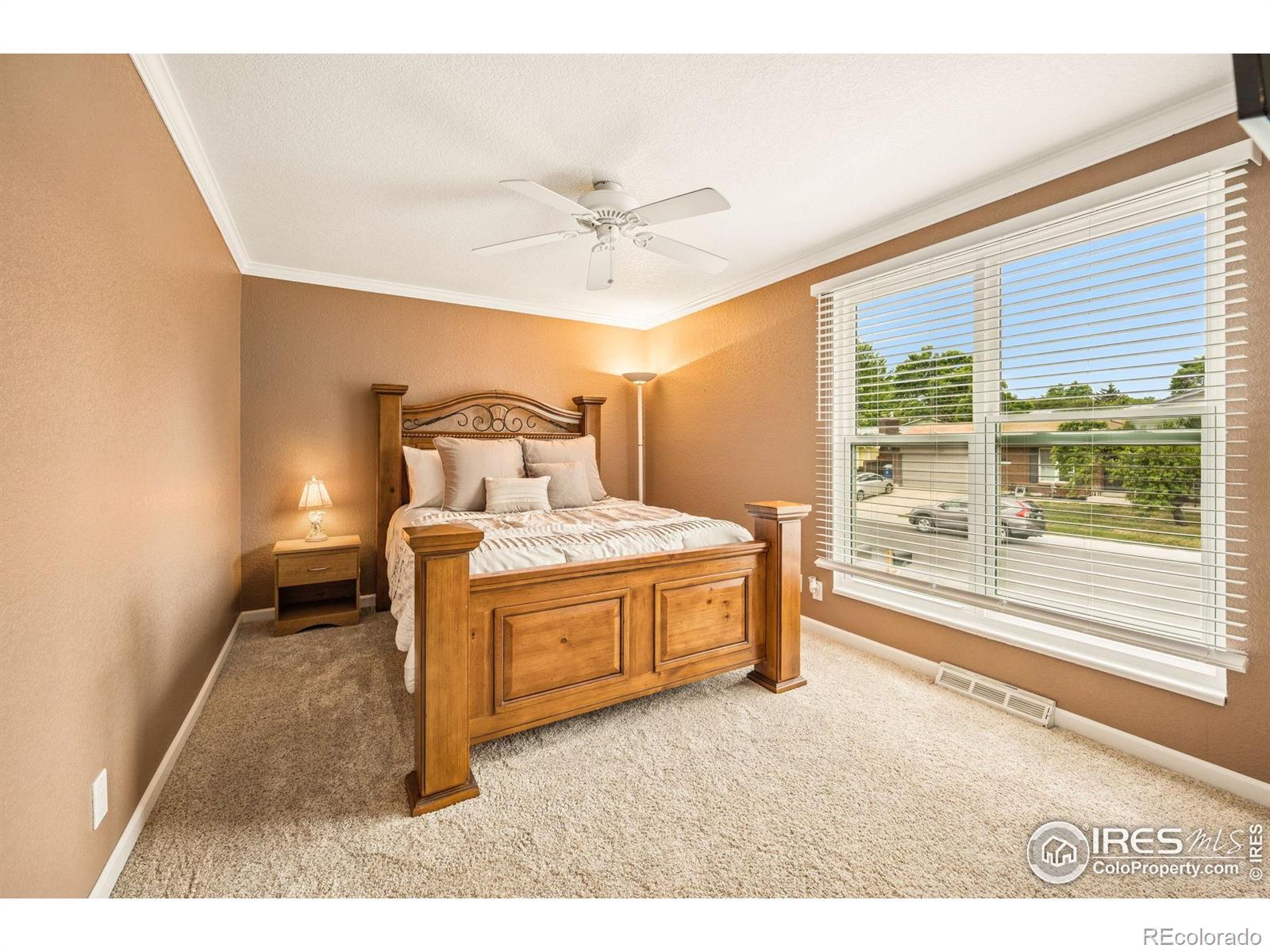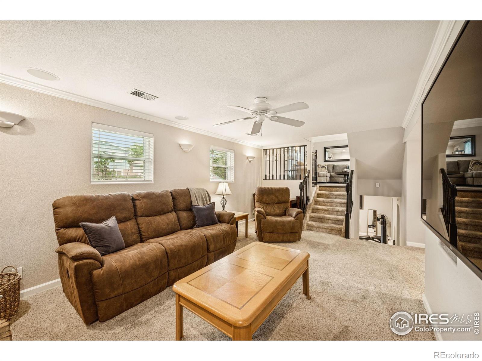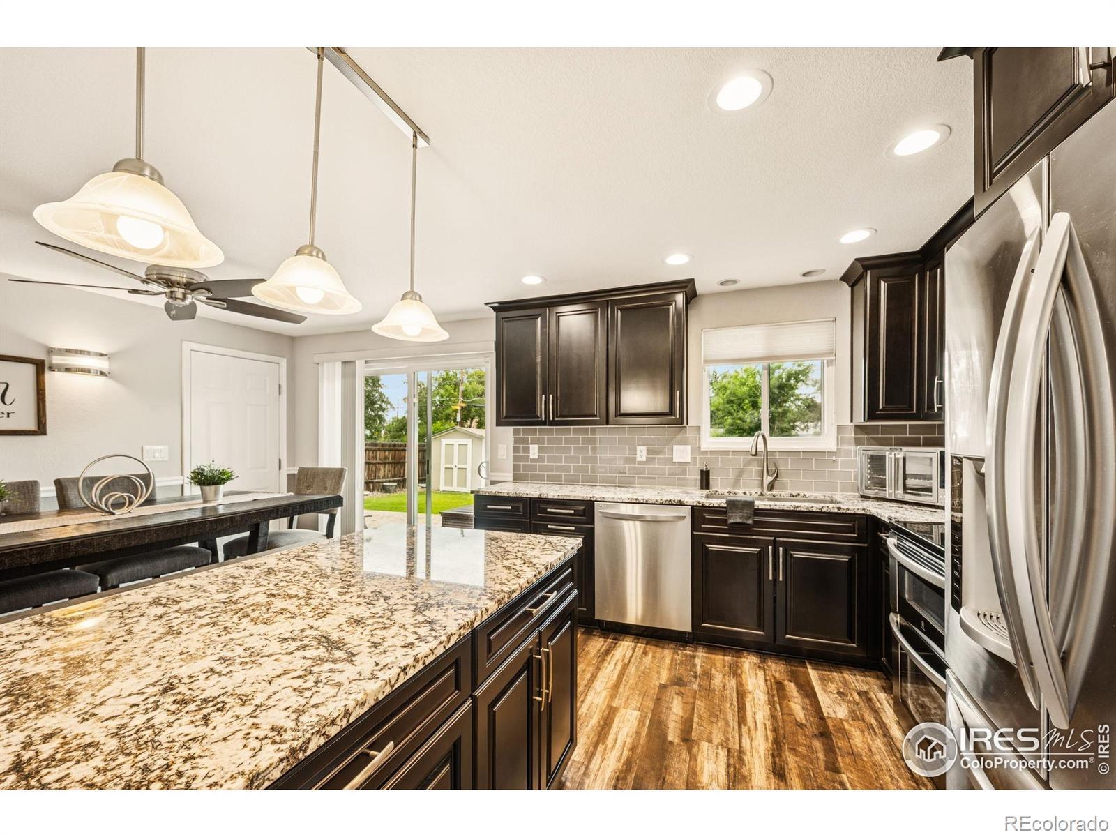 Welcome to this beautiful home in the desirable Lakeview Estates neighborhood! This gem perfectly blends modern touches with classic comfort. Step into the inviting living room that flows effortlessly into the dining room. The dining room connects to the kitchen, making this space the true heart of the home. The open kitchen features beautiful granite countertops, stylish cabinetry, all stainless-steel appliances, and abundant natural light from the glass door leading to the backyard. Upstairs, you'll find a bright and spacious primary bedroom designed to be a true retreat. This relaxing space offers plenty of natural light, ample room to fit your needs, and convenient access to a beautifully designed full bath. The primary bathroom features dual vanities, generous cabinet space for organization, and a clean, modern design that makes getting ready each day a pleasure. A spacious secondary bedroom completes the upper level. The lower level boasts a cozy family room with a fireplace as its centerpiece. A third bedroom has convenient access to a 3/4 bathroom, providing flexibility for everyday living or visiting guests. The finished basement adds even more functional space, including a versatile recreation room with recessed lighting, a utility/laundry room, and a fourth non-conforming bedroom-perfect for a private home office, gym, or hobby space. Step outside to the expansive backyard, where you'll find endless possibilities for outdoor enjoyment. This large, open space features a designated fire pit area, garden space, and a convenient shed for additional storage. Relax on the patio and enjoy the Colorado sunsets-perfect for outdoor dining or entertaining. Don't miss this move-in-ready home that truly has it all-comfort, style, and space inside and out!