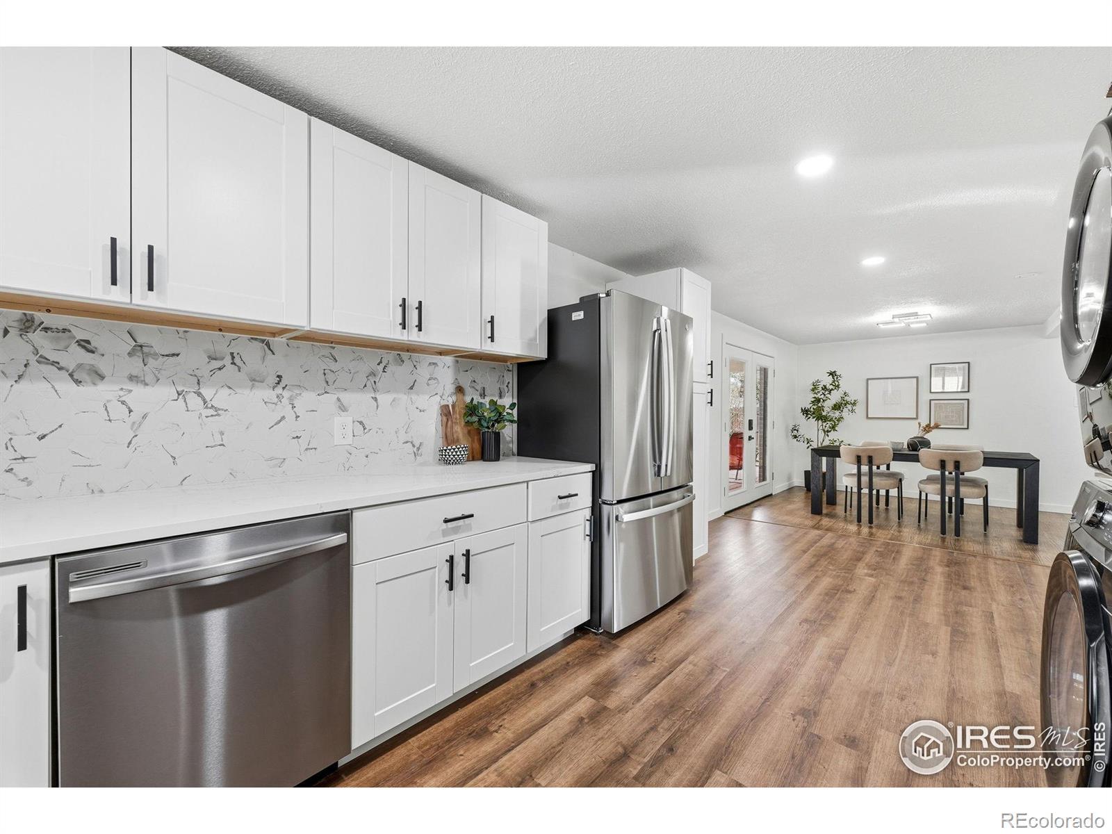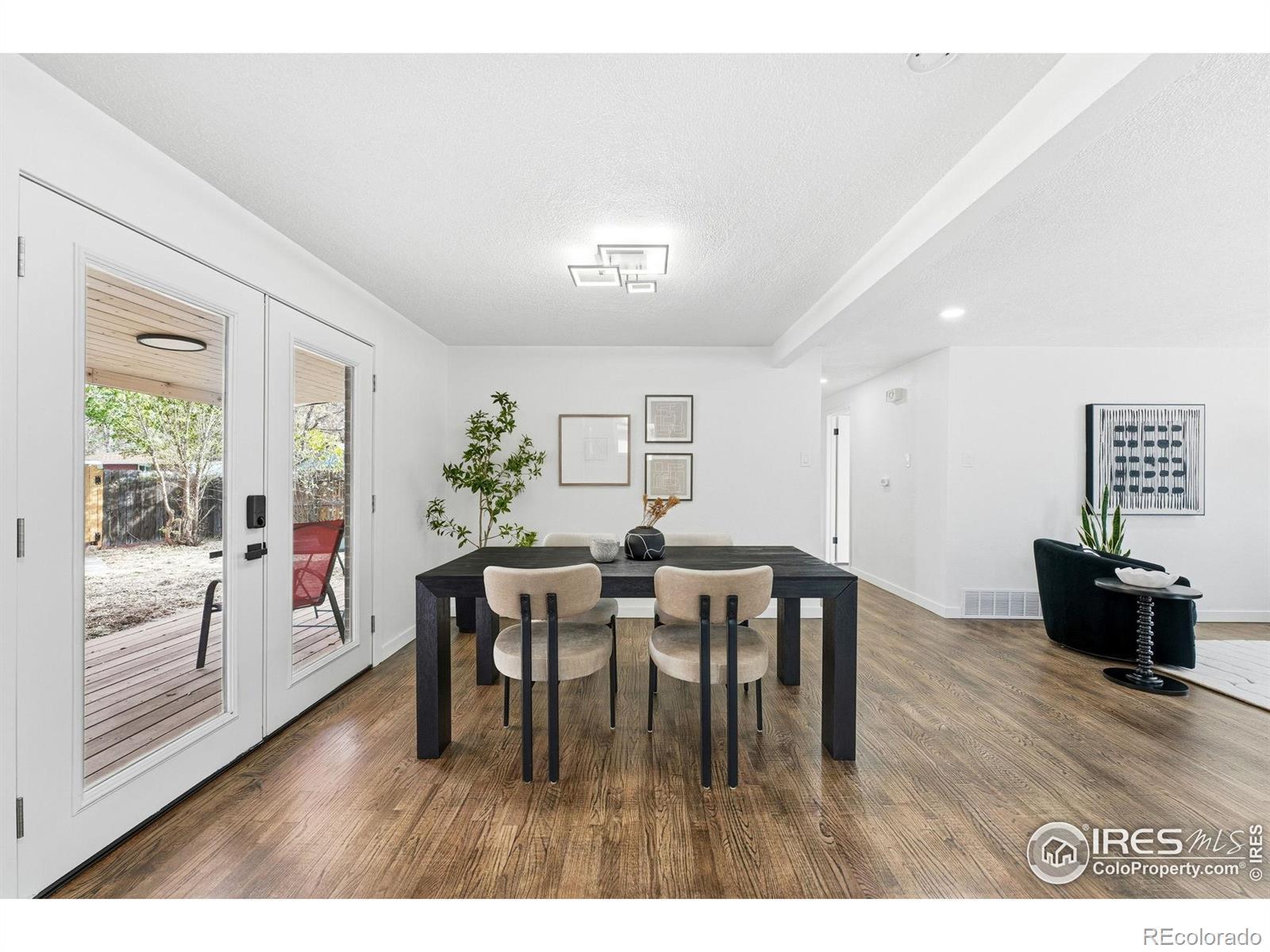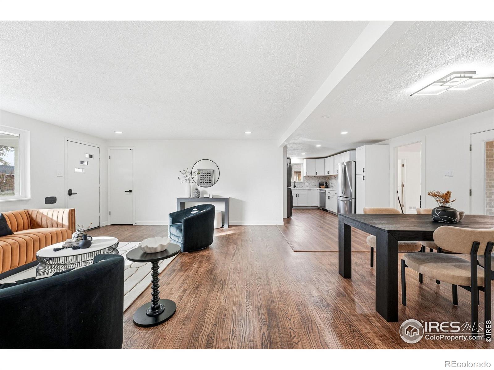 Beautifully remodeled single-family home in north-central Longmont! This move-in ready 4-bedroom, 2-bath property is filled with natural light and features a spacious open floor plan. The modern kitchen includes brand-new cabinets, stainless steel appliances, and quartz countertops. The entire home features all-new lighting fixtures, adding brightness and style throughout. The spacious primary bedroom offers comfort and privacy with soft carpet and overlooks the private backyard. Both bathrooms are gorgeous and blend modern design with quality finishes. Most of the home showcases hardwood floors, adding warmth and charm. Step outside to a private fenced backyard with a brand-new covered deck, two sheds offering plenty of extra storage, and room for an RV. Located in a quiet neighborhood, just minutes from great schools, restaurants, shopping, and the vibrant downtown Longmont. Loomiller Park is only 1 block away and has gorgeous views of the Front Range, a nice pond, a playground, and a Disc Golf course! All appliances included, brand new roof and windows, and no HOA. Call today for a private showing!