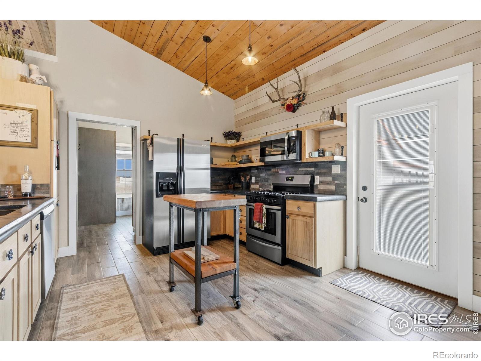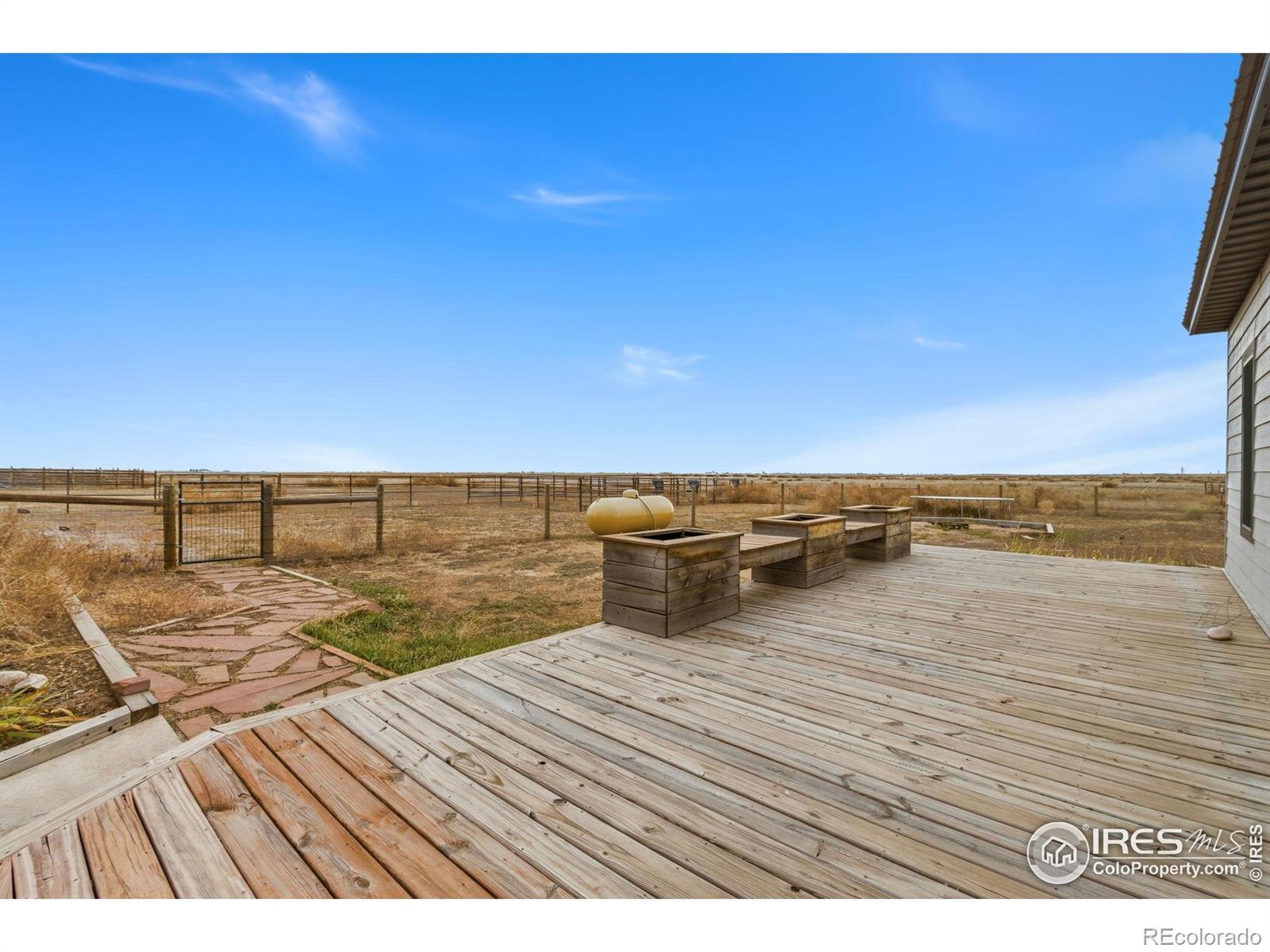 Price Reduced!! If you are looking for country living, look no farther! This stunning 44-acre property is designed for the refined horse lover! Equipeted with a 95x40 center aisle horse barn with 12 horse stalls and a tack/feed room. Large hay door, horse runs, and large round pen. The stunning ranch style home offers an open concept style with 3 bedrooms and 2 bathrooms and over the top finishes! Beautiful tile floor with radiant in floor heating throughout the home. The Kitchen includes costume cabinets, concrete poured counter tops, and stainless-steel appliances including a gas range stove top. The primary bedroom has a large walk-in closet and plenty of space. The primary bathroom includes a clawfoot bathtub and a walk-in shower. The home is equipped with Fiber Optic internet, so no need to worry about missing any zoom calls! Step out onto the deck to watch many sunsets. Don't forget to bring your ATV's and dirt bikes! There is plenty of room to cruise around on! 600 ft deep well and Poudre Valley RE power. **1 YEAR HOME WARRANTY INCLUDED!!!!**