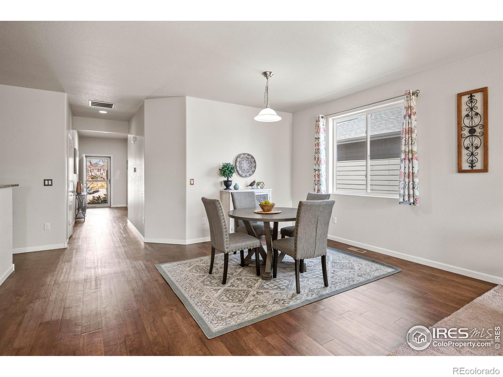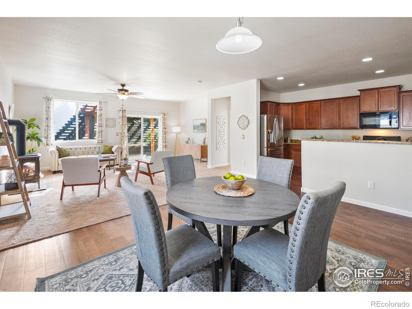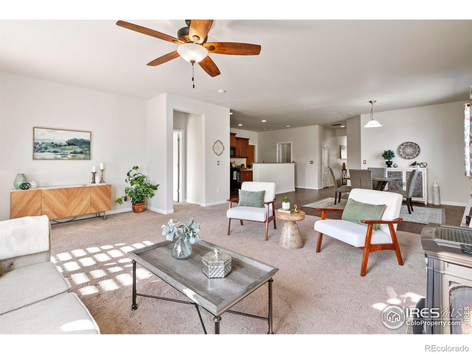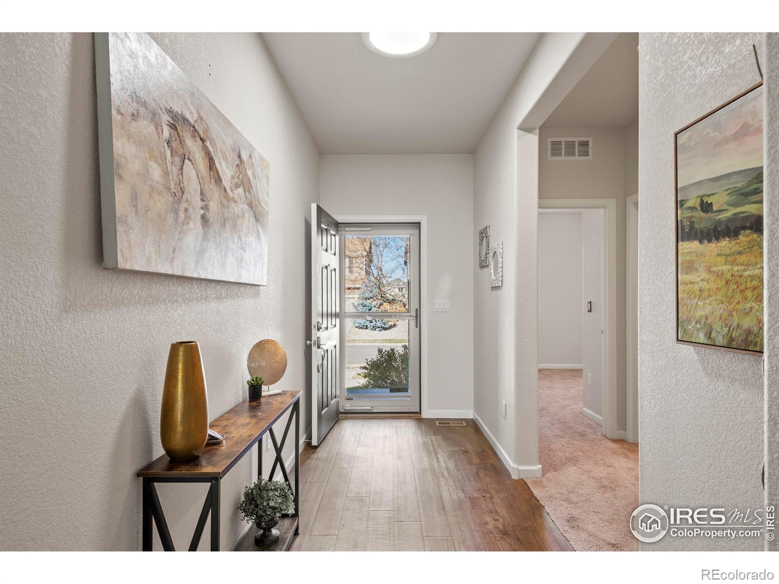 Ranch home in quiet desirable neighborhood that has been meticulously maintained. Property backs to open space, sports fields, walking trails. No Metro District. Light and bright floorplan that offers an open and welcoming layout. The living room features a gas fireplace, that flows to the dining area and kitchen for easy entertaining and time well spent with family and friends. Kitchen showcases granite countertops, warm maple cabinets, gas range, 2025 refrigerator, walk in pantry and ample storage. Separate laundry room adjacent to kitchen. Spacious primary bedroom in back of home with luxury primary bath and walk-in closet. The properties two other bedrooms are at front of house served by a full bath. Backyard has low maintenance sod, well placed landscaping for privacy and a pergola. 1 block away is another neighborhood park with basketball court, playground and area for sitting and relaxing. Property is conveniently located close to King Soopers, Whole Foods, Golds Gym, Yoga studio, restaurants, shopping and Longmont's movie theater. All appliances and clothes washer and dryer are offered to the new homeowner.