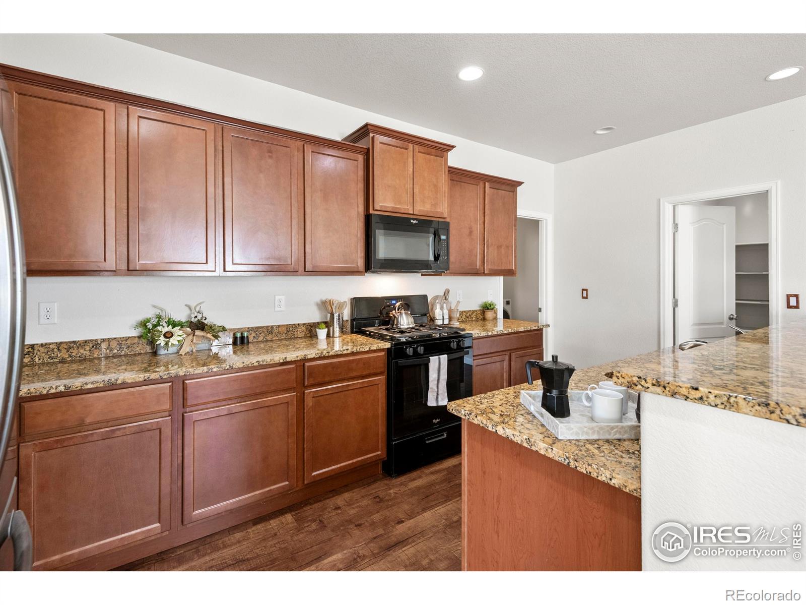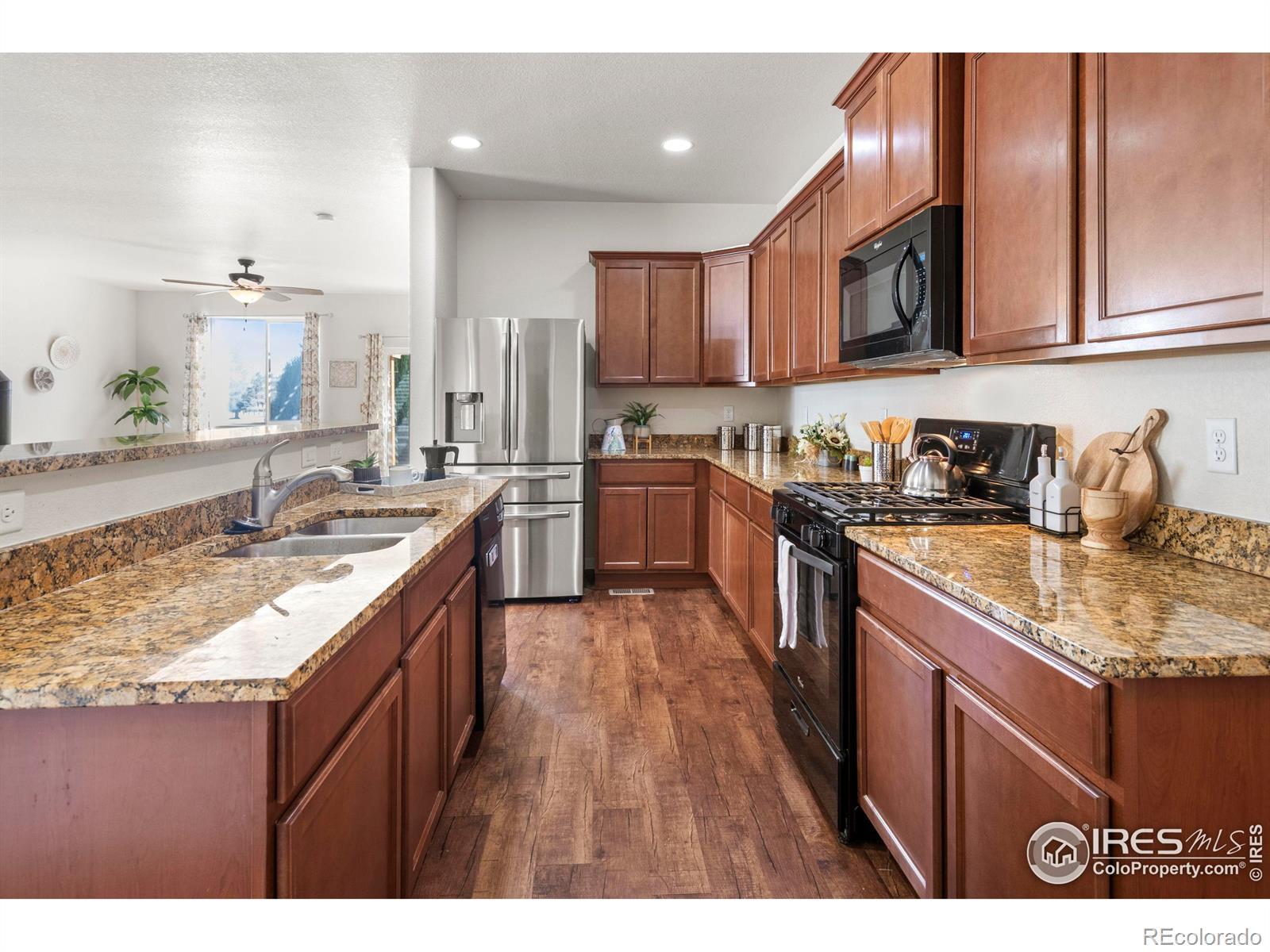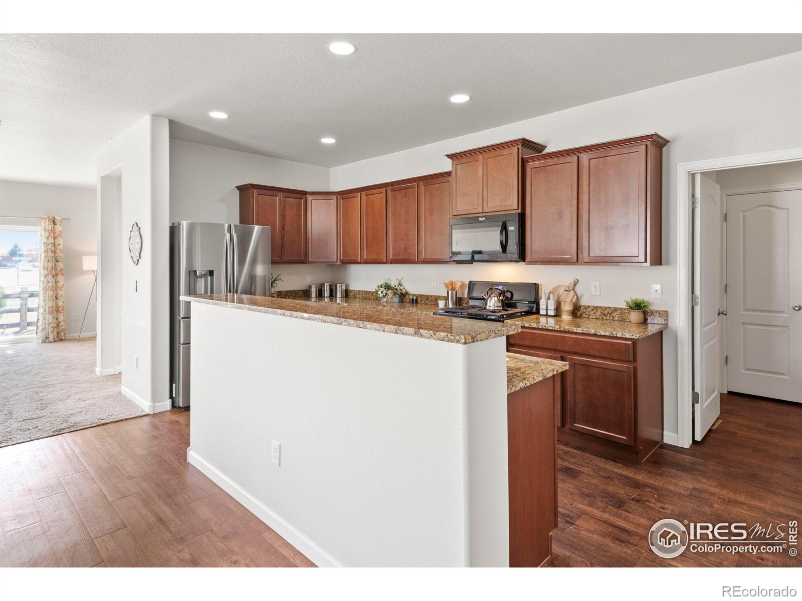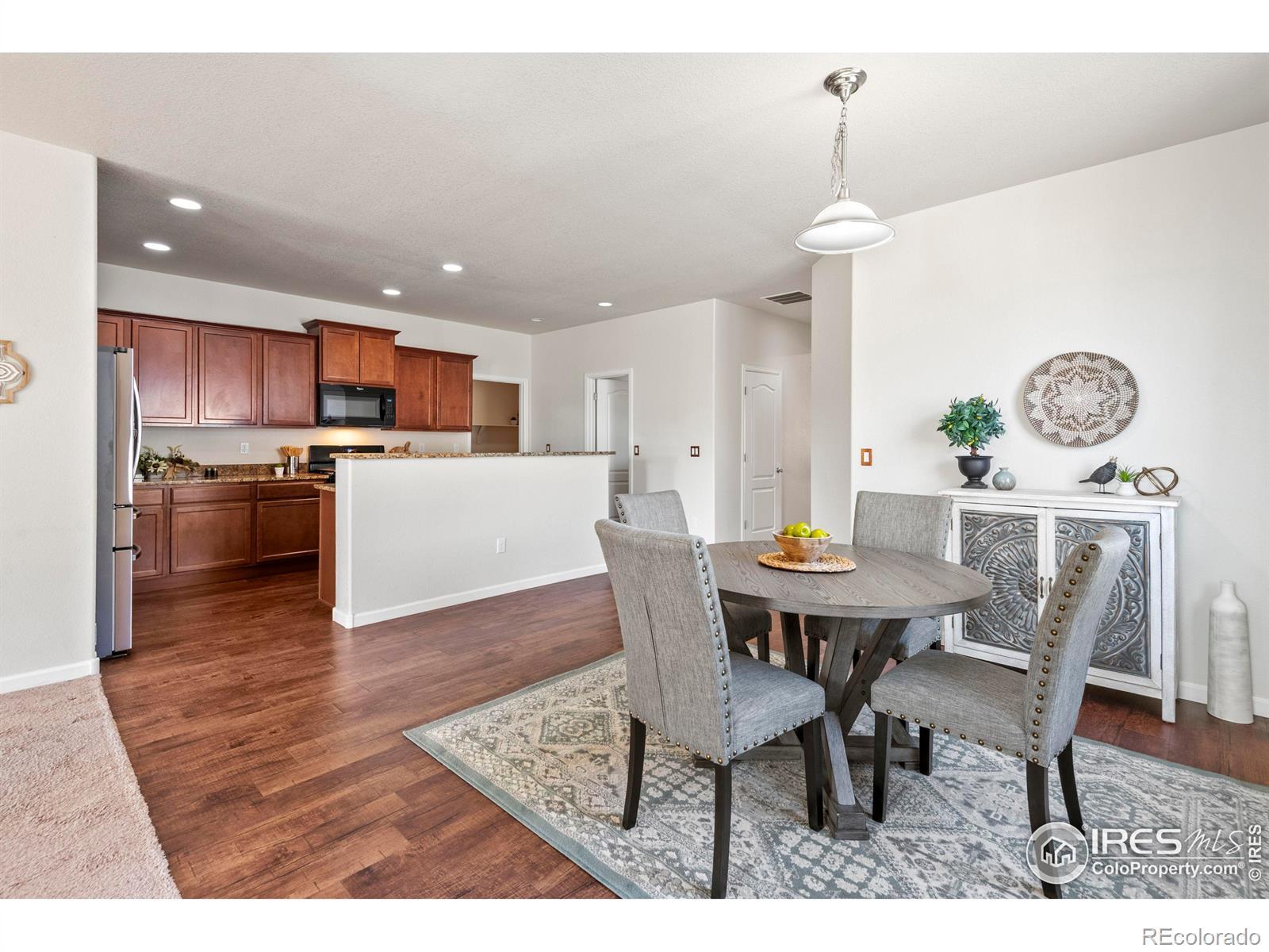 Ranch home in quiet desirable neighborhood that has been meticulously maintained. Property backs to open space, sports fields, walking trails. No Metro District. Light and bright floorplan that offers an open and welcoming layout. The living room features a gas fireplace, that flows to the dining area and kitchen for easy entertaining and time well spent with family and friends. Kitchen showcases granite countertops, warm maple cabinets, gas range, 2025 refrigerator, walk in pantry and ample storage. Separate laundry room adjacent to kitchen. Spacious primary bedroom in back of home with luxury primary bath and walk-in closet. The properties two other bedrooms are at front of house served by a full bath. Backyard has low maintenance sod, well placed landscaping for privacy and a pergola. 1 block away is another neighborhood park with basketball court, playground and area for sitting and relaxing. Property is conveniently located close to King Soopers, Whole Foods, Golds Gym, Yoga studio, restaurants, shopping and Longmont's movie theater. All appliances and clothes washer and dryer are offered to the new homeowner.