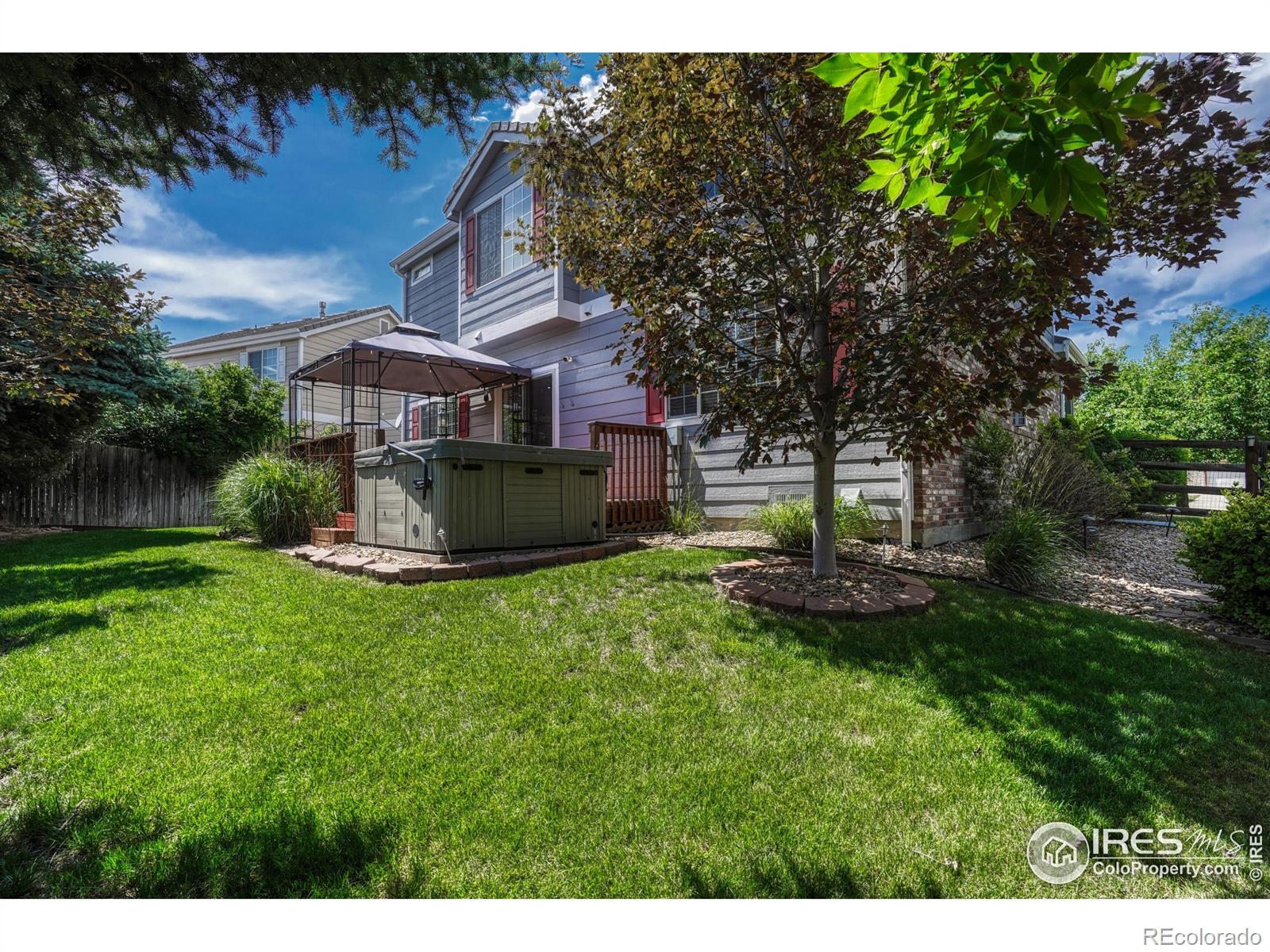 This move-in ready gem, built in 2002, boasts a spacious layout on a large corner lot. Enjoy an open floorplan with a double-sided fireplace that elegantly connects the family room and living room.The kitchen features stunning granite countertops, a stylish backsplash, and newer stainless steel appliances, complete with a generous walk-in pantry. The large primary bedroom ensuite offers a luxurious updated bathroom with a large upgraded shower, double sinks, and modern flooring. Two additional well-sized bedrooms share a beautifully updated full bathroom. Upstairs, a versatile loft offers the perfect space for a home office or game room. Outside, a 20 x 11 covered deck and open hot tub area provide an ideal setting for relaxation or entertaining. Located just a short stroll from a park and with easy access to E-470 and Buckley Air Force Base, this home offers a convenient commute to the airport.