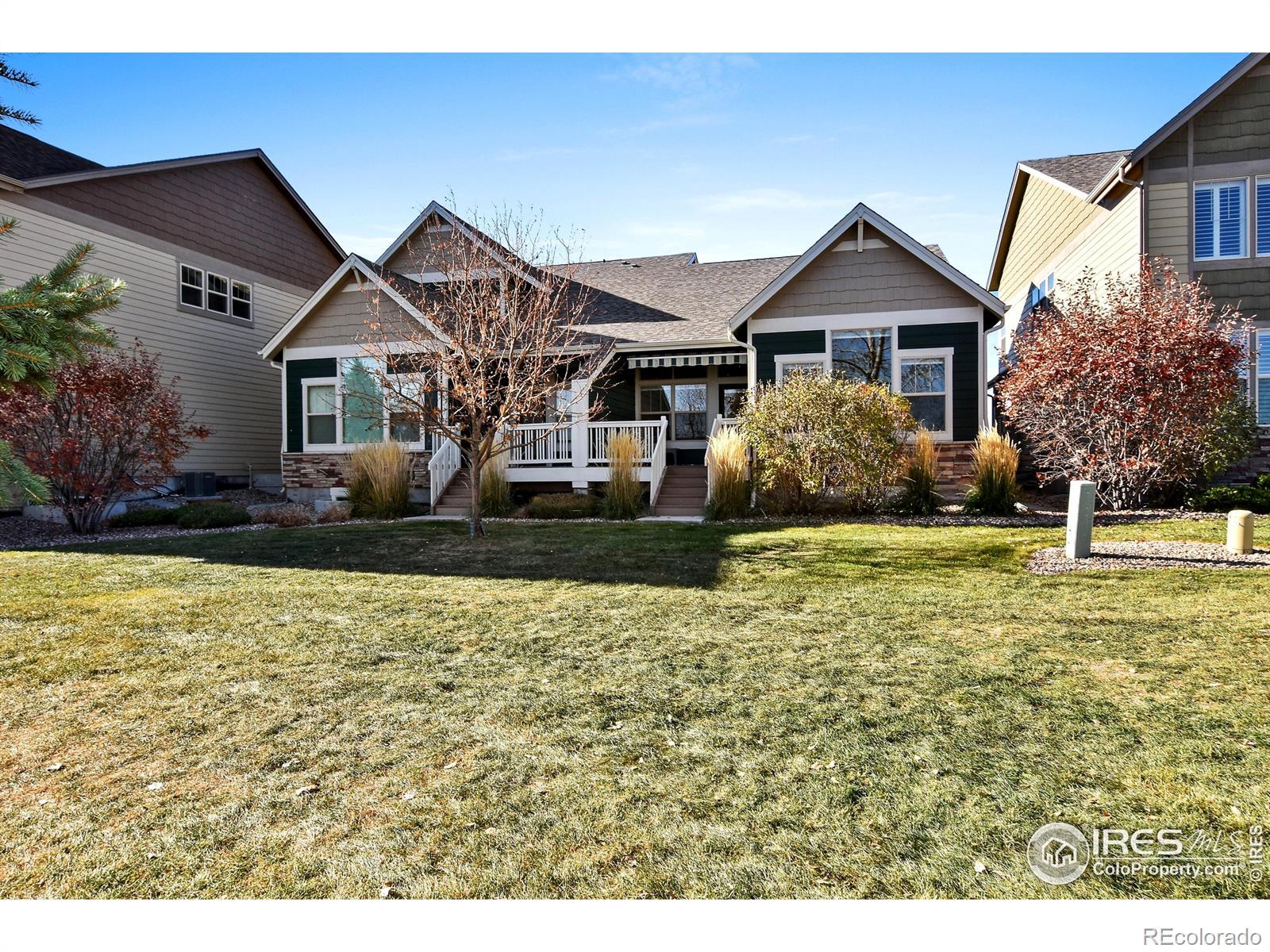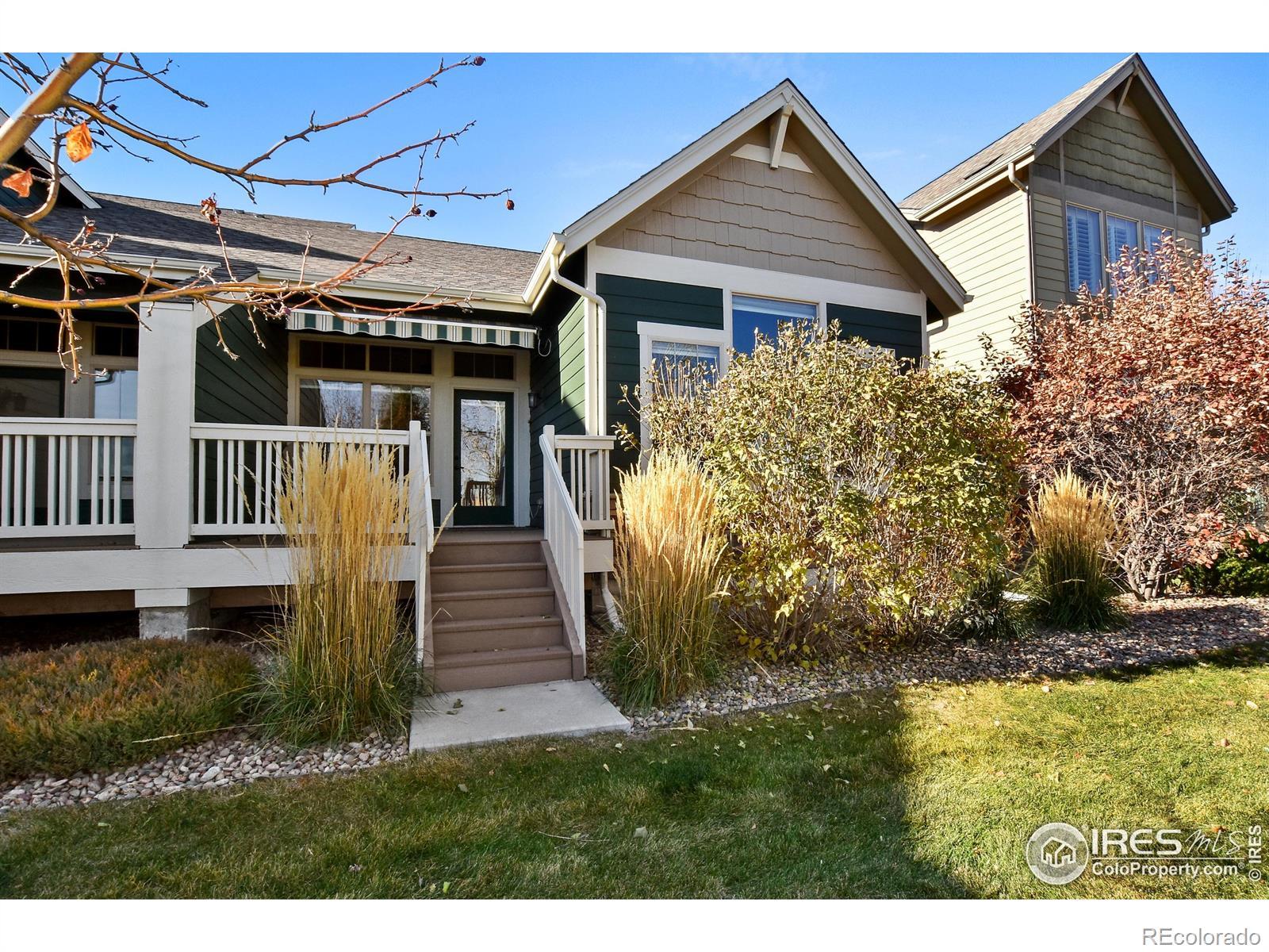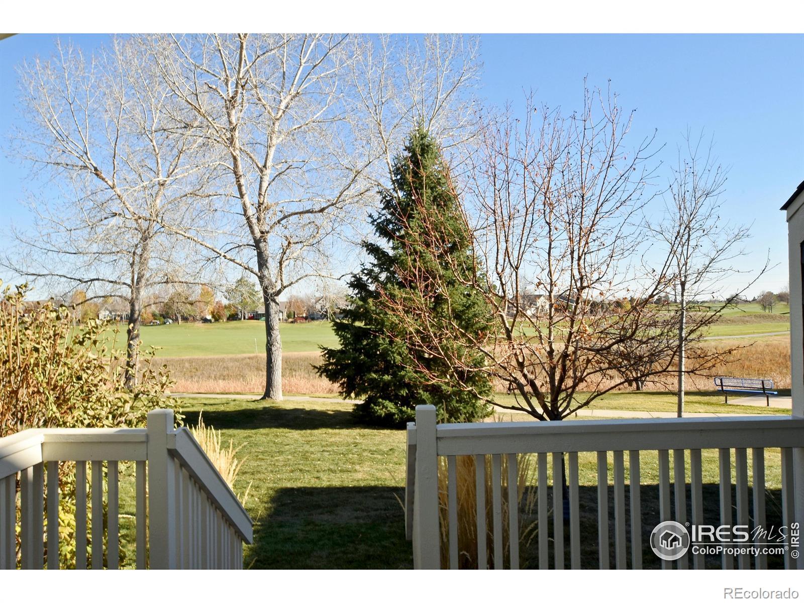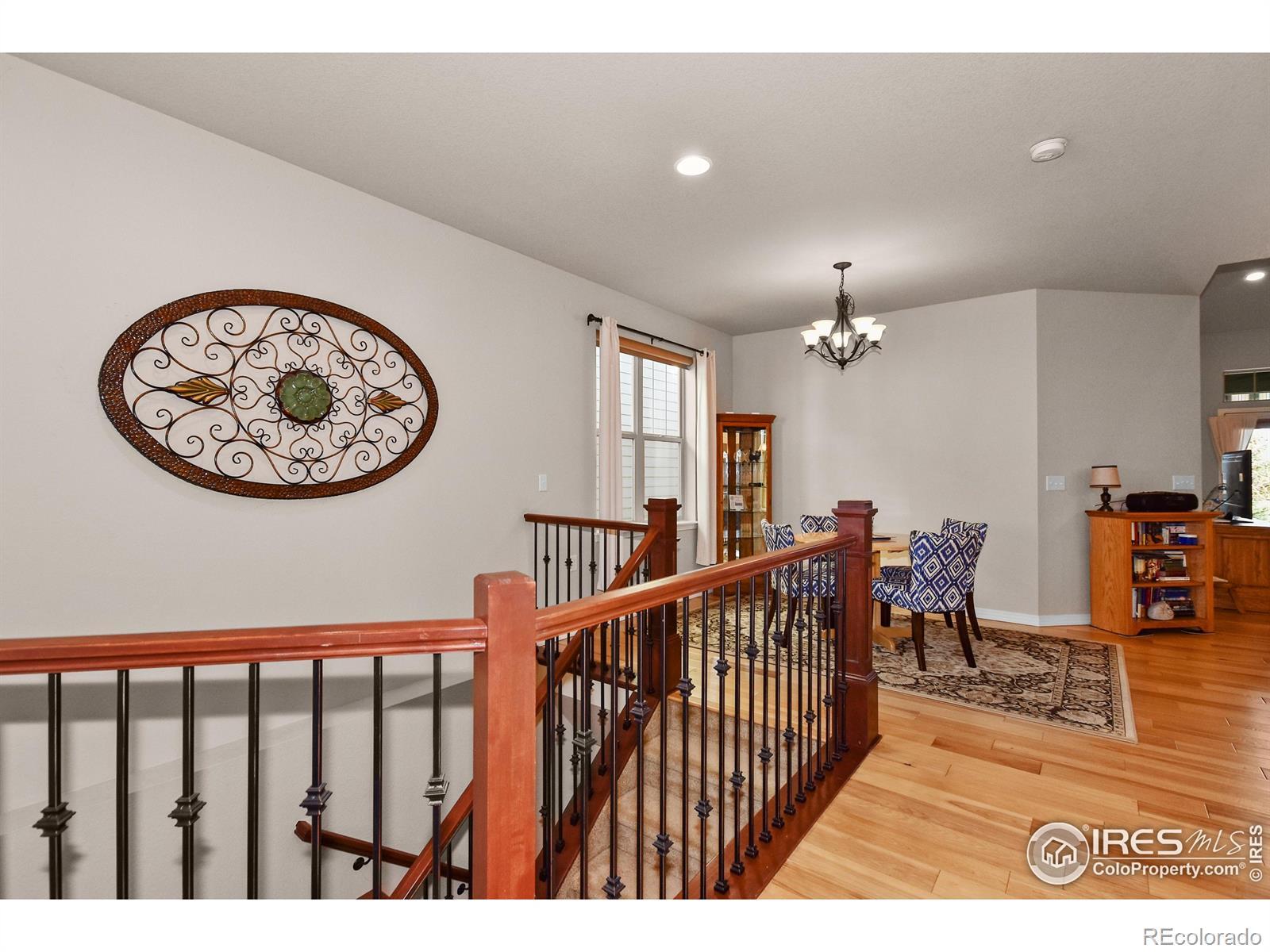 This stunning, impeccably maintained home backing to Ute Creek Golf Course is sure to impress! From the moment you step onto the inviting front covered patio & through the grand eight-foot entry door, you'll be captivated by the quality and thoughtful upgrades throughout. Beautiful hickory-engineered hardwood flooring spans much of the main level, where you'll find a striking staircase to one side and a bright home office to the other. The gourmet kitchen is a true showpiece, featuring granite countertops, a spacious center island, and premium Gold Series stainless steel appliances. Additional highlights include under-cabinet lighting, abundant cabinetry w/soft-close drawers, & generous double-door pantry. The open-concept layout seamlessly connects the kitchen to the living room, making it easy to cook and entertain at the same time. The living area features vaulted ceilings, large east-facing windows, ceiling fan, and pre-wiring for surround sound - perfect for relaxing or hosting guests. You'll appreciate thoughtful details: Hunter Douglas blinds, tiled flooring in all baths & laundry, brushed bronze fixtures and hardware. The primary suite is equally impressive, with vaulted ceilings, large windows, a ceiling fan, and a luxurious en suite bath complete with a granite dual-sink vanity, tile-surround shower with bench, and a spacious walk-in closet. A stylish half bath with granite vanity and the main-level laundry add convenience. Downstairs, the expansive lower level offers a large family room with recessed lighting, surround sound speakers, and concrete egress window wells. You'll also find a comfortable second bedroom, a beautifully finished three-quarter bath with tile surround, and a flexible storage or hobby space.