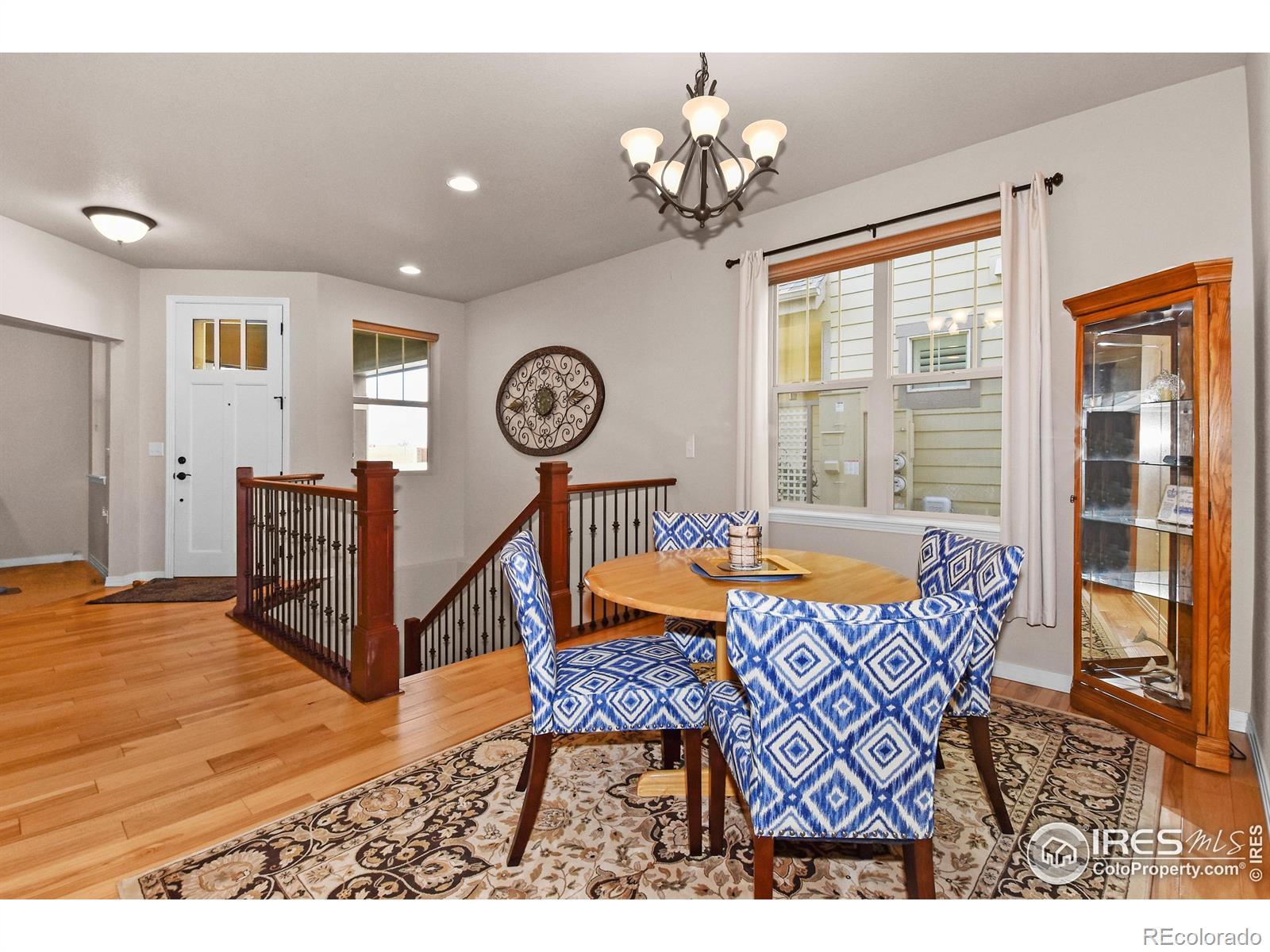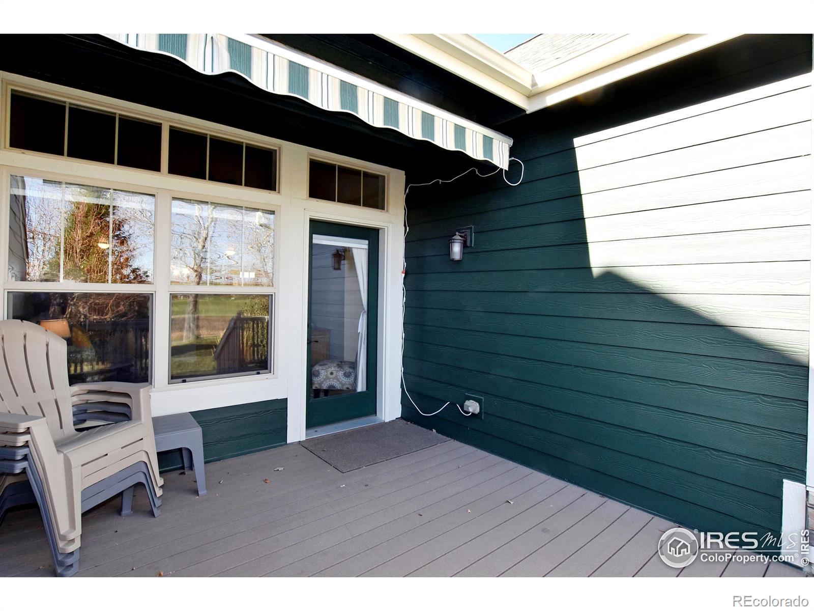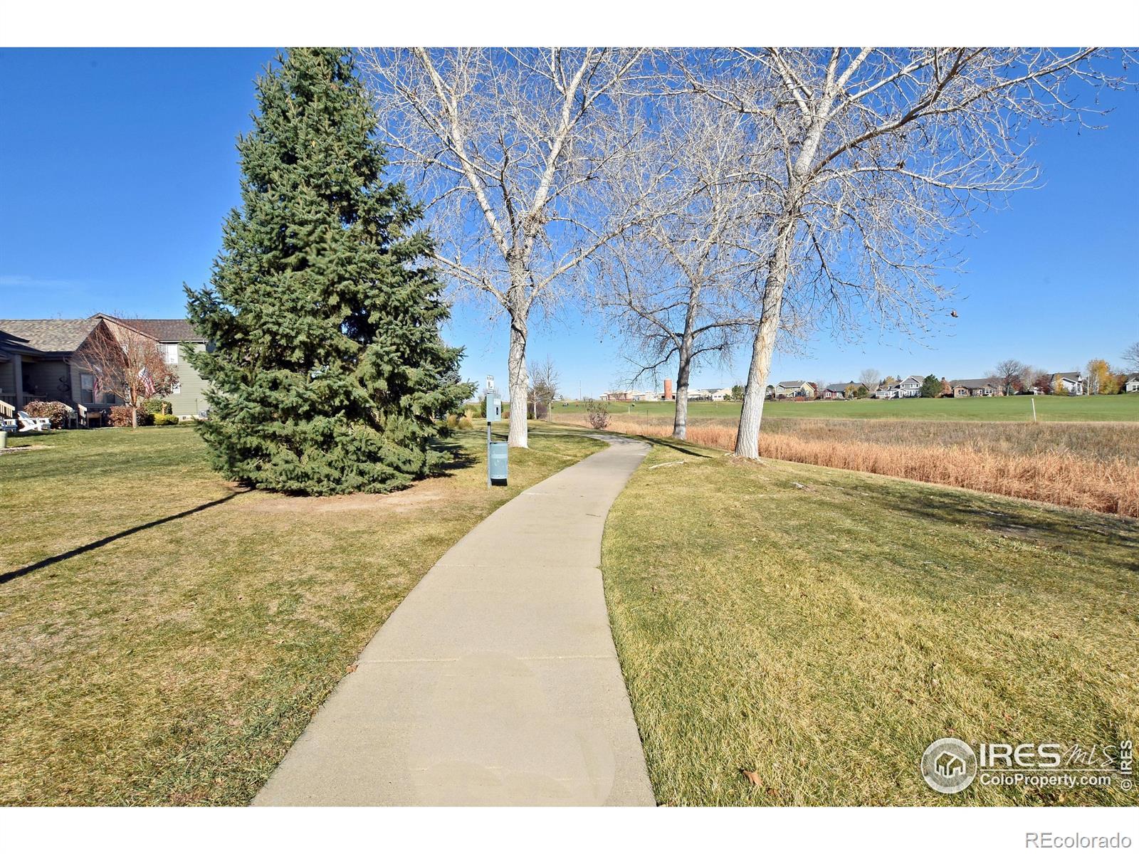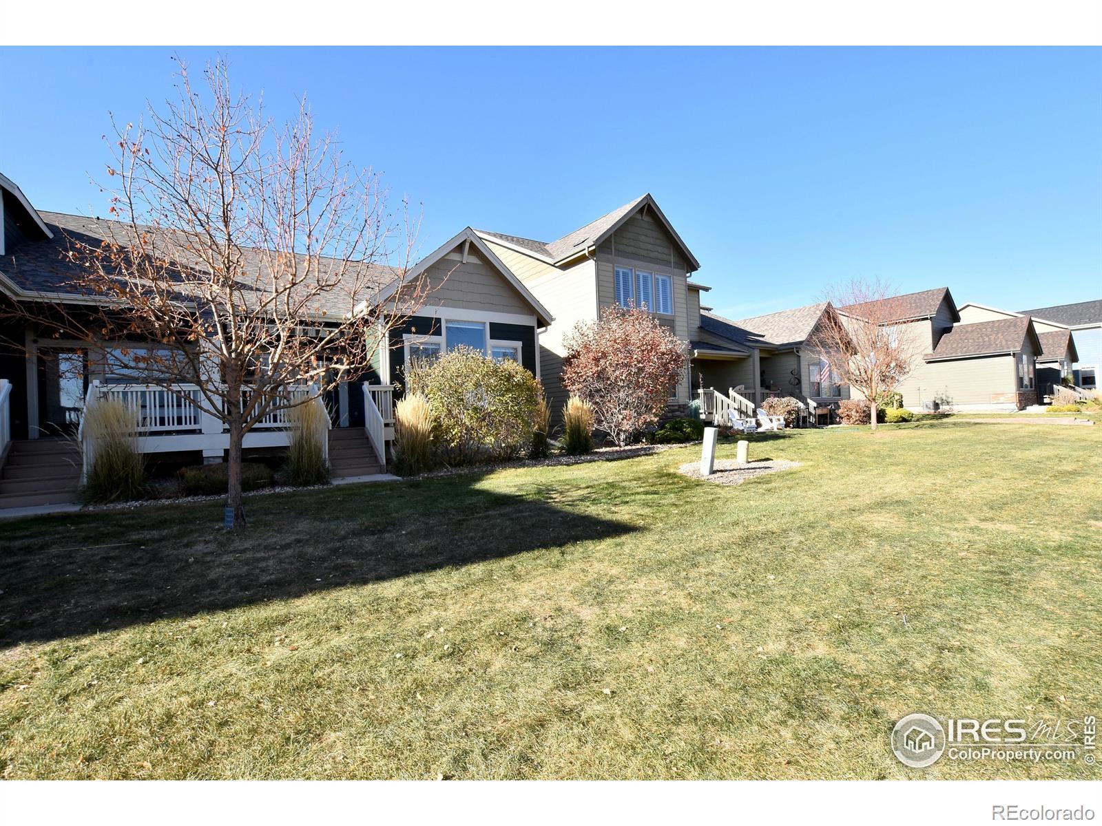 This stunning, impeccably maintained home backing to Ute Creek Golf Course is sure to impress! From the moment you step onto the inviting front covered patio & through the grand eight-foot entry door, you'll be captivated by the quality and thoughtful upgrades throughout. Beautiful hickory-engineered hardwood flooring spans much of the main level, where you'll find a striking staircase to one side and a bright home office to the other. The gourmet kitchen is a true showpiece, featuring granite countertops, a spacious center island, and premium Gold Series stainless steel appliances. Additional highlights include under-cabinet lighting, abundant cabinetry w/soft-close drawers, & generous double-door pantry. The open-concept layout seamlessly connects the kitchen to the living room, making it easy to cook and entertain at the same time. The living area features vaulted ceilings, large east-facing windows, ceiling fan, and pre-wiring for surround sound - perfect for relaxing or hosting guests. You'll appreciate thoughtful details: Hunter Douglas blinds, tiled flooring in all baths & laundry, brushed bronze fixtures and hardware. The primary suite is equally impressive, with vaulted ceilings, large windows, a ceiling fan, and a luxurious en suite bath complete with a granite dual-sink vanity, tile-surround shower with bench, and a spacious walk-in closet. A stylish half bath with granite vanity and the main-level laundry add convenience. Downstairs, the expansive lower level offers a large family room with recessed lighting, surround sound speakers, and concrete egress window wells. You'll also find a comfortable second bedroom, a beautifully finished three-quarter bath with tile surround, and a flexible storage or hobby space.