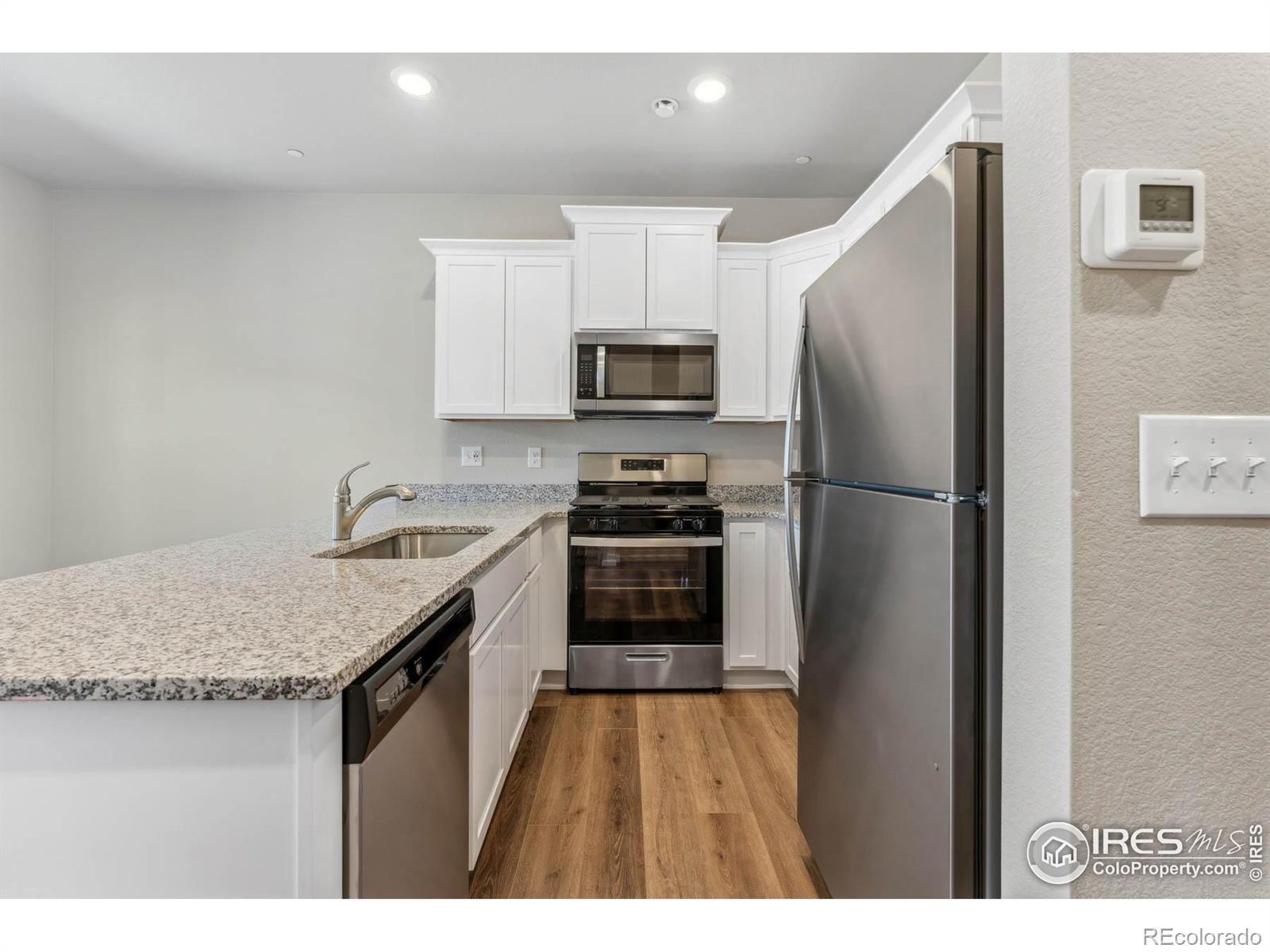 Welcome Home! Completed new construction townhomes that are move in ready. This gorgeous townhome community is conveniently located and features 3 bedrooms, 2.5 baths, and 2 car attached garage with an open floor plan. Our beautiful Loveland Model features a thoughtful layout built for easy living including a large primary bedroom with a private bath, and walk in closet, upstairs laundry room, spacious kitchen, A/C, covered porch and balcony. Discover the LGI Homes' CompleteHome package, with incredible upgrades at no additional cost including a gas range/oven, refrigerator, microwave and dishwasher, gorgeous granite countertops, designer wood cabinets, wood blinds on all windows, and a Wi-Fi-enabled garage door opener are just a few of the fabulous upgrades that make this townhouse the place you want to call home. Located just minutes from I-25 and the new Ledge Rock shopping center, this home provides easy access to a variety of shopping, dining, and entertainment options.