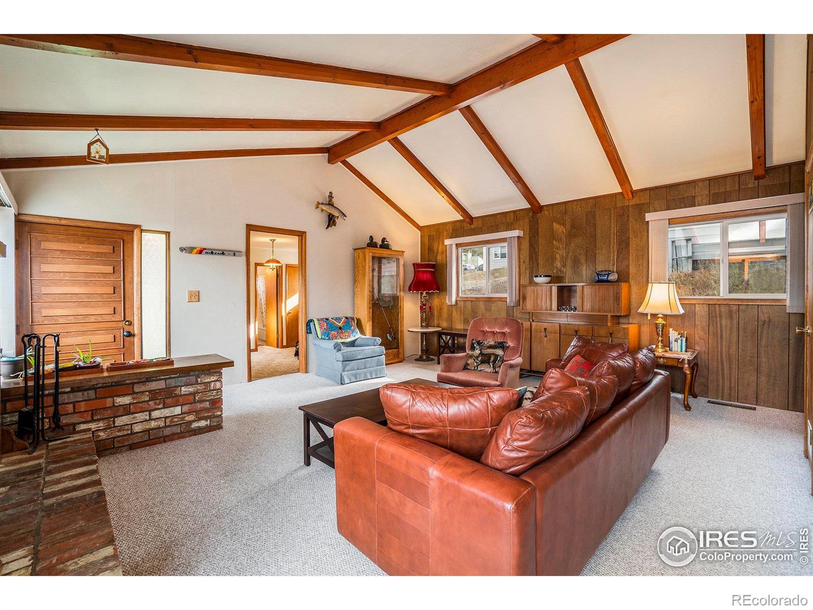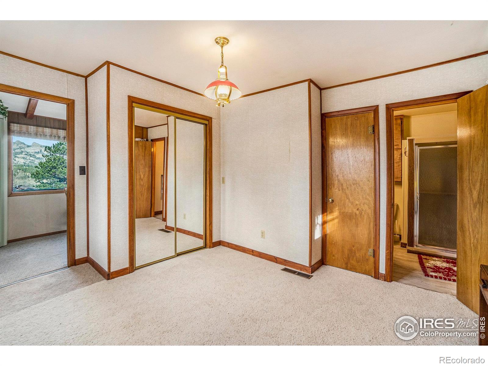 Single-level home in Country Club Manor featuring two private bedroom suites, each with its own bathroom - an excellent layout for shared living, guests, or main-level convenience. The living area offers vaulted and beamed ceilings, a wood-burning fireplace, and large windows that frame mountain views, creating a warm and comfortable gathering space. The kitchen includes a full set of appliances, with direct access to the dining and living areas for simple flow and functionality. Step outside to three outdoor spaces of a front patio, side deck, and back deck, perfect for morning sun, fresh air, or relaxation after a day in the Park. Offered as-is and priced below many view homes in Estes Park, this is an appealing affordable option for first-time homebuyers, downsizers, or anyone looking for a low-maintenance home with the ability to update over time. Forced-air heat, double-pane windows, city utilities, and off-street parking add comfort and practicality. Convenient to downtown Estes Park, Rocky Mountain National Park, schools, medical services, shopping, and dining.A solid value with two suites, views, and room to make it your own.
