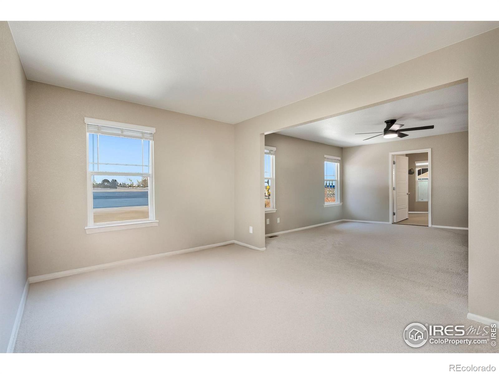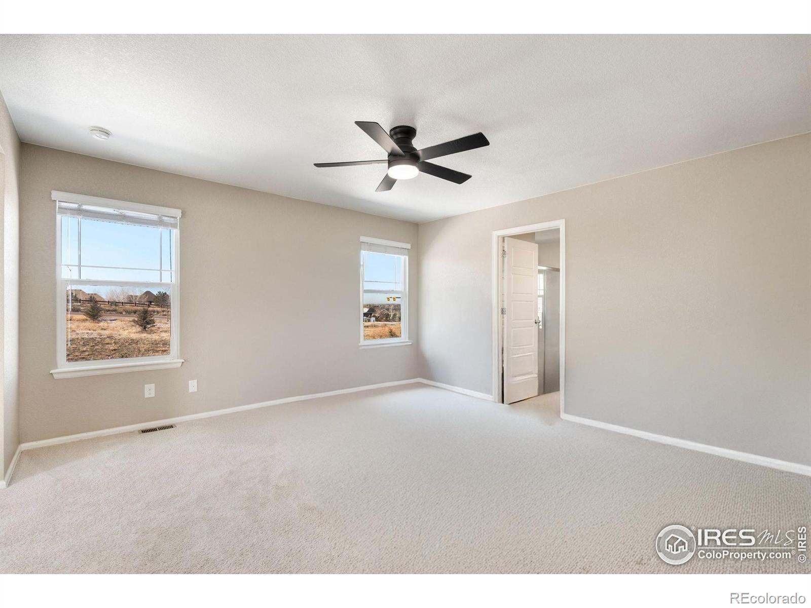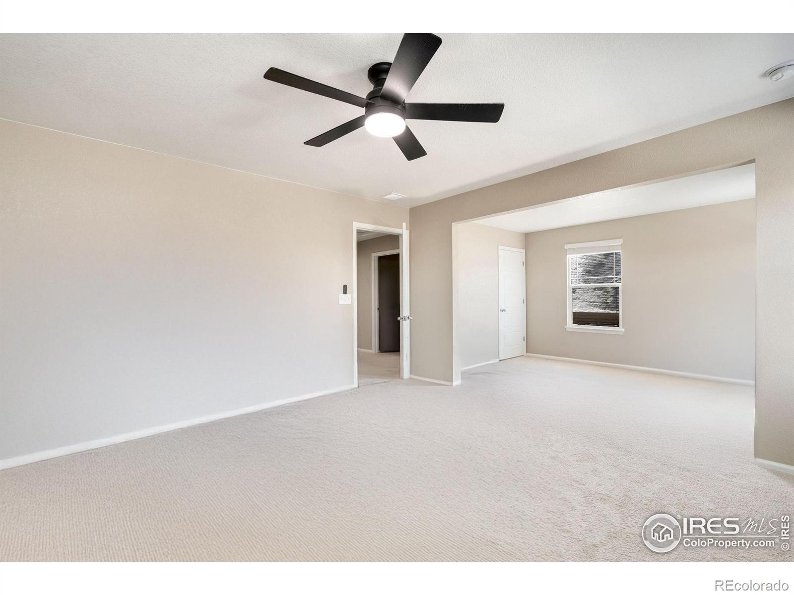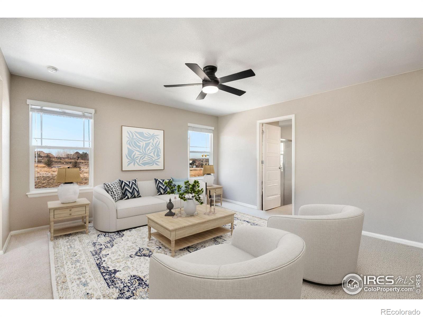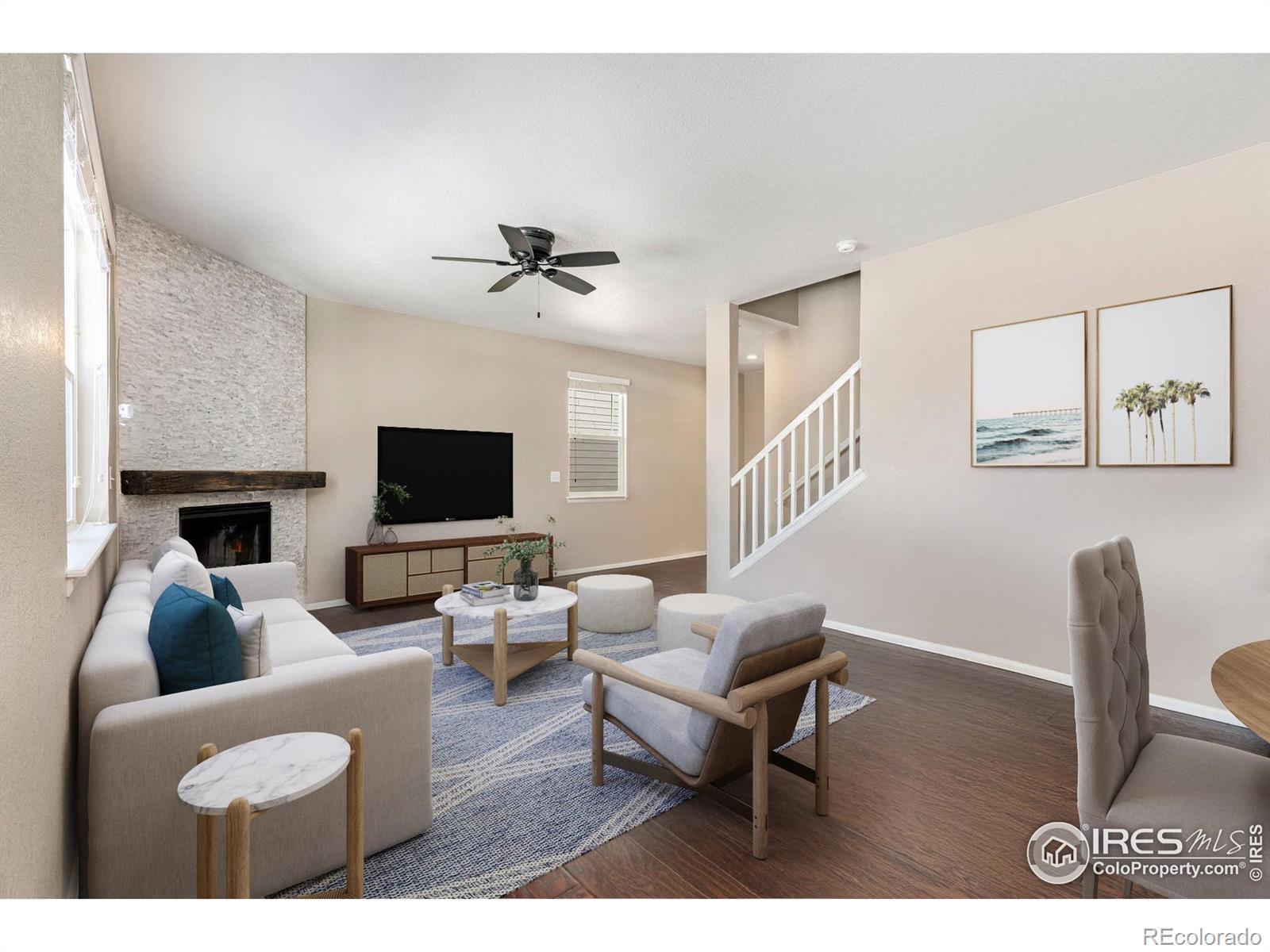 Enjoy all of the amenities that beautiful Water Valley has to offer! Walking and biking trails, and lakes and ponds make for resort style daily living. The comfortable floor plan includes a charming kitchen with granite counters and espresso cabinetry as well as a huge walk-in pantry and breakfast bar. Tasteful finishes include wood flooring throughout the main level and a cozy gas fireplace with floor to ceiling stacked stone, perfect for chilly Colorado nights. All bedrooms and laundry room are on the second level and the primary suite is an oversized sanctuary with a separate sitting room and an ensuite with walk-in closet. The basement provides additional room to expand! The back yard is privately tucked behind a grassy berm and is fully landscaped and complete with a pet-ready fence. Garage is equipped with a NEMA 1450 plug for electric vehicles and ceiling fans have been added throughout the home. Ride your golf cart to Pelican Lakes or Raindance National Golf Club, play, and dine just moments from your doorstep. Turnkey home ready for its new owner!
