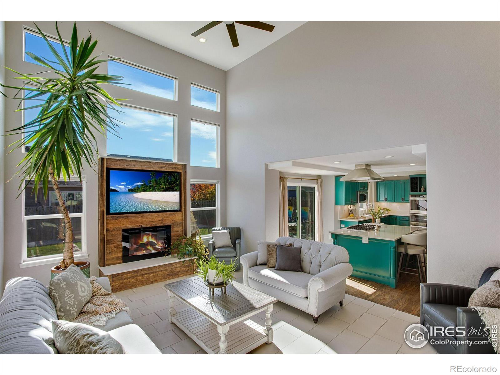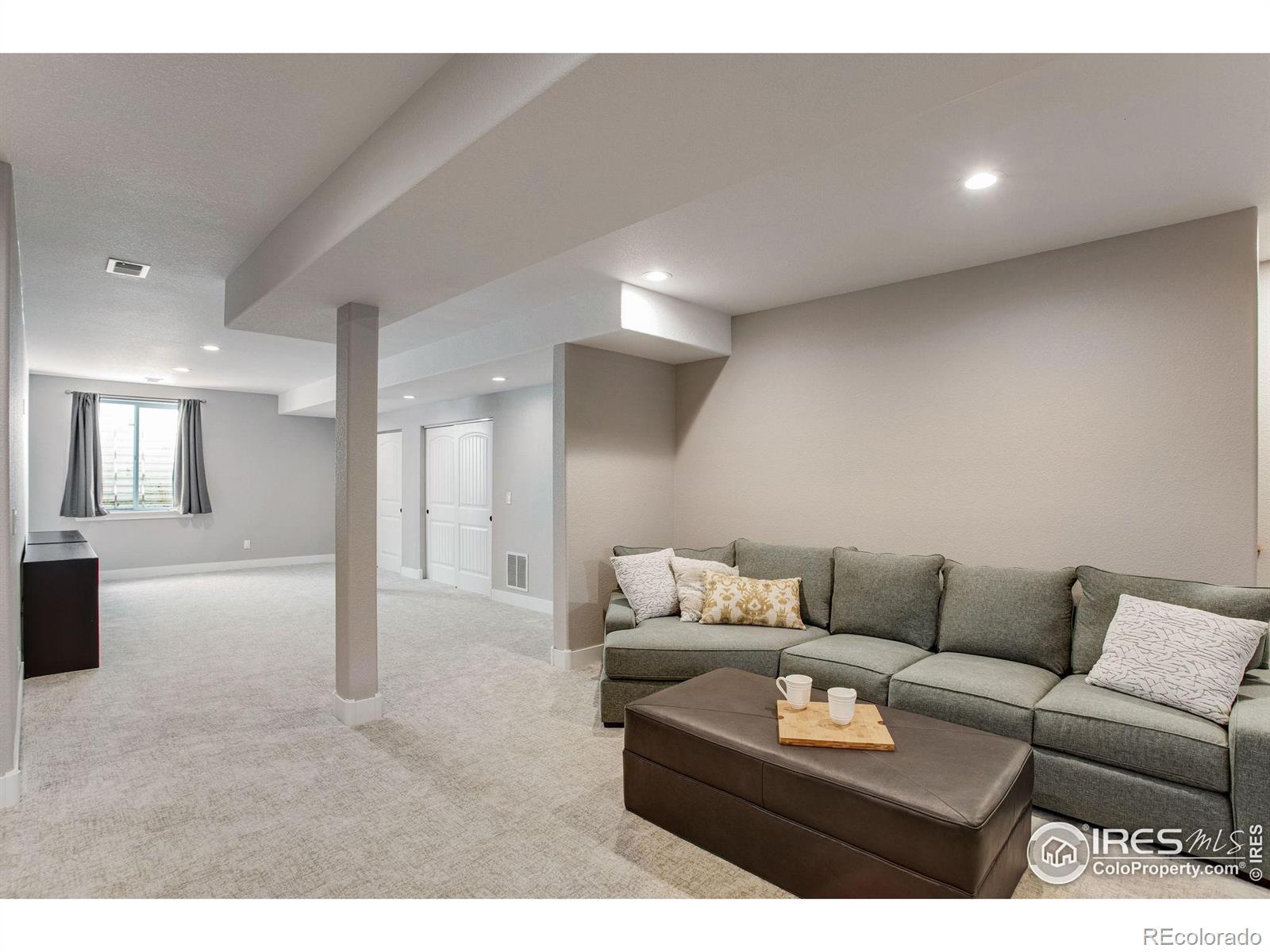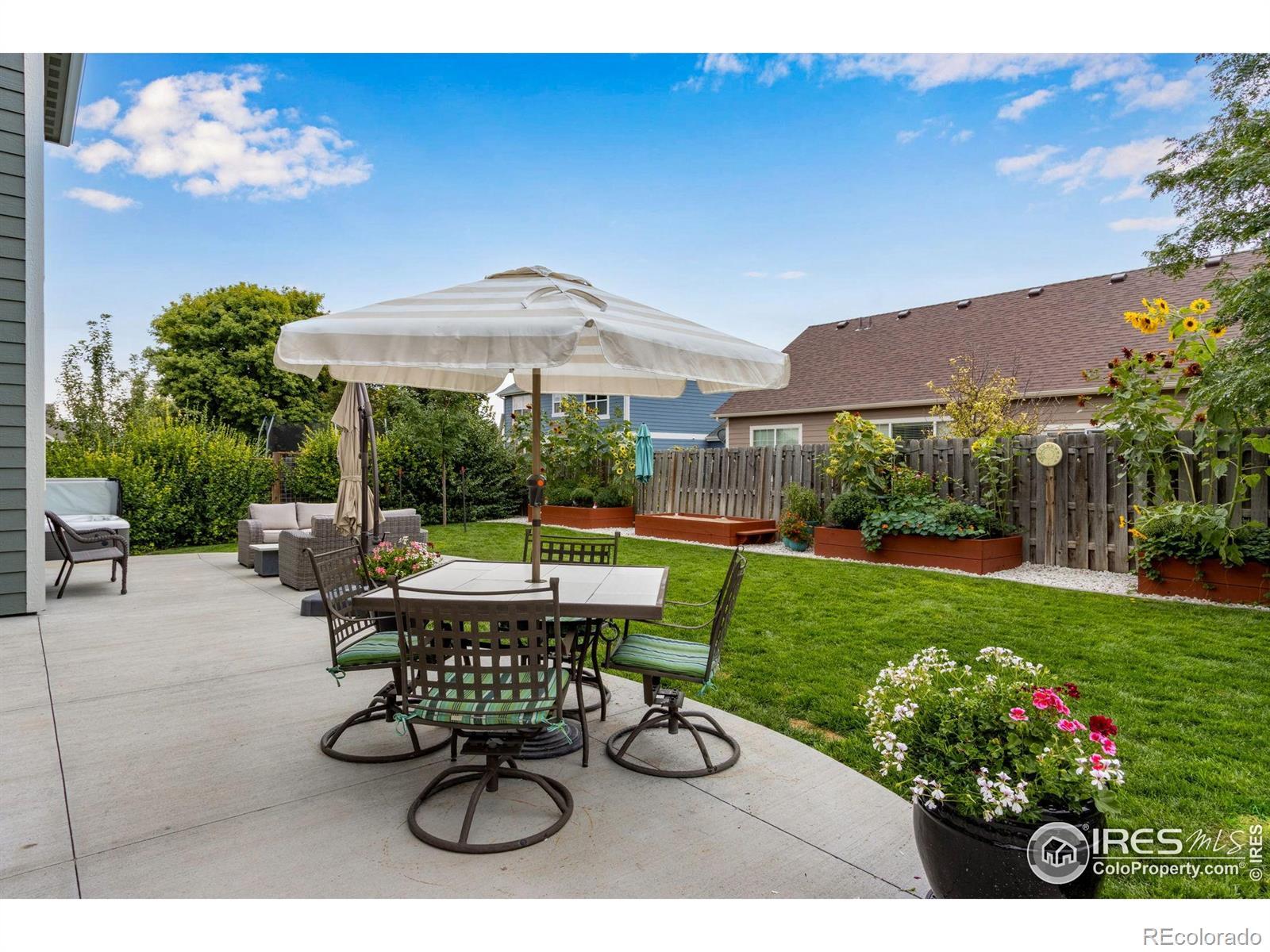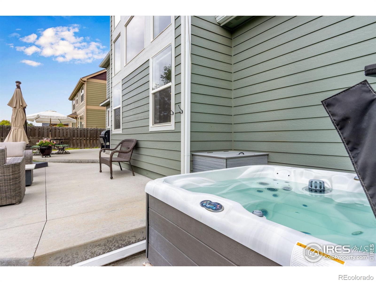 Immaculately maintained and thoughtfully updated 5-bedroom, 4-bath home located in Wellington's desirable Park Meadows neighborhood. Originally built as a semi-custom show home, this property offers a rare combination of design, function, and quality upgrades inside and out. The main floor features a spacious primary suite, a 17' living room ceiling with abundant natural light, and newly refinished hardwood floors. The kitchen has been recently updated with quartz countertops, quartz backsplash, and premium appliances including a KitchenAid gas cooktop, Bosch dishwasher, and LG refrigerator. Additional updates include a new water heater (2025), electric fireplace with reclaimed white oak surround, Malarkey Class 4 roof, refinished hardwoods, and SEER-17 A/C unit. The finished basement was fully permitted and completed (2023), featuring 9' ceilings, a wet bar with Schroll cabinetry and quartz counters, commercial-grade flooring, and an open layout designed for flexible living or easy conversion to add an additional bedroom. Outdoor living shines with a concrete patio, natural gas fire pit, and raised planters with drip systems. The yard includes a 6-zone sprinkler system, new trees, and concrete curbing. Conveniently located-just 15 minutes to Downtown Fort Collins, 25 minutes to Windsor, and a little over an hour to DIA-this home offers an exceptional blend of comfort, craftsmanship, and modern updates with minimal upkeep required.