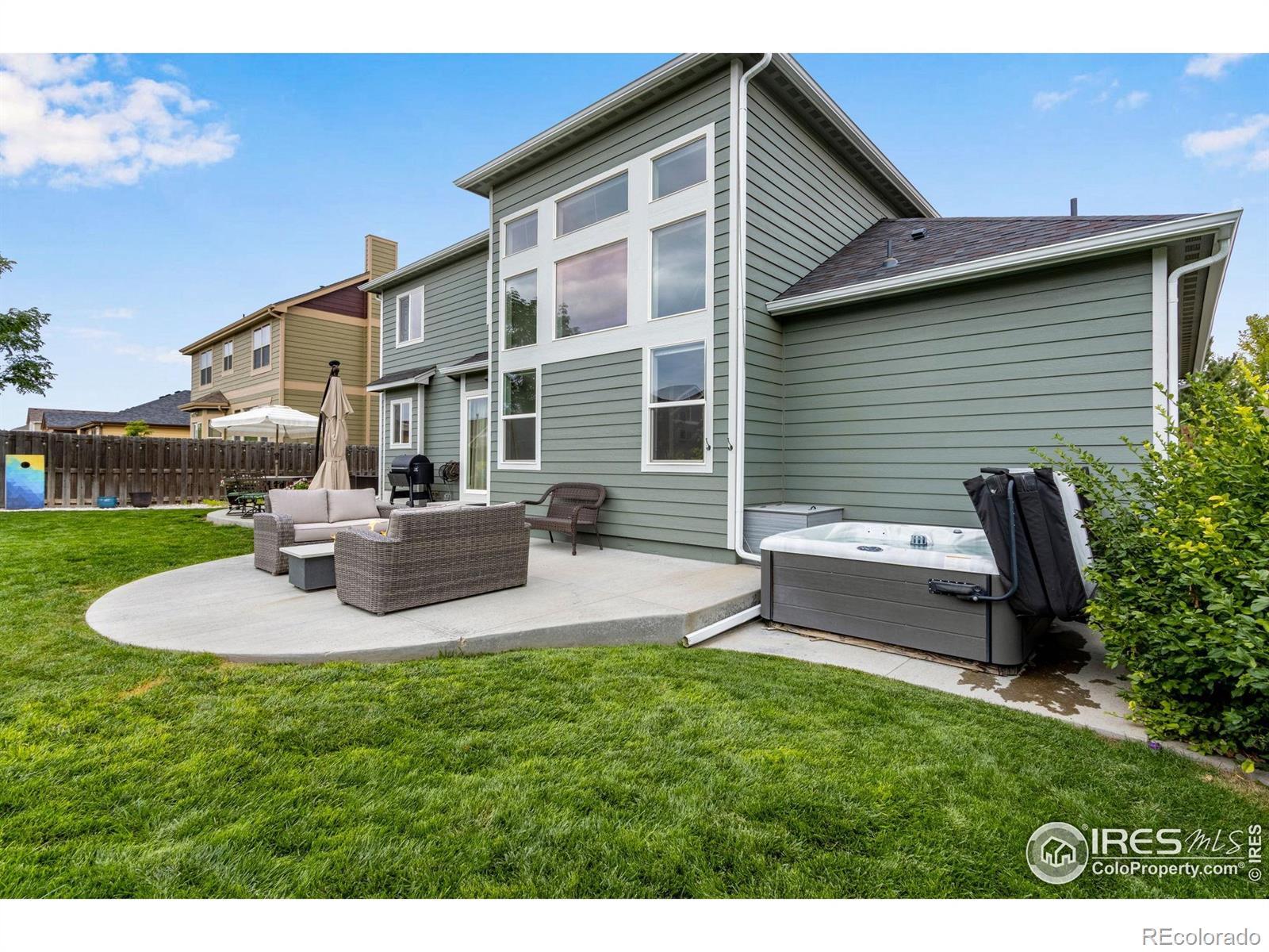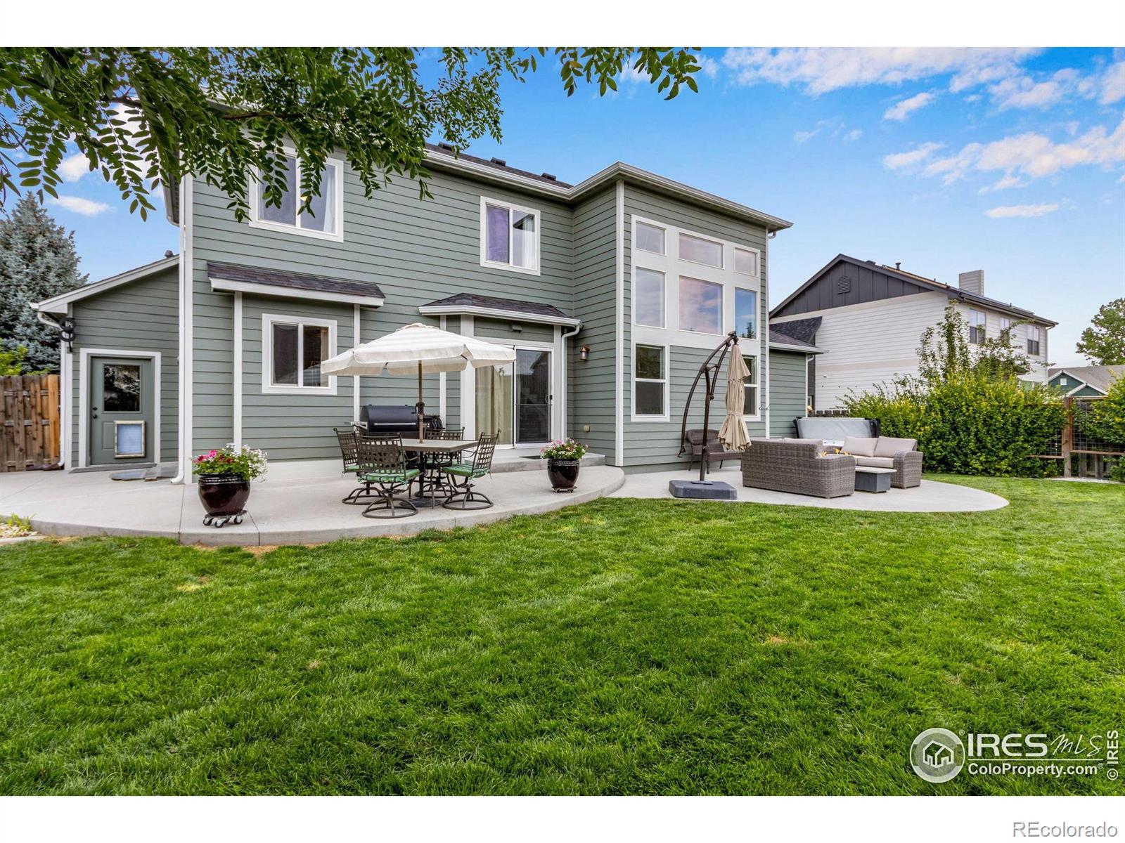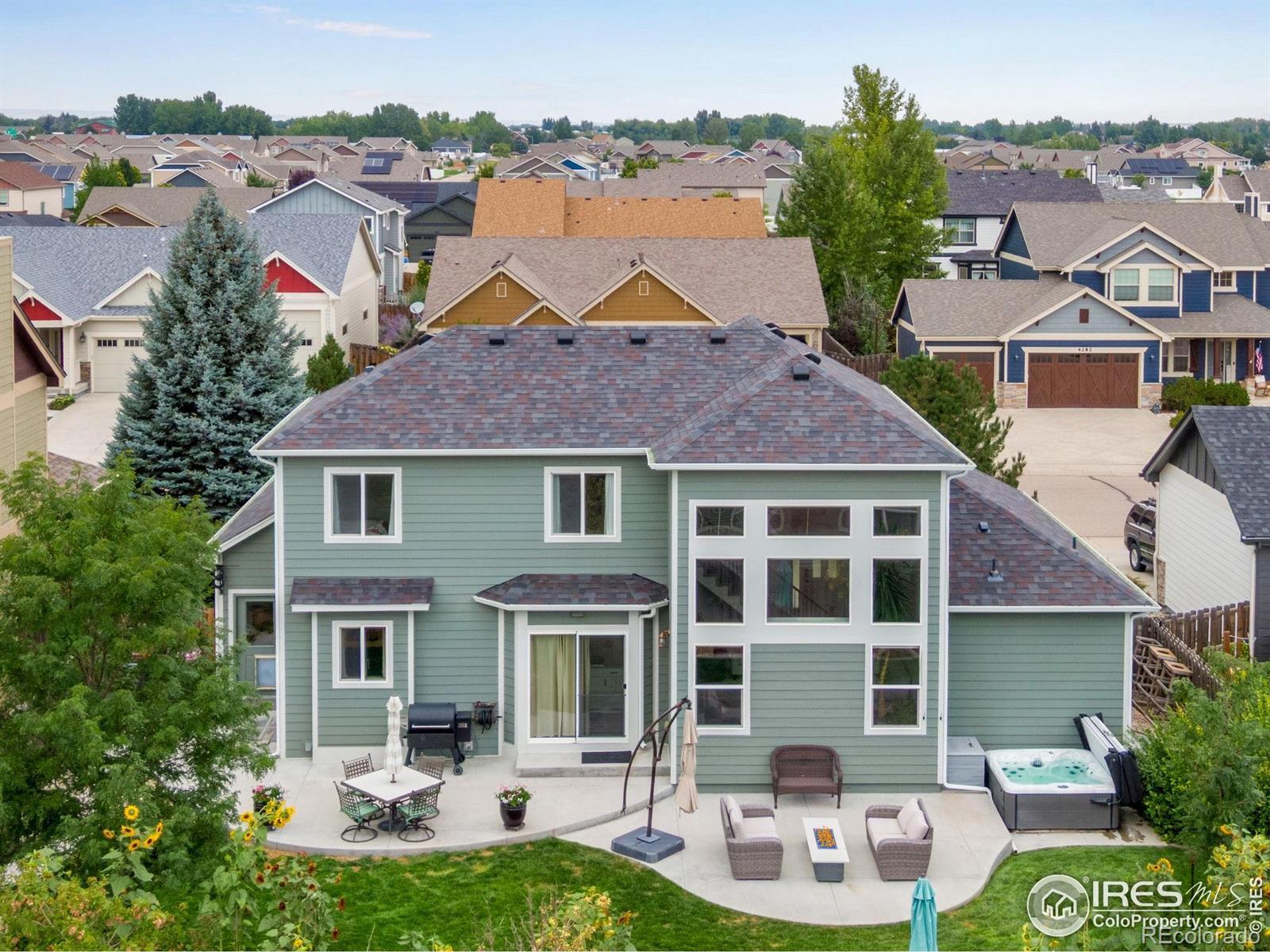 Immaculately maintained and thoughtfully updated 5-bedroom, 4-bath home located in Wellington's desirable Park Meadows neighborhood. Originally built as a semi-custom show home, this property offers a rare combination of design, function, and quality upgrades inside and out. The main floor features a spacious primary suite, a 17' living room ceiling with abundant natural light, and newly refinished hardwood floors. The kitchen has been recently updated with quartz countertops, quartz backsplash, and premium appliances including a KitchenAid gas cooktop, Bosch dishwasher, and LG refrigerator. Additional updates include a new water heater (2025), electric fireplace with reclaimed white oak surround, Malarkey Class 4 roof, refinished hardwoods, and SEER-17 A/C unit. The finished basement was fully permitted and completed (2023), featuring 9' ceilings, a wet bar with Schroll cabinetry and quartz counters, commercial-grade flooring, and an open layout designed for flexible living or easy conversion to add an additional bedroom. Outdoor living shines with a concrete patio, natural gas fire pit, and raised planters with drip systems. The yard includes a 6-zone sprinkler system, new trees, and concrete curbing. Conveniently located-just 15 minutes to Downtown Fort Collins, 25 minutes to Windsor, and a little over an hour to DIA-this home offers an exceptional blend of comfort, craftsmanship, and modern updates with minimal upkeep required.