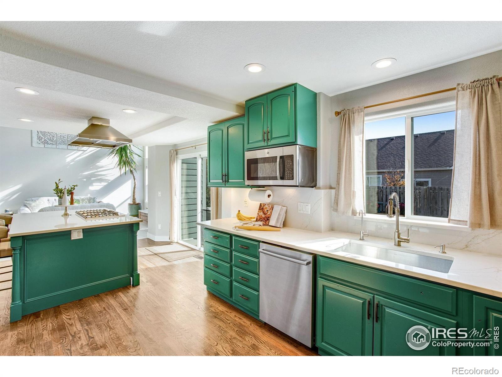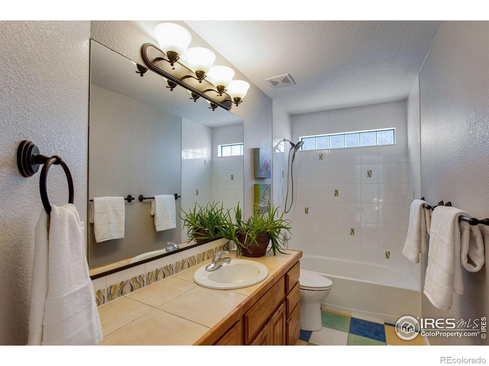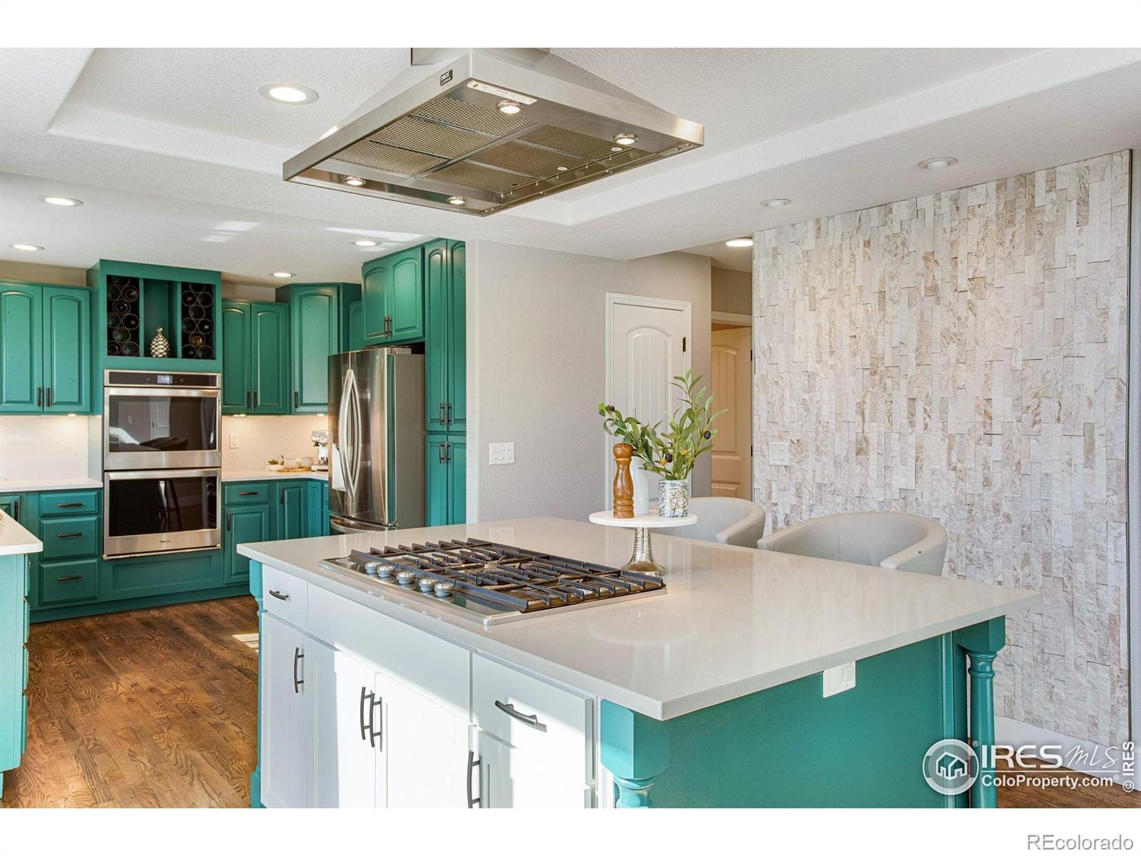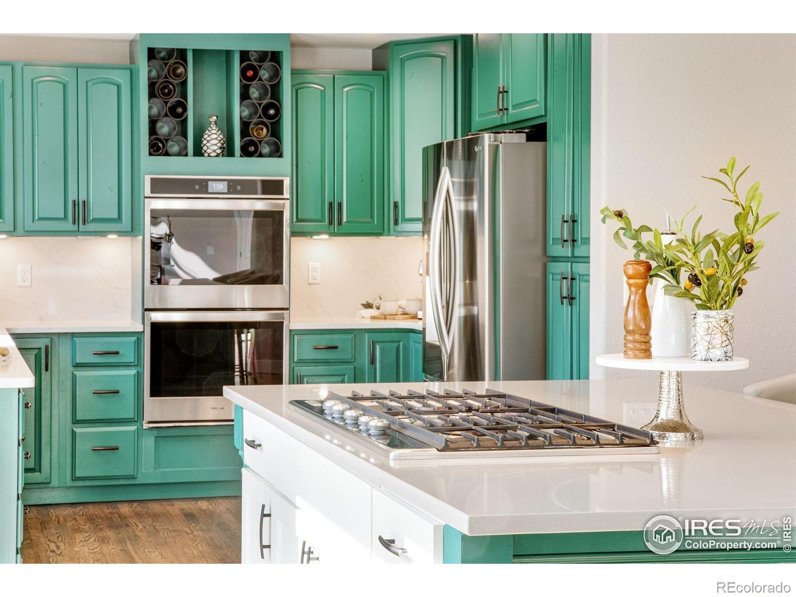 Immaculately maintained and thoughtfully updated 5-bedroom, 4-bath home located in Wellington's desirable Park Meadows neighborhood. Originally built as a semi-custom show home, this property offers a rare combination of design, function, and quality upgrades inside and out. The main floor features a spacious primary suite, a 17' living room ceiling with abundant natural light, and newly refinished hardwood floors. The kitchen has been recently updated with quartz countertops, quartz backsplash, and premium appliances including a KitchenAid gas cooktop, Bosch dishwasher, and LG refrigerator. Additional updates include a new water heater (2025), electric fireplace with reclaimed white oak surround, Malarkey Class 4 roof, refinished hardwoods, and SEER-17 A/C unit. The finished basement was fully permitted and completed (2023), featuring 9' ceilings, a wet bar with Schroll cabinetry and quartz counters, commercial-grade flooring, and an open layout designed for flexible living or easy conversion to add an additional bedroom. Outdoor living shines with a concrete patio, natural gas fire pit, and raised planters with drip systems. The yard includes a 6-zone sprinkler system, new trees, and concrete curbing. Conveniently located-just 15 minutes to Downtown Fort Collins, 25 minutes to Windsor, and a little over an hour to DIA-this home offers an exceptional blend of comfort, craftsmanship, and modern updates with minimal upkeep required.