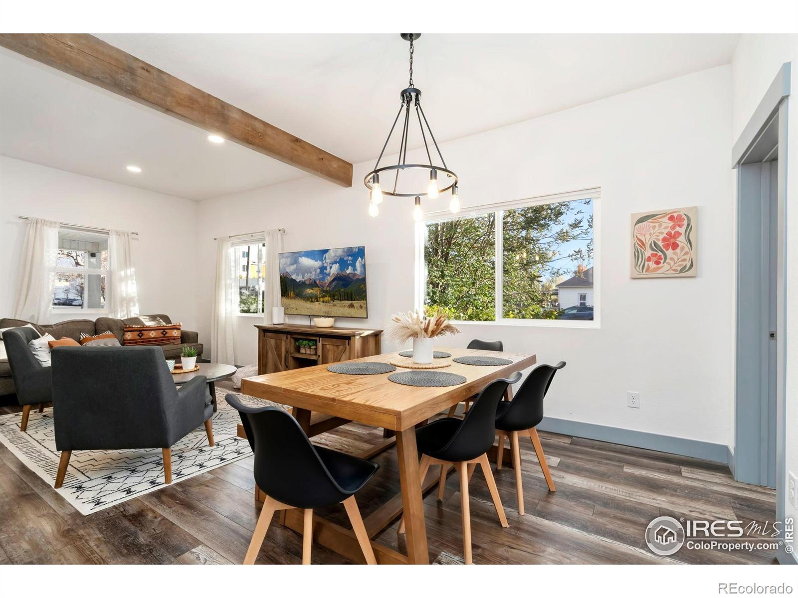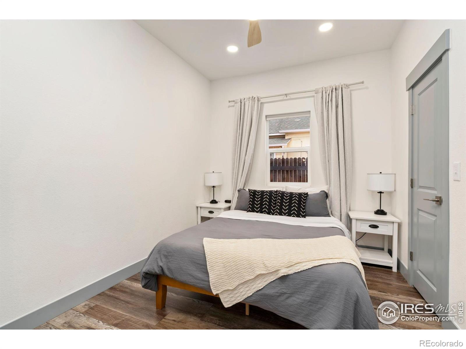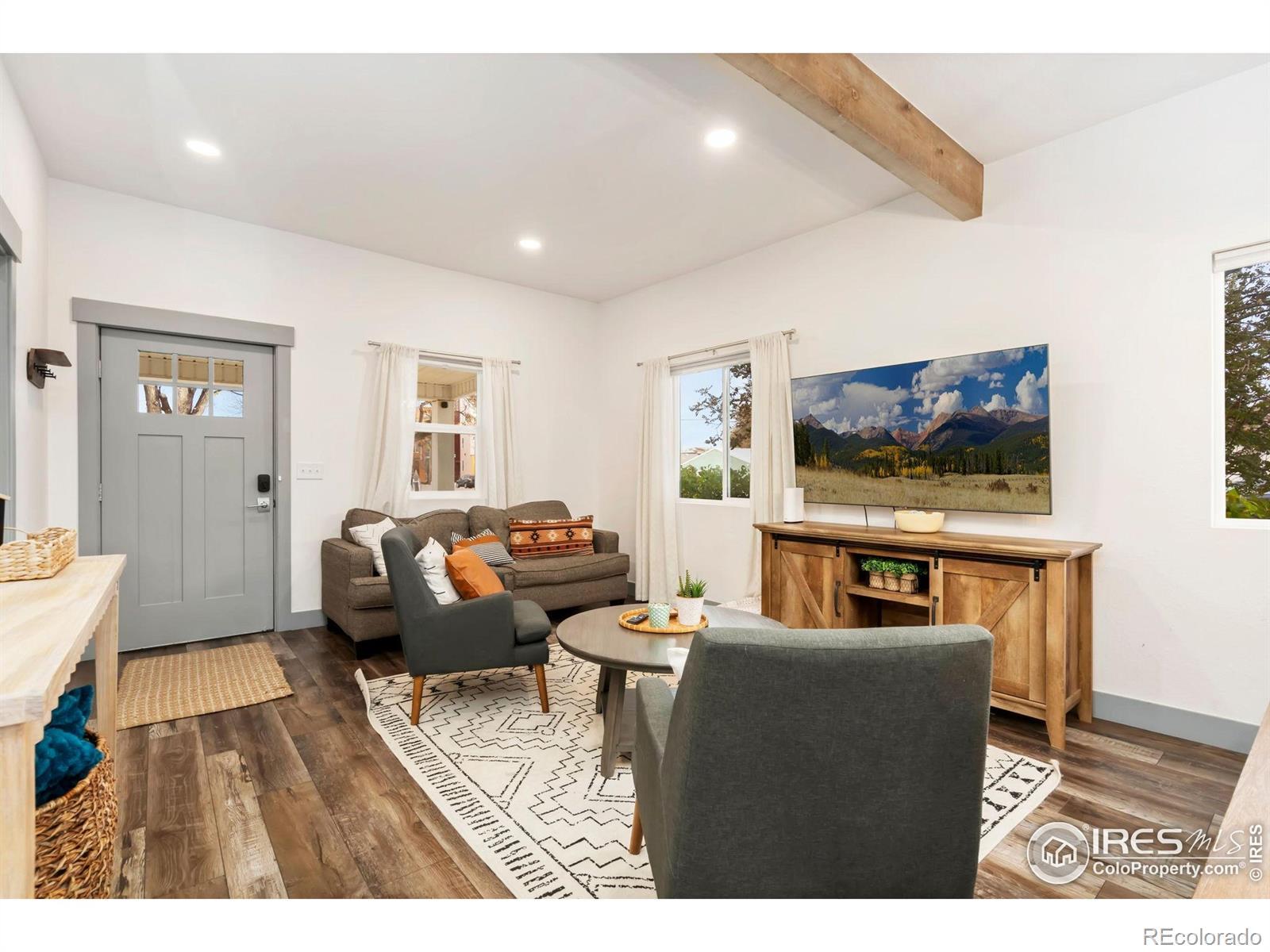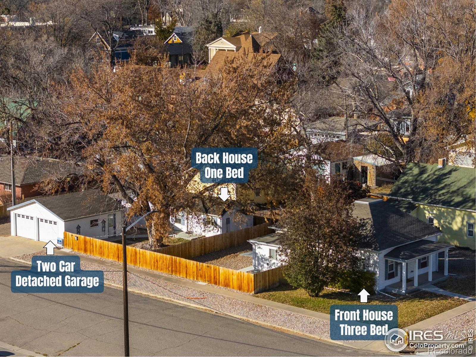 Rare opportunity - two beautifully updated homes with separate mailing addresses on one lot in the heart of Downtown Loveland! The front home features 3 bedrooms, 1 full bath, soaring ceilings with exposed beams, and refreshed craftsmanship throughout. Thoughtfully updated with luxury vinyl flooring, double-pane windows, recessed lighting and fixtures, and a completely new kitchen with quartz countertops. The spacious bathroom and convenient laundry add everyday comfort. Currently a professionally managed Airbnb, it offers excellent flexibility for owner occupancy or continued income. The back home with its own separate mailing address at 215 W 3rd Street features 1 bedroom and bathroom, was also fully remodeled with a clean, modern aesthetic, new kitchen, bath, and laundry. The back home is tenant occupied with a lease through December 31, 2025, providing immediate rental revenue. Set on a large corner lot with alley access, each home enjoys a private fenced yard, patio, low-maintenance landscaping, and updated flatwork. The oversized 2-car garage offers excellent storage and parking options, and the mechanicals in both homes are new in 2022 for peace of mind. Truly move-in ready, this property delivers exceptional versatility - ideal for short-term rental income, multigenerational living, or a blend of both. All just steps from Downtown Loveland's restaurants, galleries, shops, and community events!