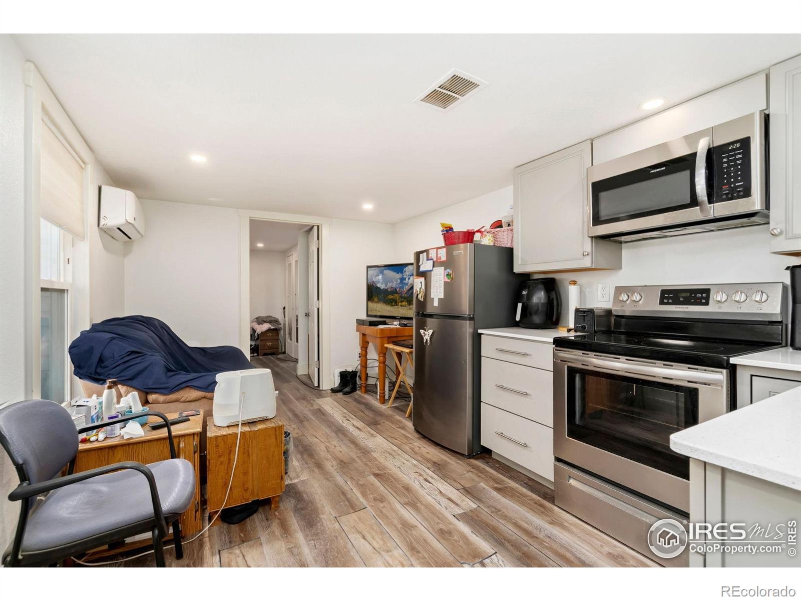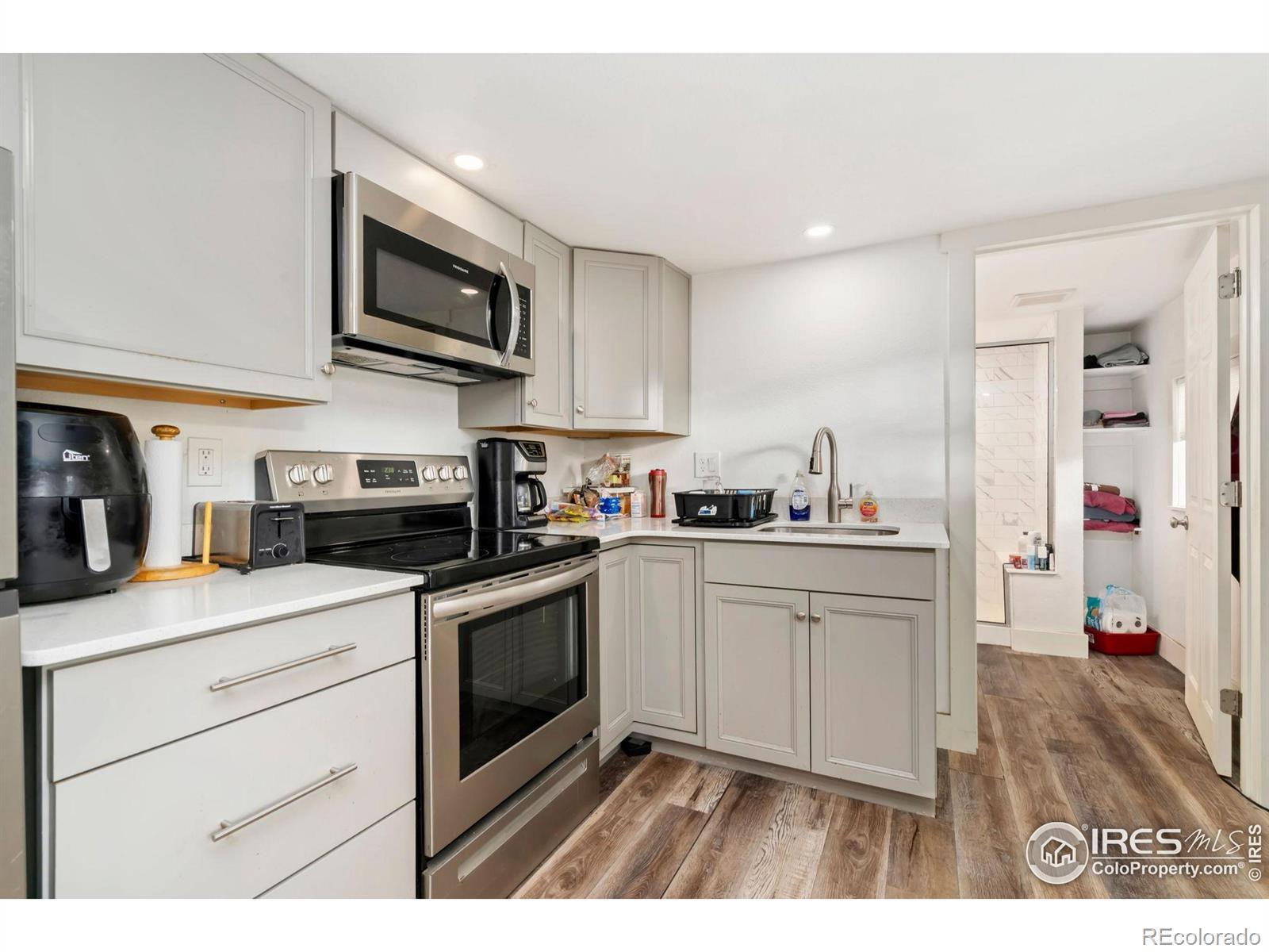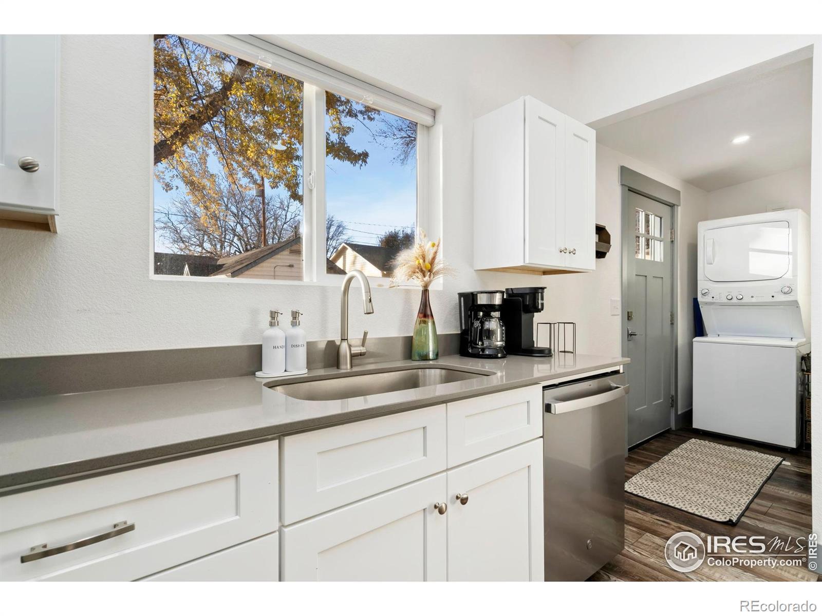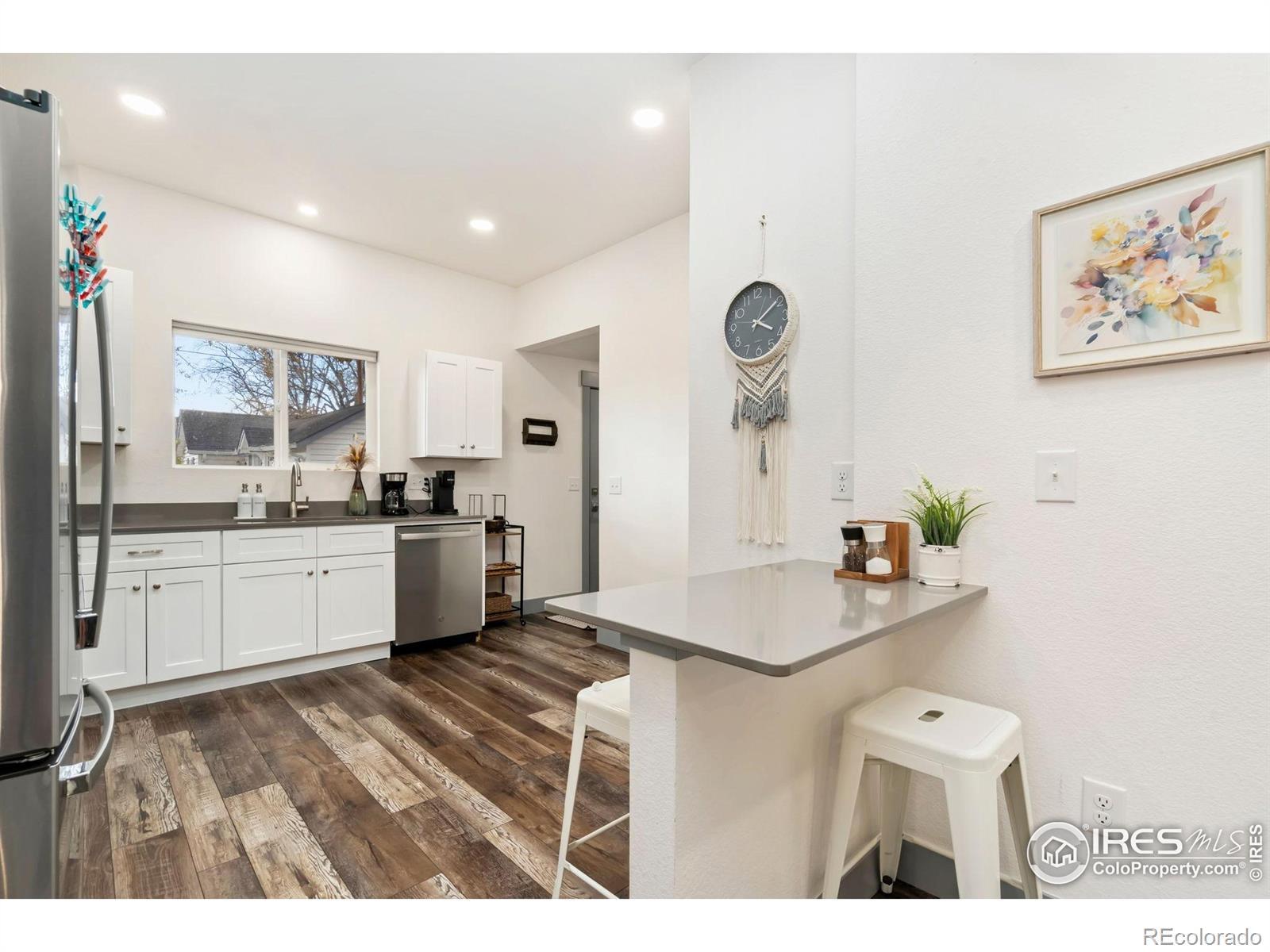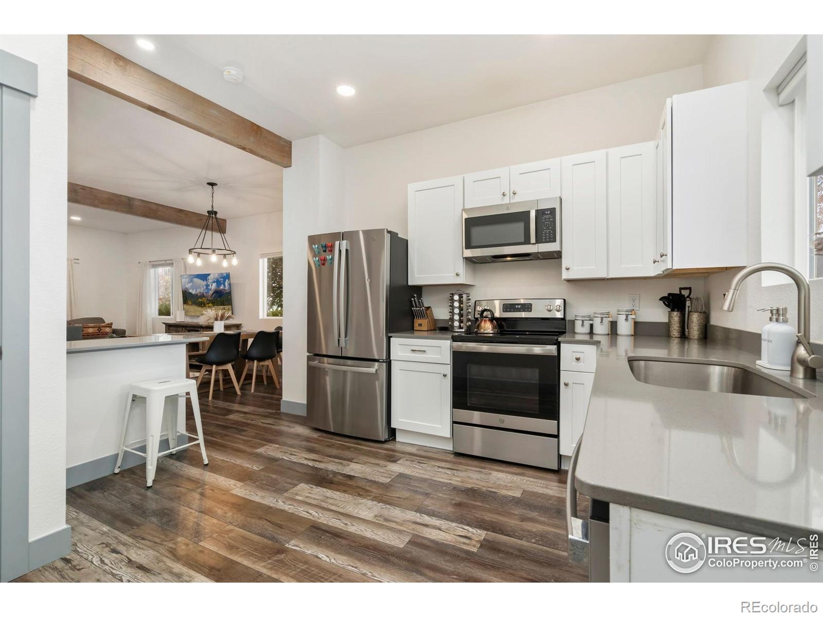 Rare opportunity - two beautifully updated homes with separate mailing addresses on one lot in the heart of Downtown Loveland! The front home features 3 bedrooms, 1 full bath, soaring ceilings with exposed beams, and refreshed craftsmanship throughout. Thoughtfully updated with luxury vinyl flooring, double-pane windows, recessed lighting and fixtures, and a completely new kitchen with quartz countertops. The spacious bathroom and convenient laundry add everyday comfort. Currently a professionally managed Airbnb, it offers excellent flexibility for owner occupancy or continued income. The back home with its own separate mailing address at 215 W 3rd Street features 1 bedroom and bathroom, was also fully remodeled with a clean, modern aesthetic, new kitchen, bath, and laundry. The back home is tenant occupied with a lease through December 31, 2025, providing immediate rental revenue. Set on a large corner lot with alley access, each home enjoys a private fenced yard, patio, low-maintenance landscaping, and updated flatwork. The oversized 2-car garage offers excellent storage and parking options, and the mechanicals in both homes are new in 2022 for peace of mind. Truly move-in ready, this property delivers exceptional versatility - ideal for short-term rental income, multigenerational living, or a blend of both. All just steps from Downtown Loveland's restaurants, galleries, shops, and community events!