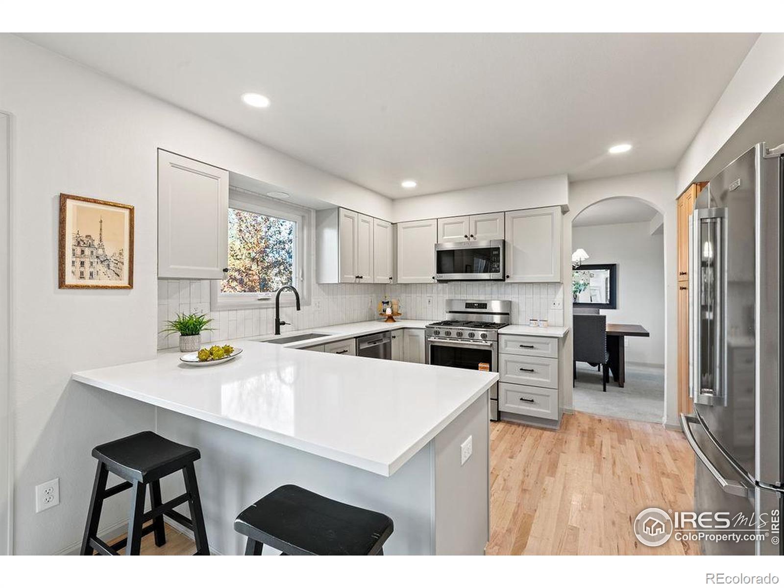 Move-in ready and beautifully updated, this 5-bedroom, 4-bath home blends comfort, style, and convenience. Backing directly to Shepardson Elementary School, this two-story home offers an ideal setting with mature landscaping, a new back deck, fresh exterior paint and access to the community HOA pool. Inside, you'll find new windows, new carpet, fresh interior paint and a completely renovated kitchen featuring quartz countertops, modern cabinetry, stainless steel appliances, and a gas range. The open-concept living and dining spaces flow naturally into the family room with vaulted ceilings and a cozy fireplace. Upstairs, the primary suite boasts a stunning new bathroom with a walk-in shower, soaking tub, and spacious closet. Enjoy nearby parks and trails, close proximity to shopping, dining, and CSU. Whether entertaining or relaxing at home, this property offers modern updates and timeless charm.