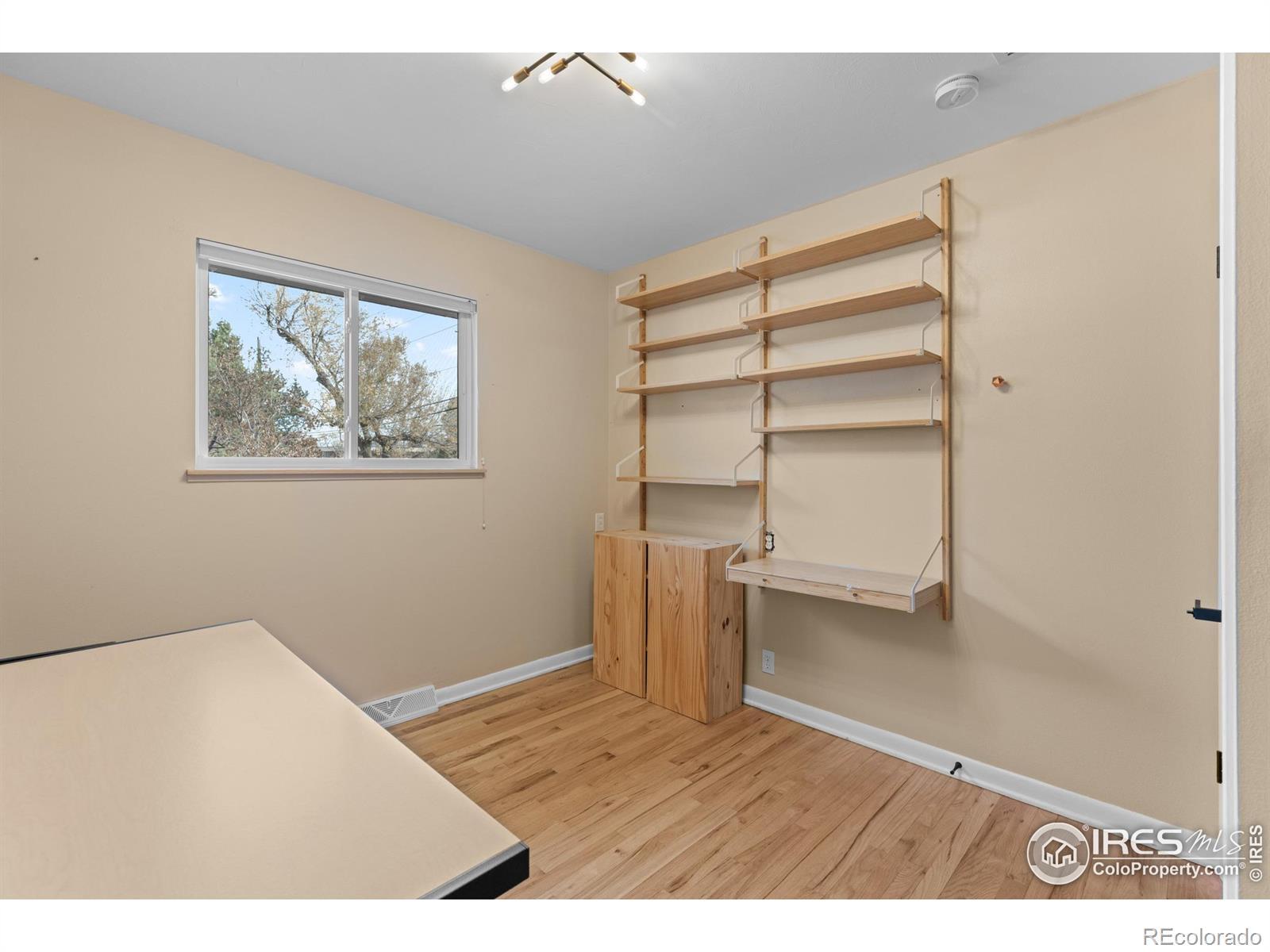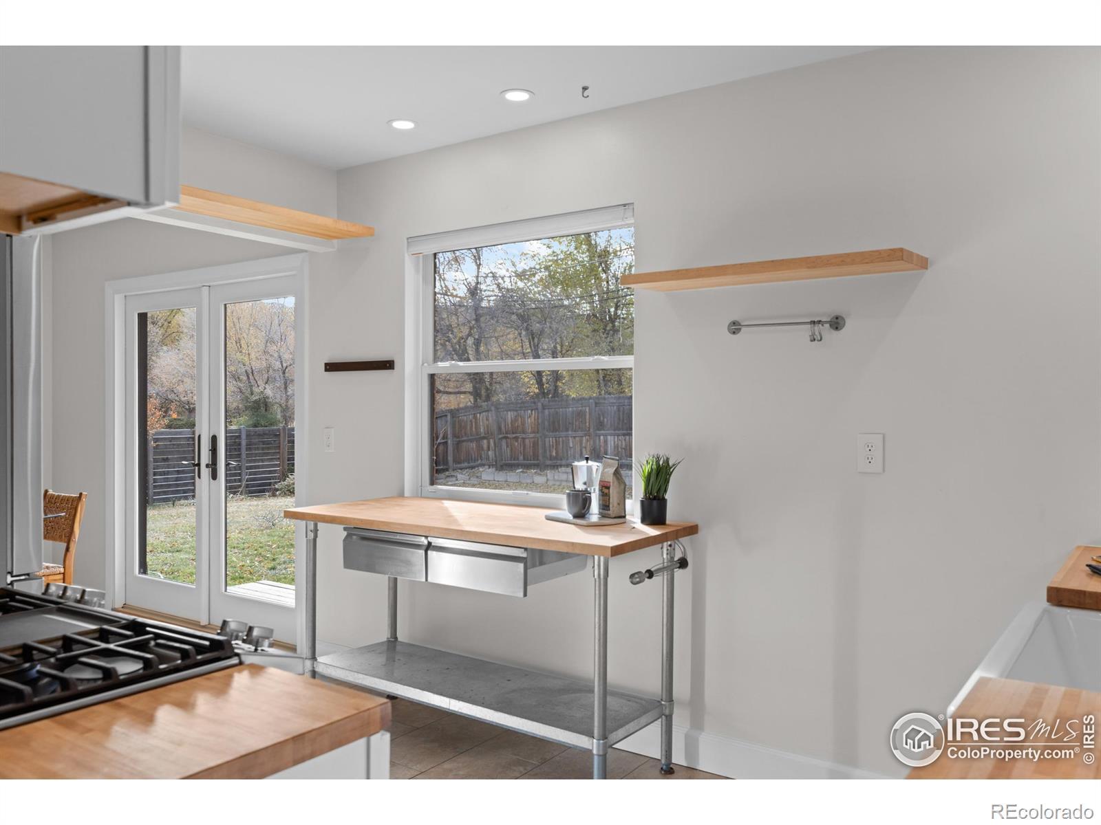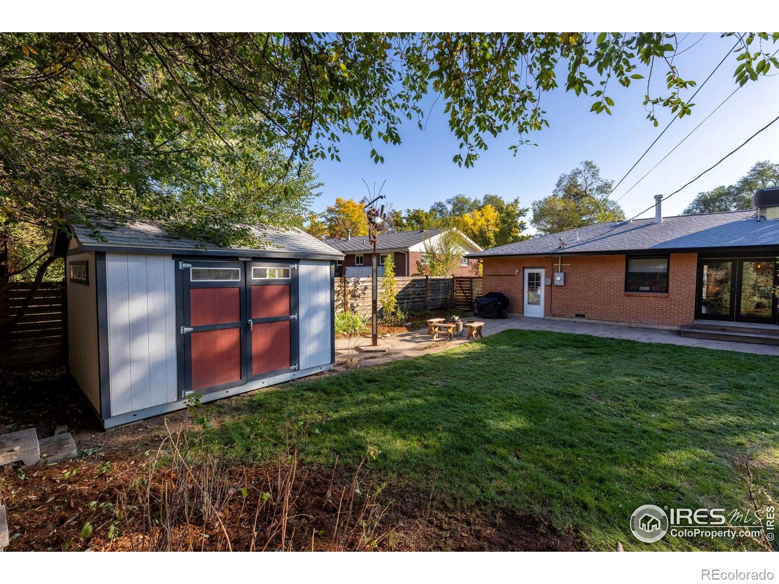Welcome home to this charming, sun-filled brick ranch on a picturesque corner lot in Boulder! This thoughtfully updated 3-bedroom, 1-bathroom home perfectly blends comfort and modern style. Step inside to find beautiful hardwood floors, UPGRADED recessed lighting, updated bathroom, and a NEWLY finished bonus room that adds flexibility for work, play, or relaxation. One of the bedrooms features a convenient Murphy bed, offering smart functionality and space-saving design.The refreshed kitchen showcases new cabinets, a new stylish backsplash, under cabinet lights, floating shelves, extra kitchen counter that stays, and updated appliances - all designed with both form and function in mind. Newly added FRENCH DOORS open to a private backyard retreat with MOUNTAIN VIEWS, updated LANDSCAPING and a NEW sprinkler system, perfect for entertaining or soaking up the Colorado sunshine. Raised garden beds in the front yard add to the home's curb appeal and charm.A spacious MUDROOM with BUILT-IN SHELVING provides the perfect spot to store all your Colorado gear - from skis and hiking boots to bikes and backpacks - keeping everyday life organized and ready for adventure. In the backyard, a 10x12 storage SHED offers ample room for tools, outdoor equipment, or hobby space.With a newer ROOF, new WINDOWS throughout, new INTERIOR and EXTERIOR PAINT and a 2019 WATER HEATER, Newly added swamp COOLER which ducts to each room; all the major updates are already complete. Located just minutes from local shops, restaurants, and trails, this home offers the very best of Boulder living - stylish, comfortable, and move-in ready!
