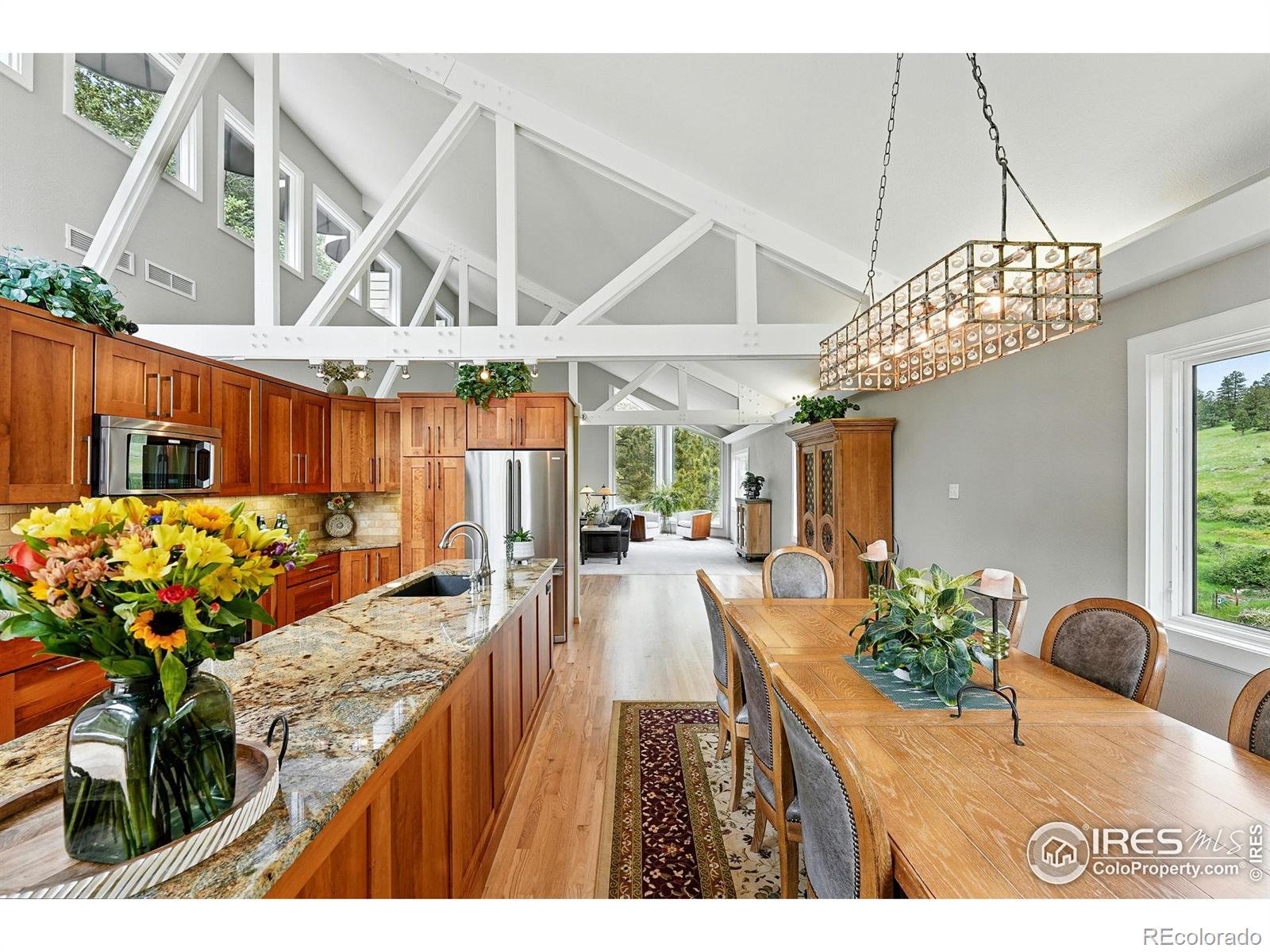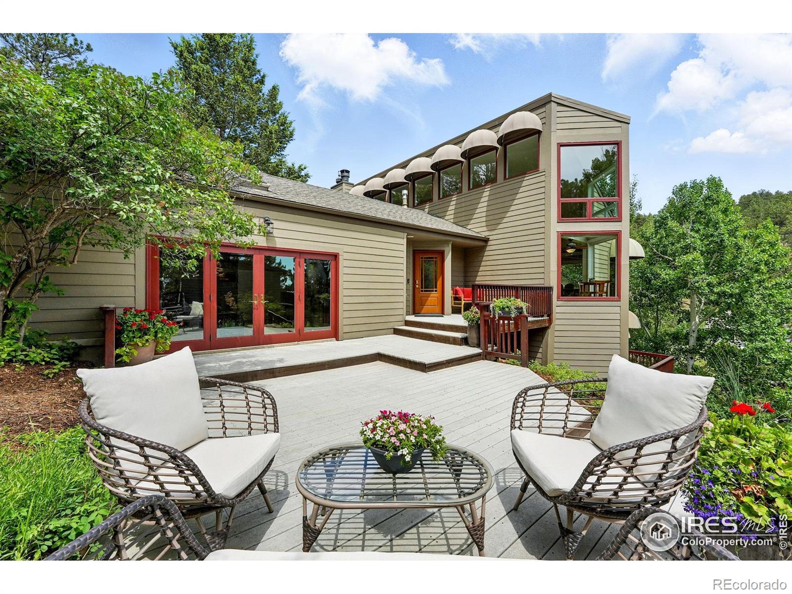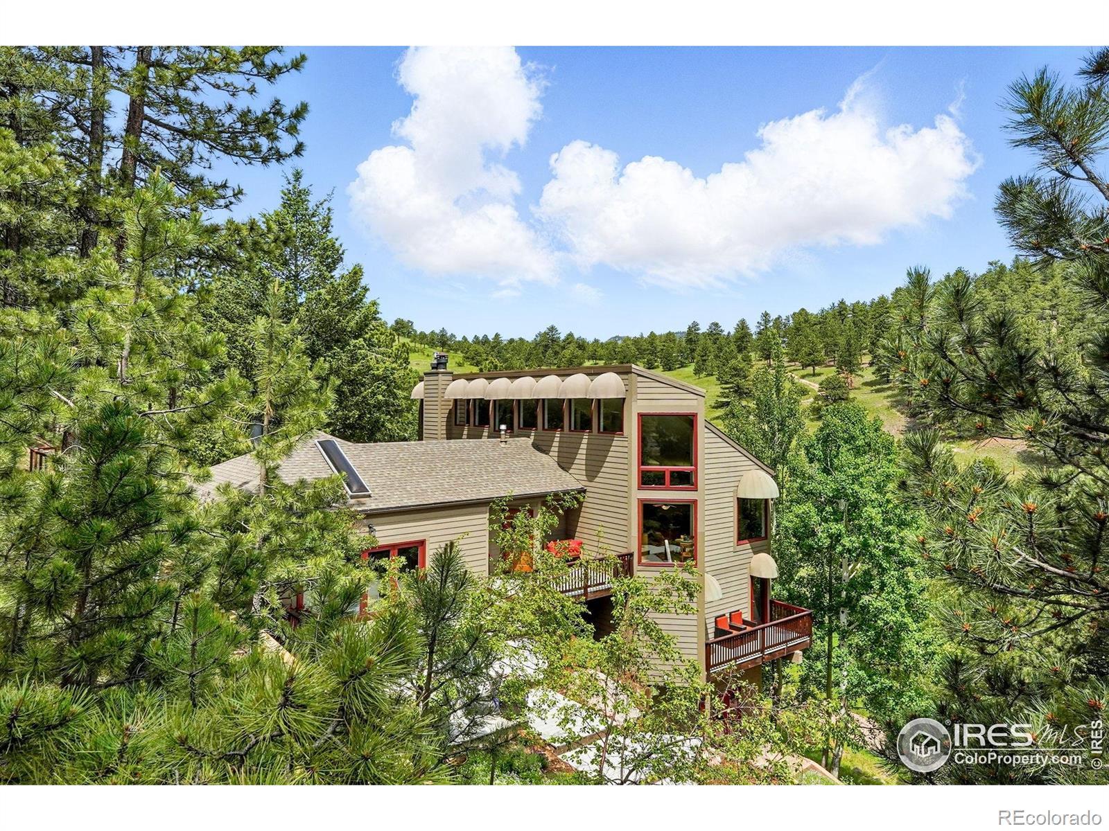 Discover the rarest of combinations in Boulder: a private compound with an art studio and a detached guest house featuring panoramic views all just 5 miles from the Pearl Street Mall. Welcome to this Pine Brook Hills sanctuary where luxury meets inspiration. At the heart of this nearly 1-acre estate is a beautifully remodeled main residence, a sun-drenched haven filled with vaulted ceilings, skylights, and panoramic foothill vistas from every window. The open-concept design features a spacious great room, a modern chef's kitchen, and two generous living areas. The primary suite feels like a secluded treehouse escape and includes direct deck access. What truly elevates this property are two distinct bonus spaces: a sprawling 800sf studio with a private entrance-perfect for an artist, home gym, or expansive office - and a charming 500sf guest house above the garage, ideal for visitors, remote work, or a private retreat. Step outside to enjoy over 1,000sf of Trex decking, seamlessly connecting you to the serene landscape & remarkably flat, fenced yard space-a true mountain rarity. Enjoy ultimate peace of mind with a brand new Class 4 impact-resistant Owens Corning STORM roof, which includes a transferable warranty & may qualify for significant homeowner insurance discounts. This mountain lifestyle is made effortless with paved roads, natural gas, community water, a voluntary HOA, a neighborhood fire station, & reliable school bus service. With nearly 5,000sf of finished space under roof, this property delivers the perfect blend of creative freedom, privacy, and convenient access to town. For the artist, entrepreneur, or anyone seeking an inspired haven, your search ends here.