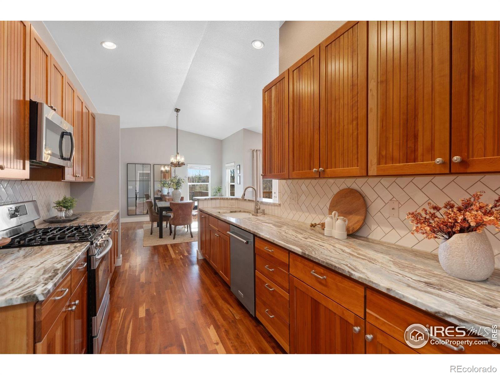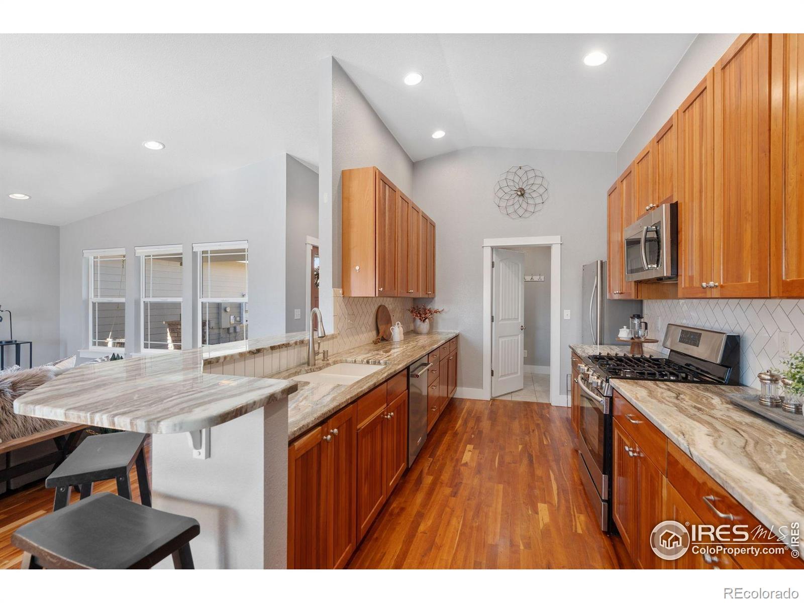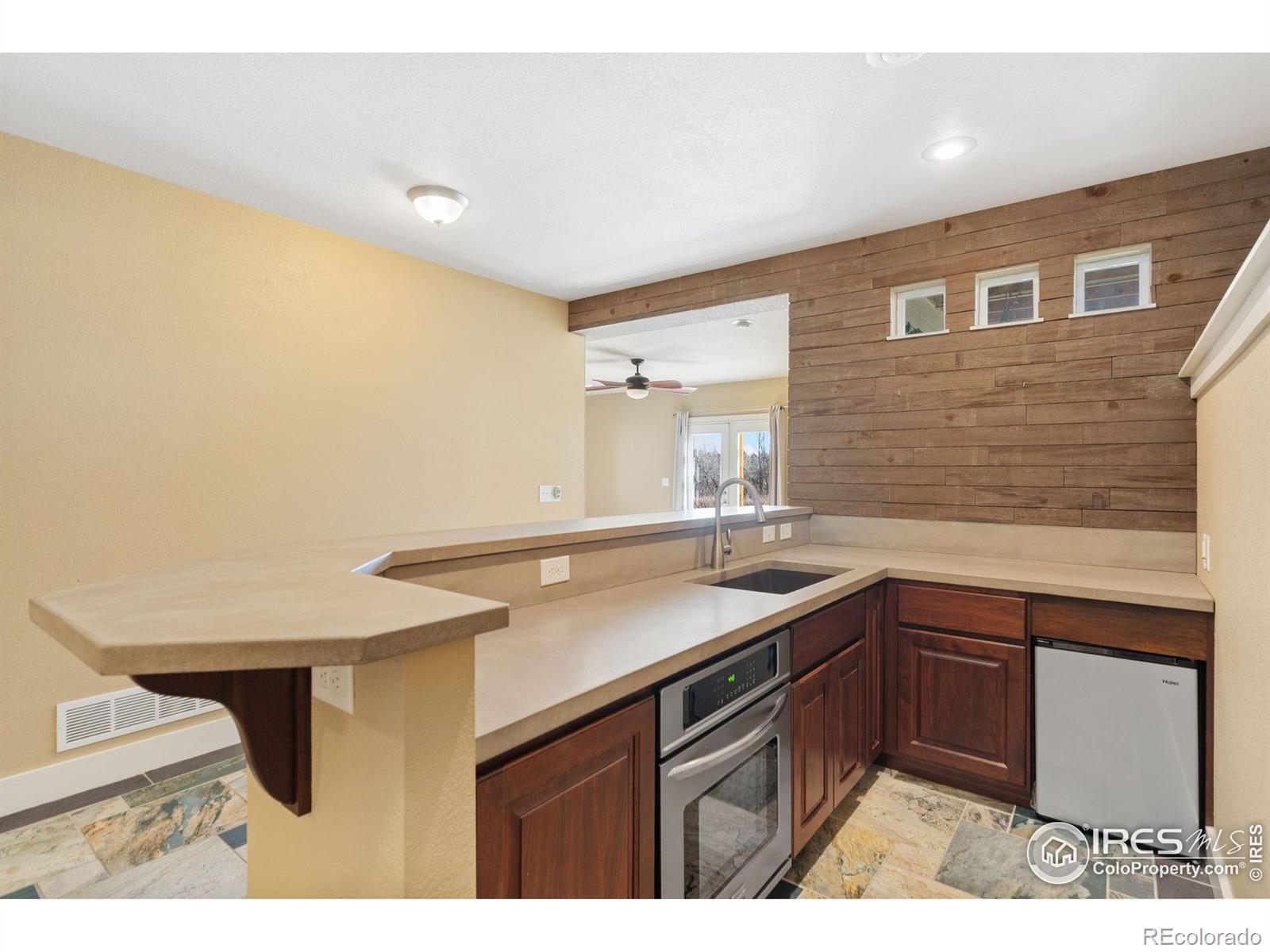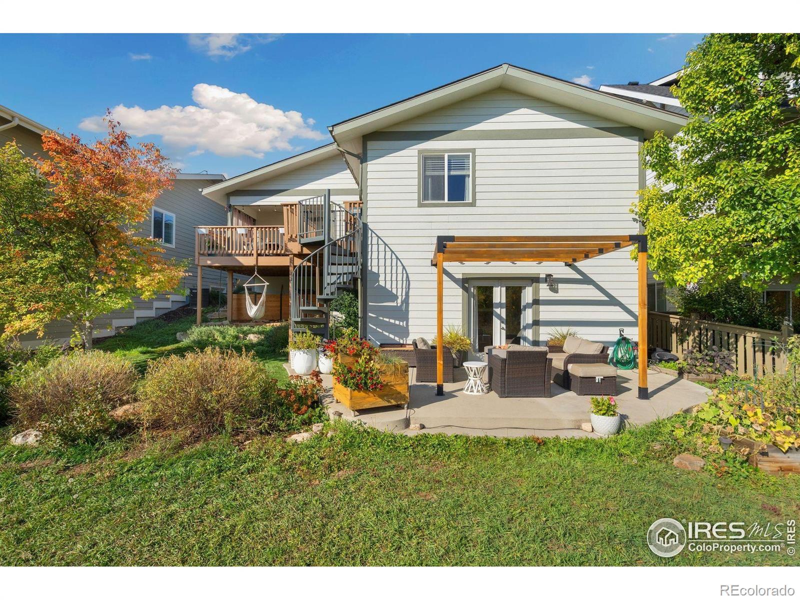Welcome to 2321 West Tarragon Lane, nestled in Bellwether-one of Fort Collins' most sought-after neighborhoods. This exclusive enclave of homes sits on a private, single-loop street, offering tranquility, privacy, and a true sense of community. Backing to open space and a peaceful canal, this home provides serene views and a natural buffer rarely found within city limits. Inside, enjoy modern updates throughout paired with warm, inviting finishes that make every space feel like home. Designed for entertaining, the open main level flows to a spacious upper deck, while the walk-out basement is complete with a wet bar, fireplace, and direct access to a lush backyard patio surrounded by mature landscaping. A spiral staircase connects the deck to the private outdoor retreat below-perfect for gatherings or quiet mornings. With 5 bedrooms and 3 full bathrooms, this home offers flexible living for families and guests alike. Owned solar panels provide energy efficiency and peace of mind. Ideally located, you're within walking distance to Irish Elementary and just a short bike ride to City Park and Old Town Fort Collins, where shops, dining, and local events await. Experience the perfect balance of modern comfort, natural beauty, and community charm-all in the heart of Bellwether.