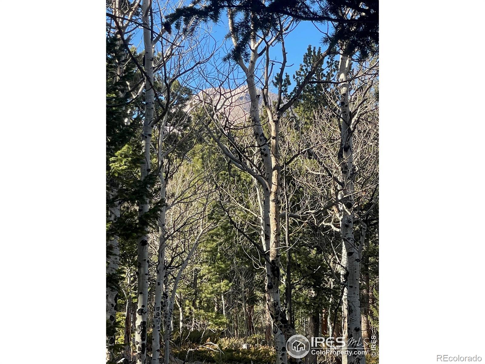 Walk into Rocky Mountain National Park. Over five incredible acres of mostly level land with aspen, ponderosa , and Douglas fir which has been fire mitigated and is ready for your dream home. Easy access off a county road. Power is to the property line and water is provided by a local water provider.....no well needed. Easily the nicest parcel of land in the entire area. Not another house in sight but only 45 minutes to Boulder/Longmont and 25 minutes to downtown Estes Park. Southern exposure with lots of sun and great views of Meadow Mountain and the foothills to the south. Cut a few trees and there are magnificent views of Mt Meeker at 13, 917'. Abundant wildlife. Opportunities like this are few and far between.