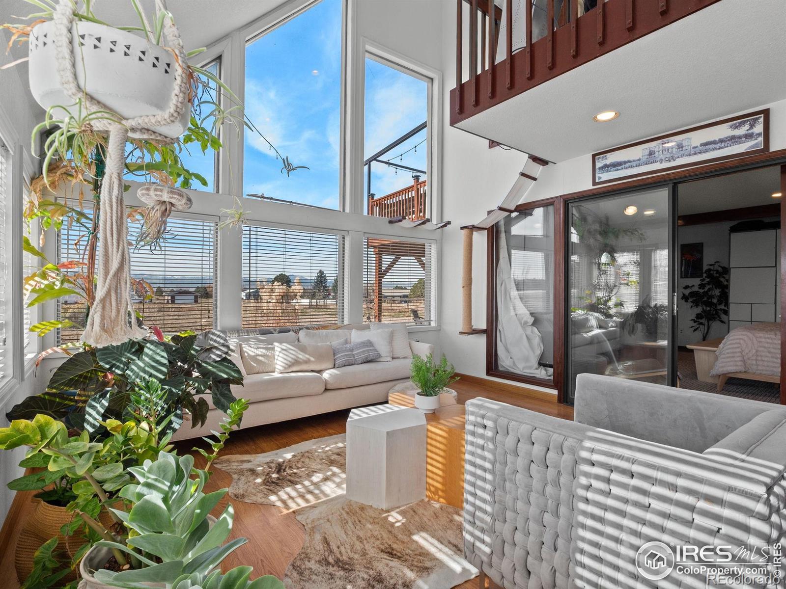 Big front range views, land to sprawl out AND located in a PRIVATE AIRPARK, this home is waiting for it's next aviation enthusiast, hobbyist or anyone who is looking for an incredible and peaceful location. Sitting on over 2.5 acres, there is plenty of room to build a private hangar OR rent one nearby from a community member. Bring your plane right to the property via taxiway and it can be tied down to a recently added pad. This laid back community airpark has a 4200' main runway to the North of the home with pilot operated lighting as well as available fuel. Need room for toys or animals as well? A large barn provides for great additional storage, parking or a place for your animals to call home. Oozing with mid mod vibes, this homes unique reverse floorplan puts the incredible views on full elevated display with soaring vaulted ceilings to wow your guests. A sunny flex living space invites you to relax or grow all your favorite house plants year round. Enjoy your morning coffee out on the new deck with retractable electric awning. Find hardwood floors throughout and several fireplaces to get cozy in the winter months. The solar heating system offers low utility costs and a newer roof provides peace of mind. Located just minutes from downtown Erie's hip bustling shops, restaurants, breweries, parks, summer farmers market & town events. This unique neighborhood also hosts fun experiences such as chili cook offs & aviation events. Come and take a look at the endless possibilities of this beautiful property!