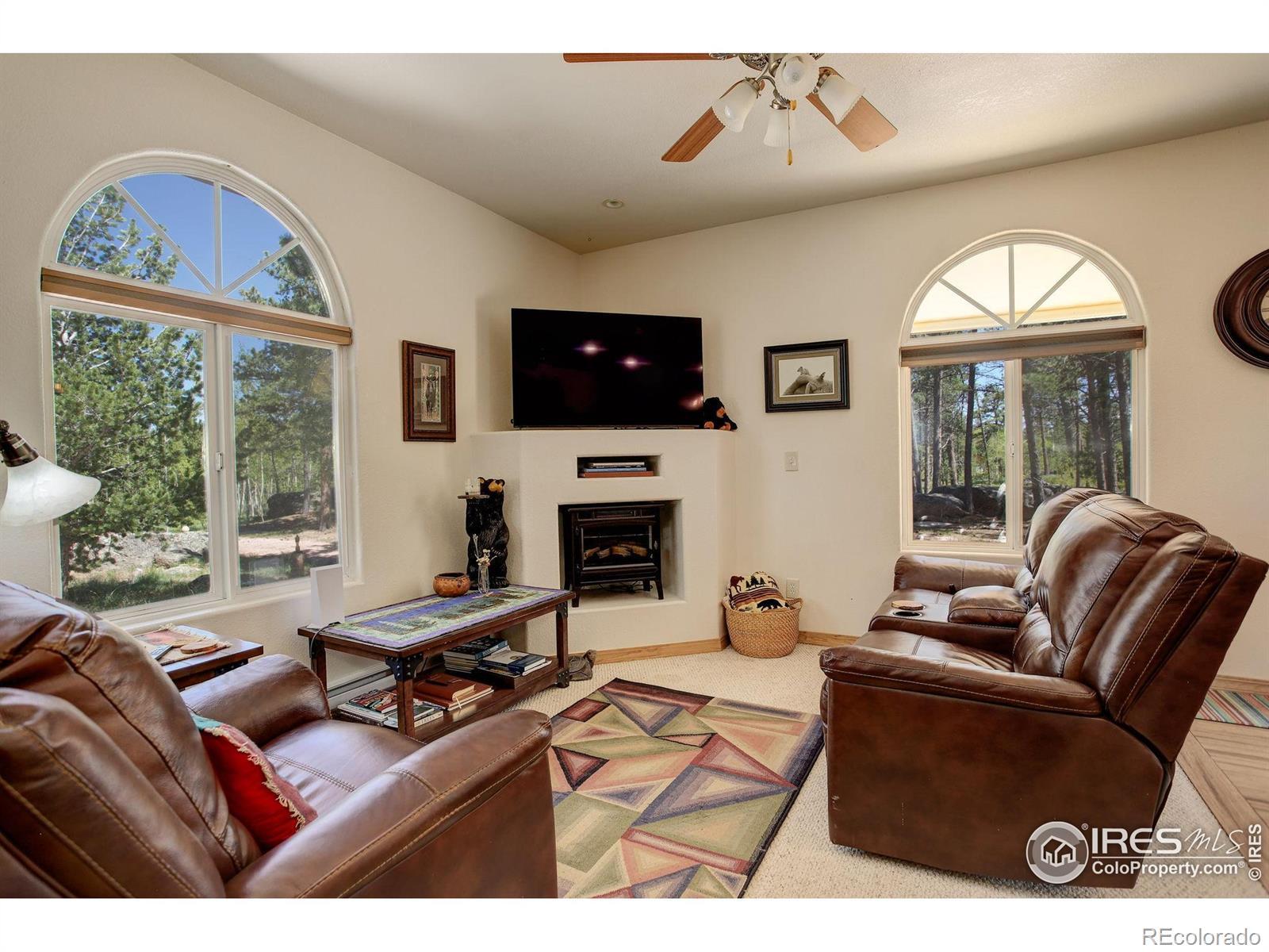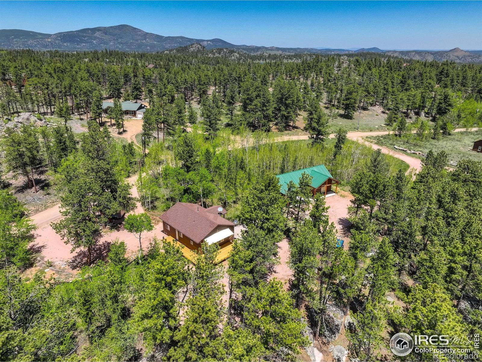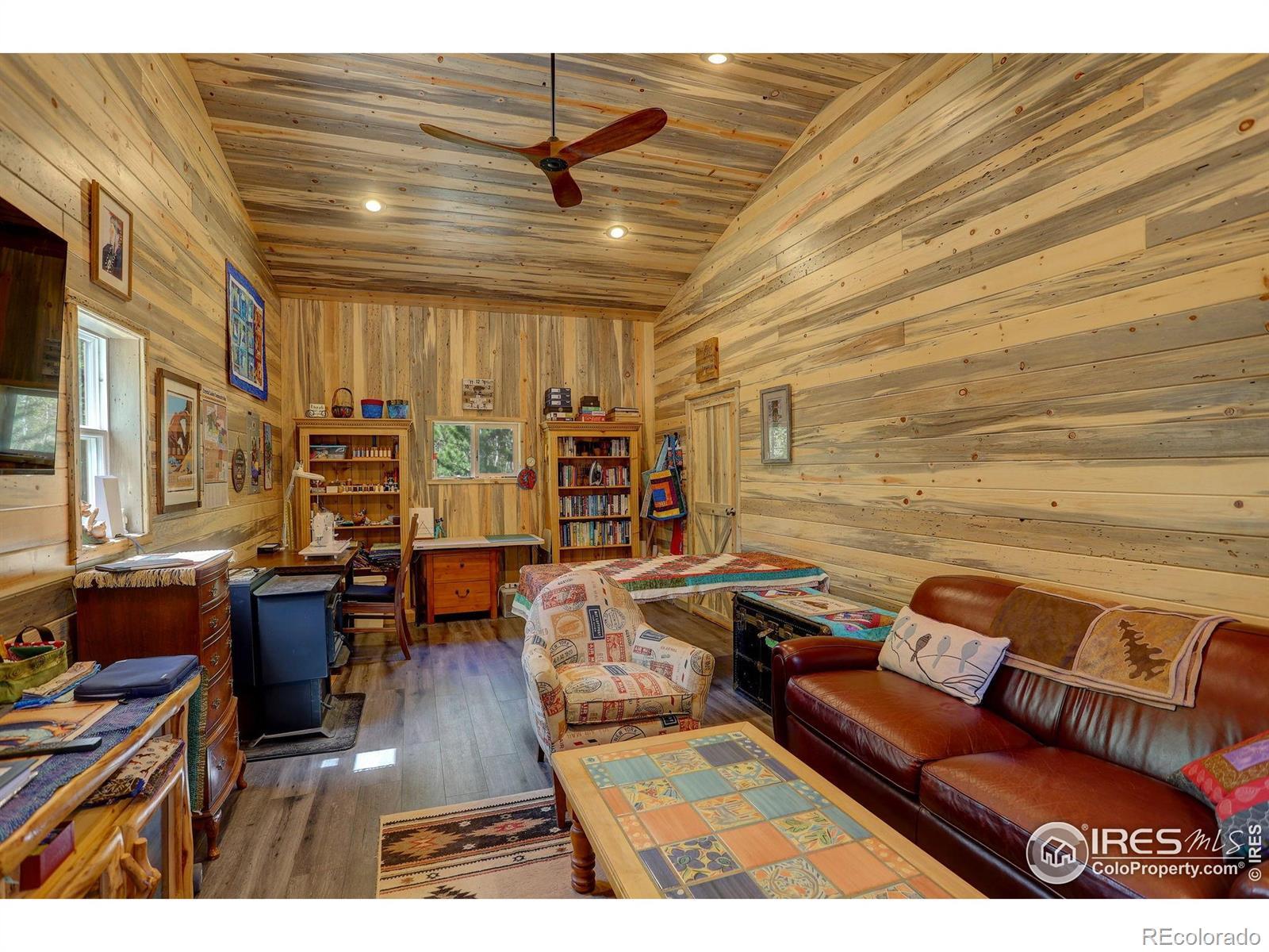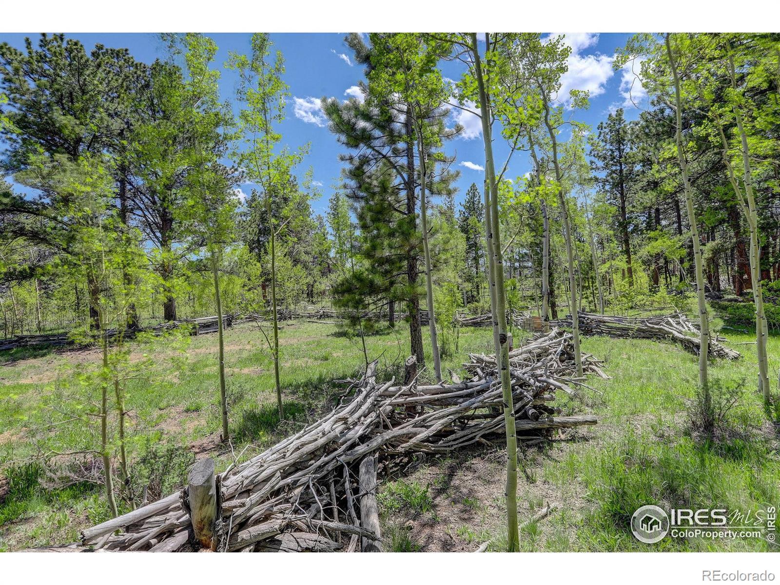Beautiful 2 bedroom mountain cabin with large custom-built outbuilding, providing roughly 2,000 square feet of heated living and work areas. The property is conveniently located just inside of the Crystal Lakes Community, a private mountain subdivision located in Larimer County, Colorado... 5 minutes from Red Feather Lakes Village (Ace Hardware, liquor store, trading post, grocery store, Pot Belly Restaurant, Tavern at RFL, etc.), 23 miles West of Hwy 287 just North of Fort Collins. Situated on 3 flat tree filled acres, this property features Aspen groves, tall Pines, and gorgeous rock outcroppings. This home has been meticulously maintained and has custom finishes throughout, featuring an updated kitchen w/ gas stove/oven and Bamboo floors and Aspen trimmed kitchen window and doors. Newer propane furnace + electric baseboard heat, on-demand hot water, well and septic permitted for additional bed & bath. In the last couple of years, the outbuilding has been fully insulated and divided into a garage/shop area plus an office/hobby/TV room, beautifully finished in Colorado TnG beetle kill. Harman pellet stoves provide excellent heat sources for the shop and hobby room. Circle driveway in the front... separate entrance in rear with lots of parking for your trucks, rv's, trailers, etc. Internet and phone are excellent and reliable, provided through Starlink. HOA plows the roads during snow season.