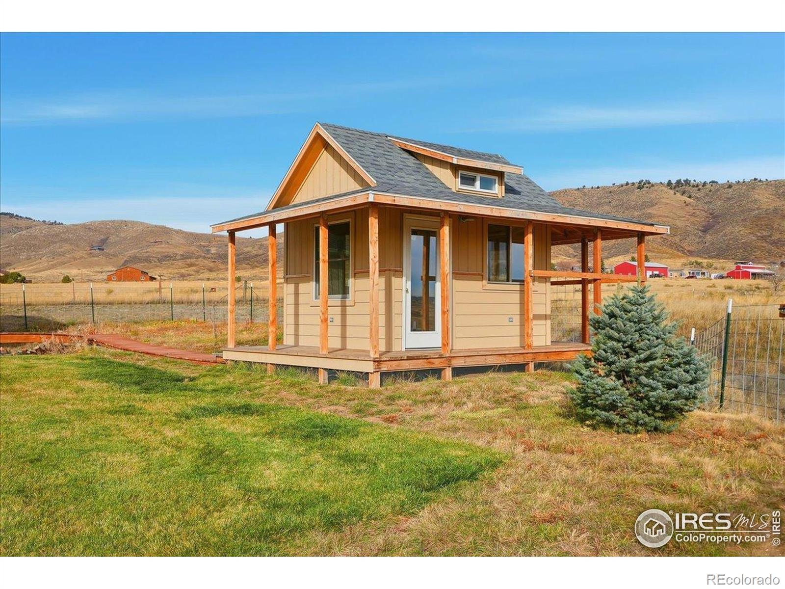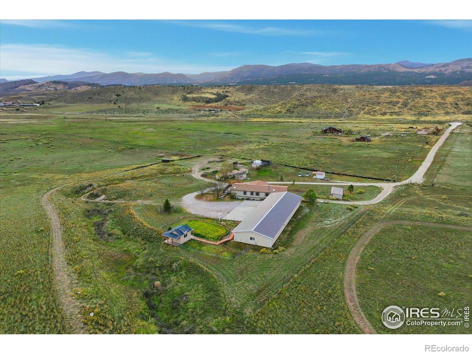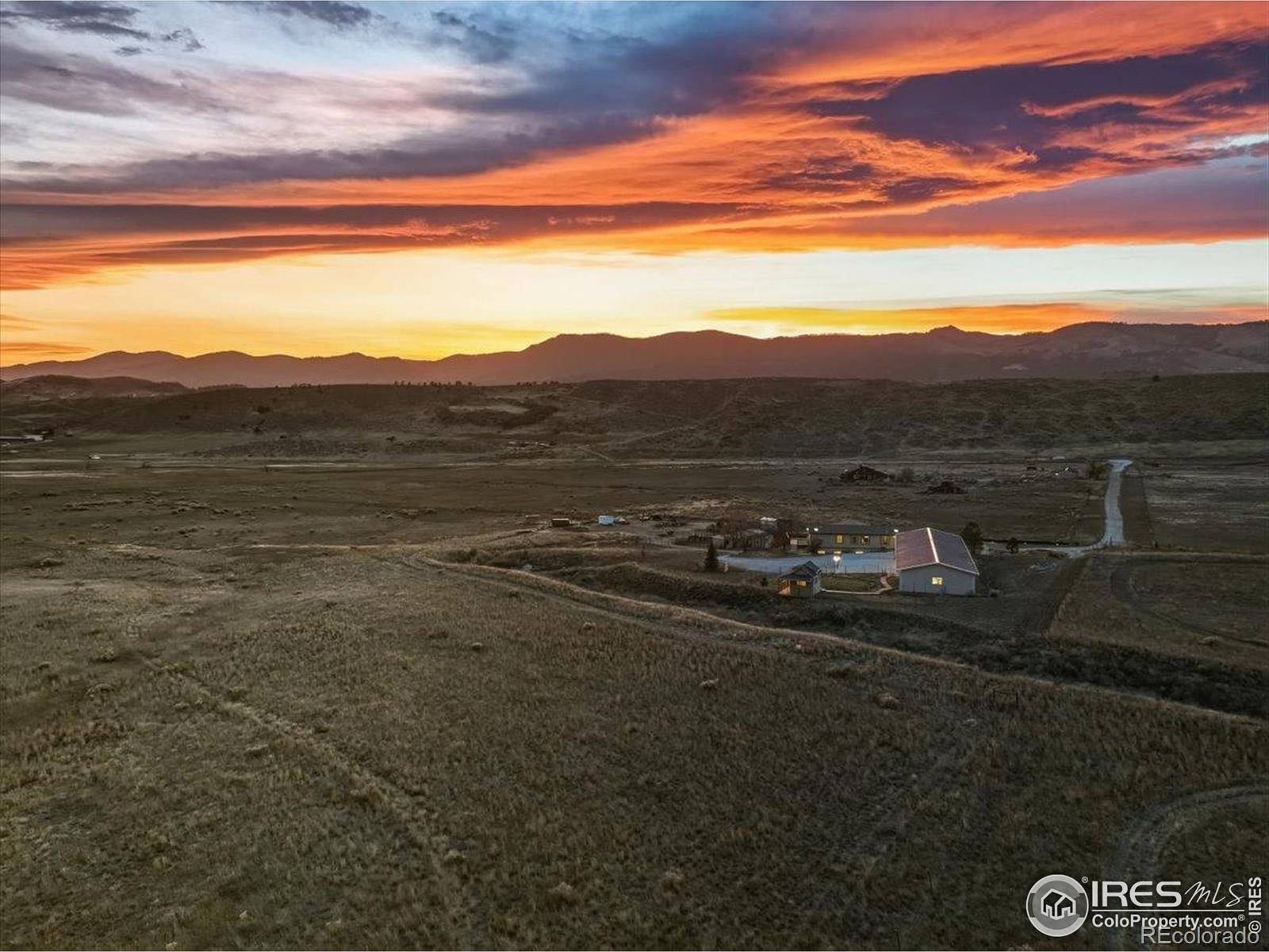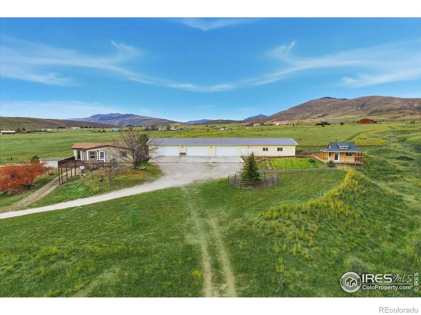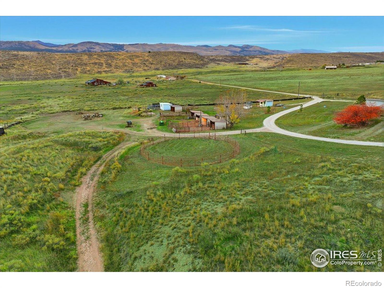 Discover the tranquility and freedom of true Colorado living at 7200 Hiding Elk Lane in Loveland. Set on 35 acres, this welcoming ranch home provides room to live, work, and enjoy the land-without the restrictions of an HOA. With views of the Devil's Backbone and mountains in every direction, this property offers a peaceful retreat while still providing convenient access to town amenities. Inside, the home features an updated kitchen, comfortable gathering areas, and practical main-floor living with a laundry room on both levels. The finished walk-out basement adds exceptional versatility, offering two separate exterior entrances-one into the main living area and one directly into the office. The layout and existing utility connections also allow for the potential to add a second kitchen, making it ideal for multi-generational living, guests, or expanded workspace options. The acreage is well-equipped for animals, recreation, and storage of equipment. A massive 104' x 30' detached 6-car garage with a heated shop provides extraordinary functionality. The property also includes loafing sheds with water, a tack shed, chicken coop, mower shed, sheep shed, and a brand new additional outbuilding with electricity-perfect as a personal retreat, studio, or hobby space. With open land, numerous outbuildings, and panoramic views, this is a rare opportunity to live the Colorado lifestyle.