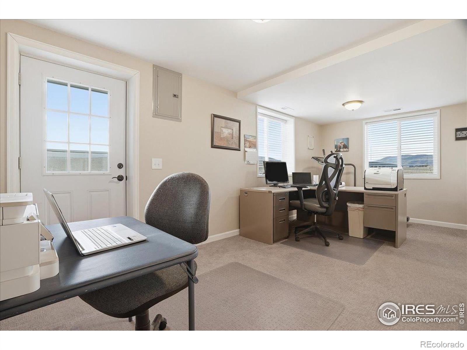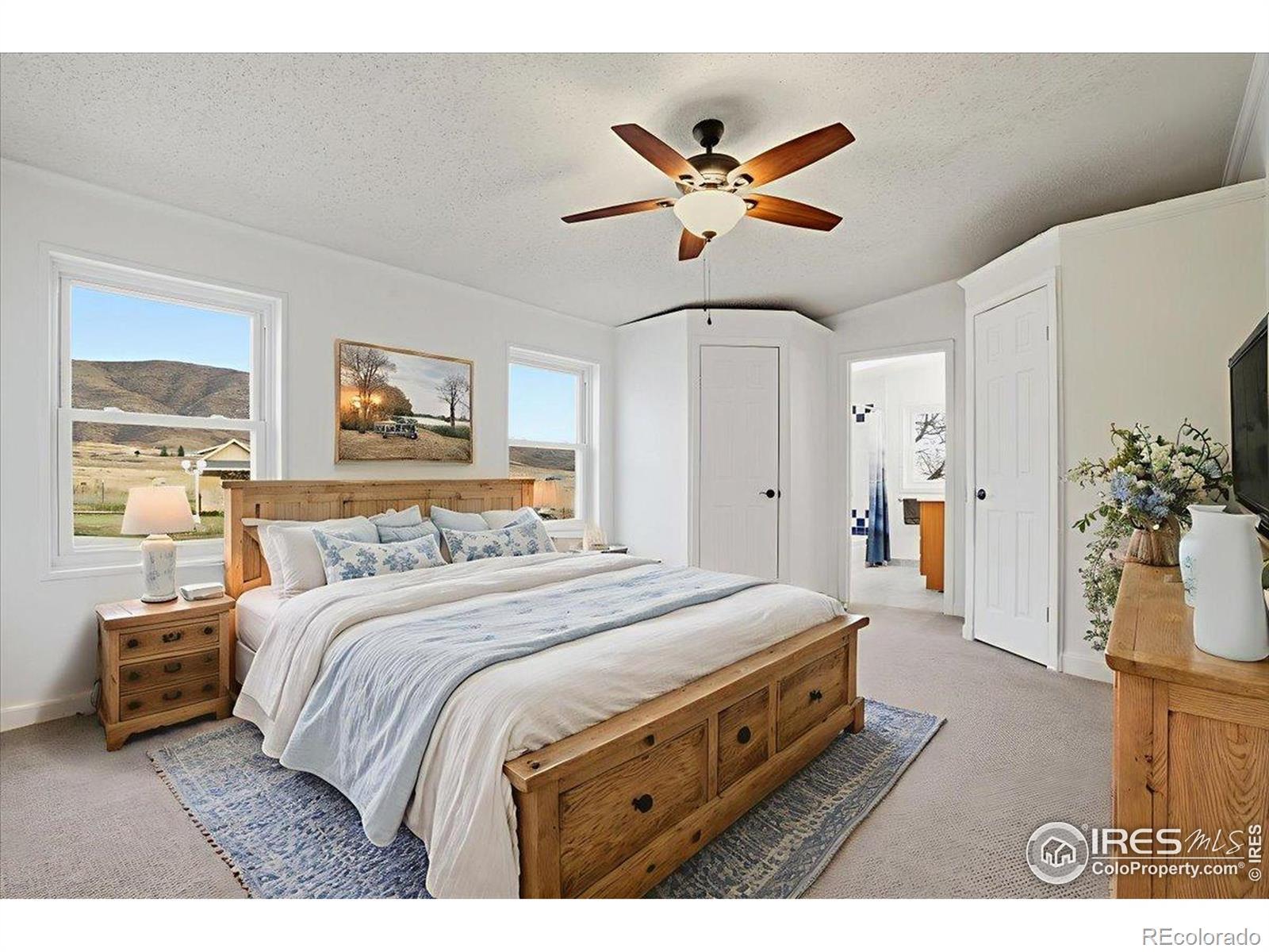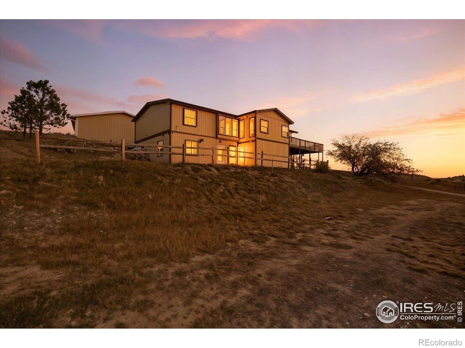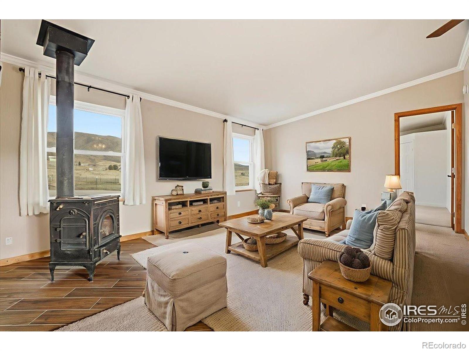 Discover the tranquility and freedom of true Colorado living at 7200 Hiding Elk Lane in Loveland. Set on 35 acres, this welcoming ranch home provides room to live, work, and enjoy the land-without the restrictions of an HOA. With views of the Devil's Backbone and mountains in every direction, this property offers a peaceful retreat while still providing convenient access to town amenities. Inside, the home features an updated kitchen, comfortable gathering areas, and practical main-floor living with a laundry room on both levels. The finished walk-out basement adds exceptional versatility, offering two separate exterior entrances-one into the main living area and one directly into the office. The layout and existing utility connections also allow for the potential to add a second kitchen, making it ideal for multi-generational living, guests, or expanded workspace options. The acreage is well-equipped for animals, recreation, and storage of equipment. A massive 104' x 30' detached 6-car garage with a heated shop provides extraordinary functionality. The property also includes loafing sheds with water, a tack shed, chicken coop, mower shed, sheep shed, and a brand new additional outbuilding with electricity-perfect as a personal retreat, studio, or hobby space. With open land, numerous outbuildings, and panoramic views, this is a rare opportunity to live the Colorado lifestyle.