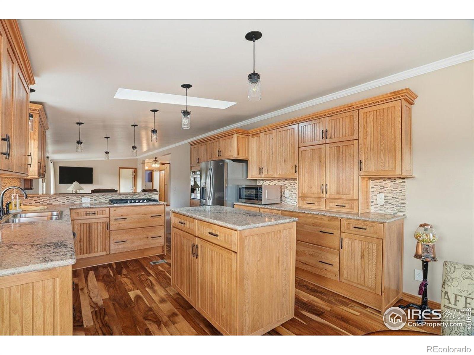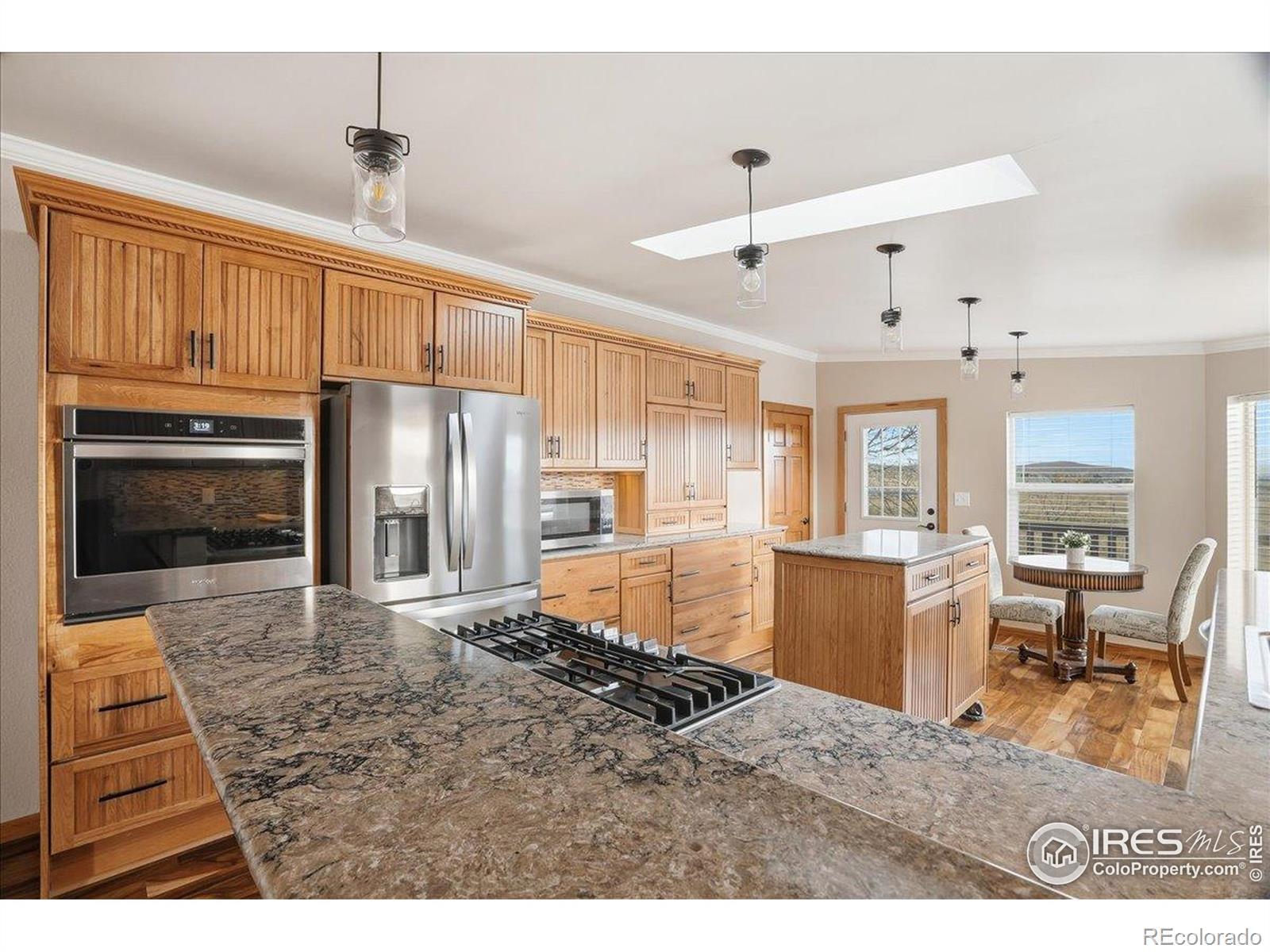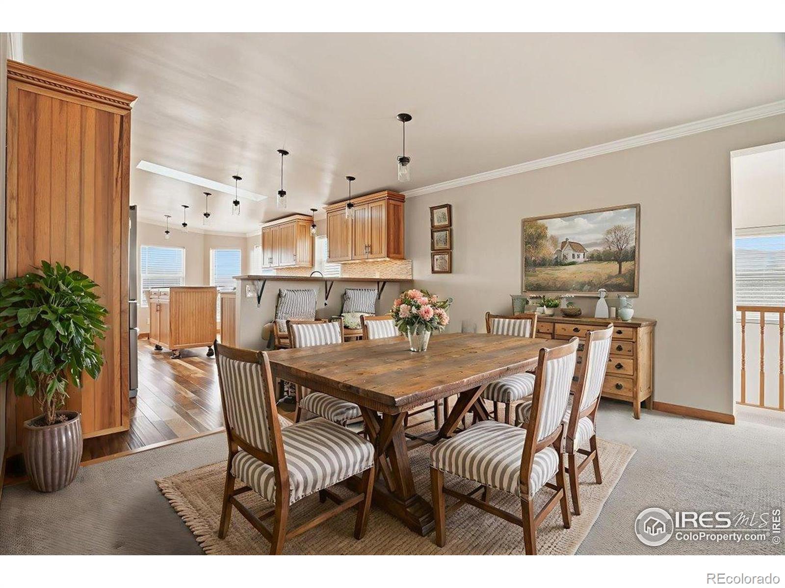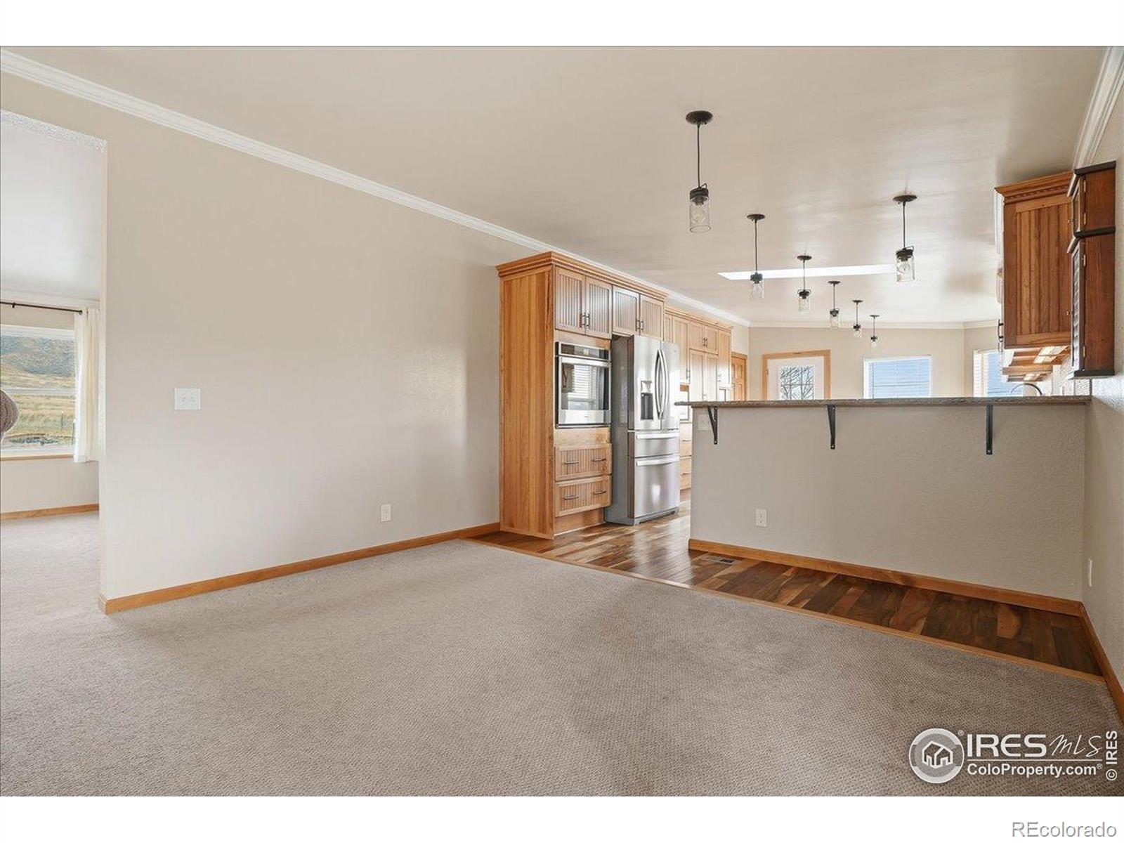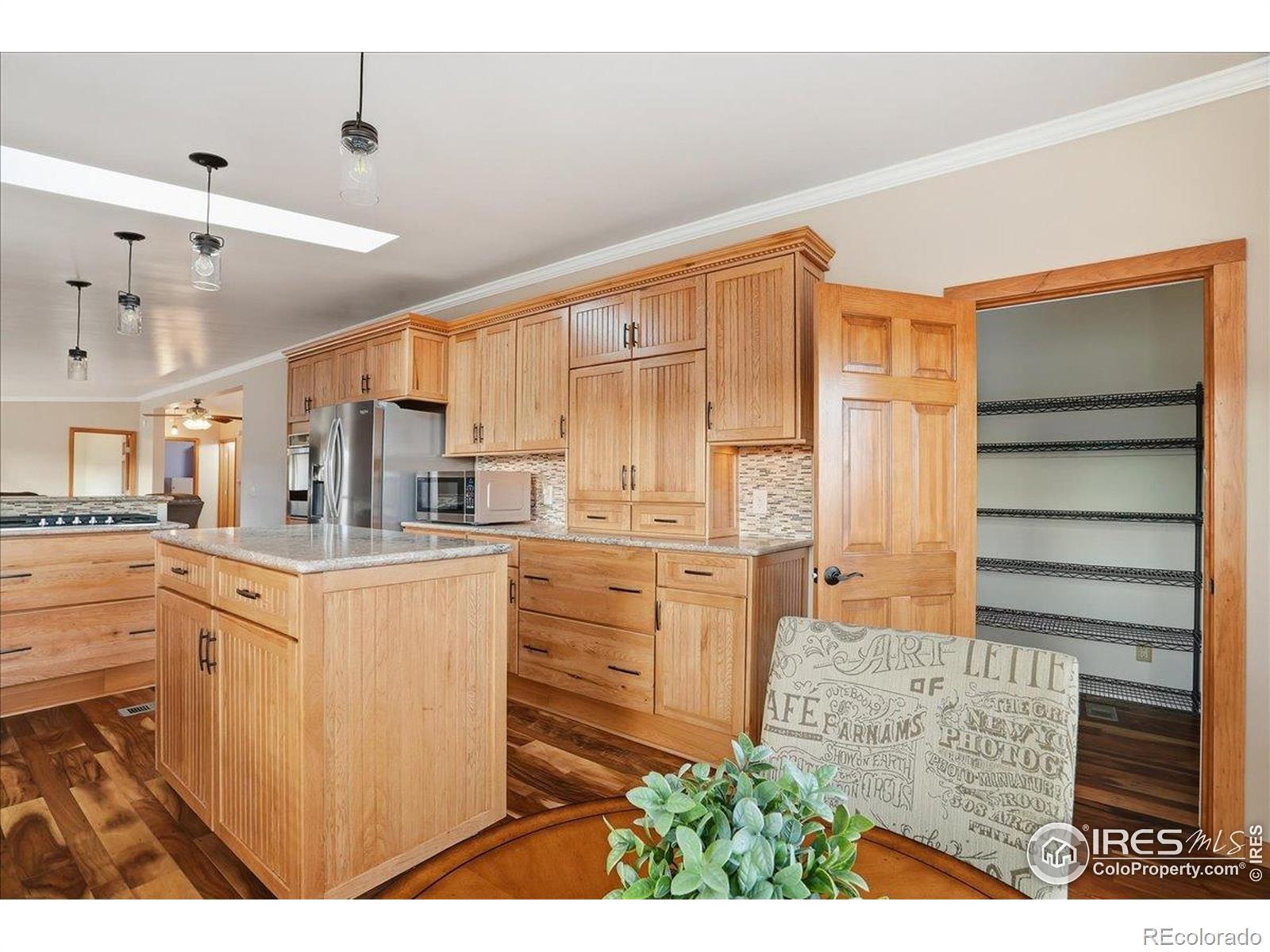 Discover the tranquility and freedom of true Colorado living at 7200 Hiding Elk Lane in Loveland. Set on 35 acres, this welcoming ranch home provides room to live, work, and enjoy the land-without the restrictions of an HOA. With views of the Devil's Backbone and mountains in every direction, this property offers a peaceful retreat while still providing convenient access to town amenities. Inside, the home features an updated kitchen, comfortable gathering areas, and practical main-floor living with a laundry room on both levels. The finished walk-out basement adds exceptional versatility, offering two separate exterior entrances-one into the main living area and one directly into the office. The layout and existing utility connections also allow for the potential to add a second kitchen, making it ideal for multi-generational living, guests, or expanded workspace options. The acreage is well-equipped for animals, recreation, and storage of equipment. A massive 104' x 30' detached 6-car garage with a heated shop provides extraordinary functionality. The property also includes loafing sheds with water, a tack shed, chicken coop, mower shed, sheep shed, and a brand new additional outbuilding with electricity-perfect as a personal retreat, studio, or hobby space. With open land, numerous outbuildings, and panoramic views, this is a rare opportunity to live the Colorado lifestyle.