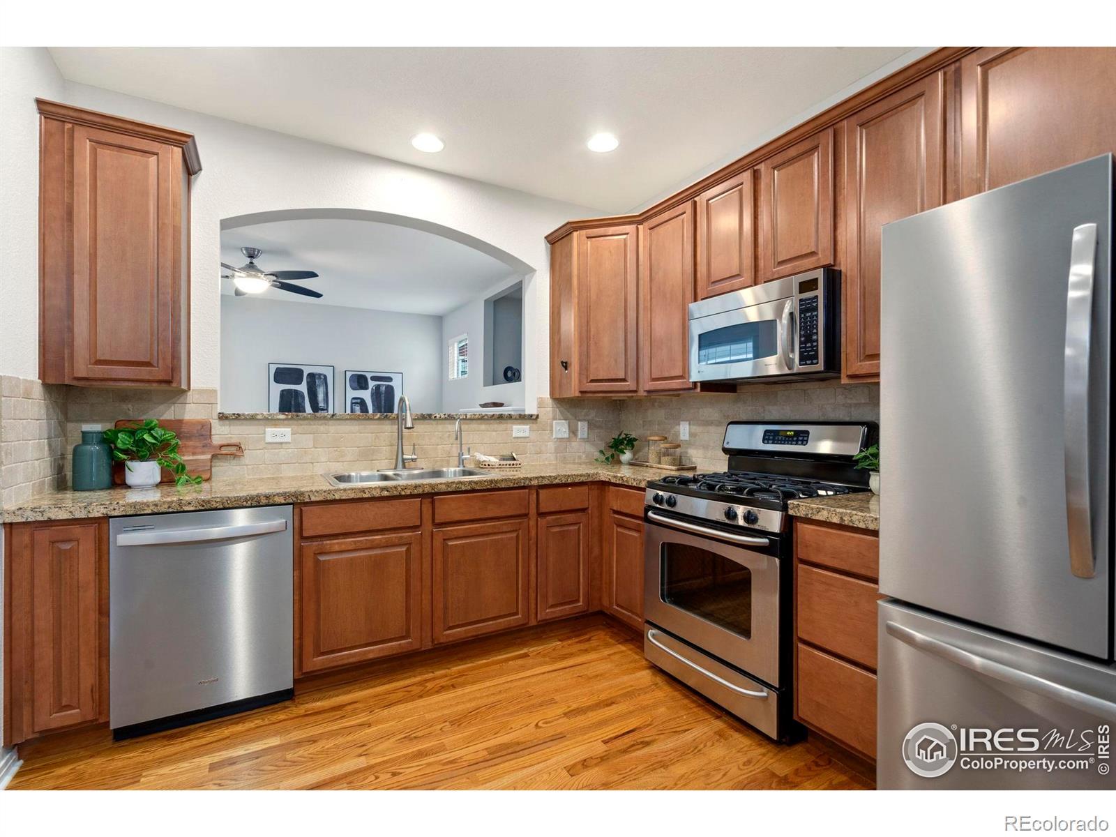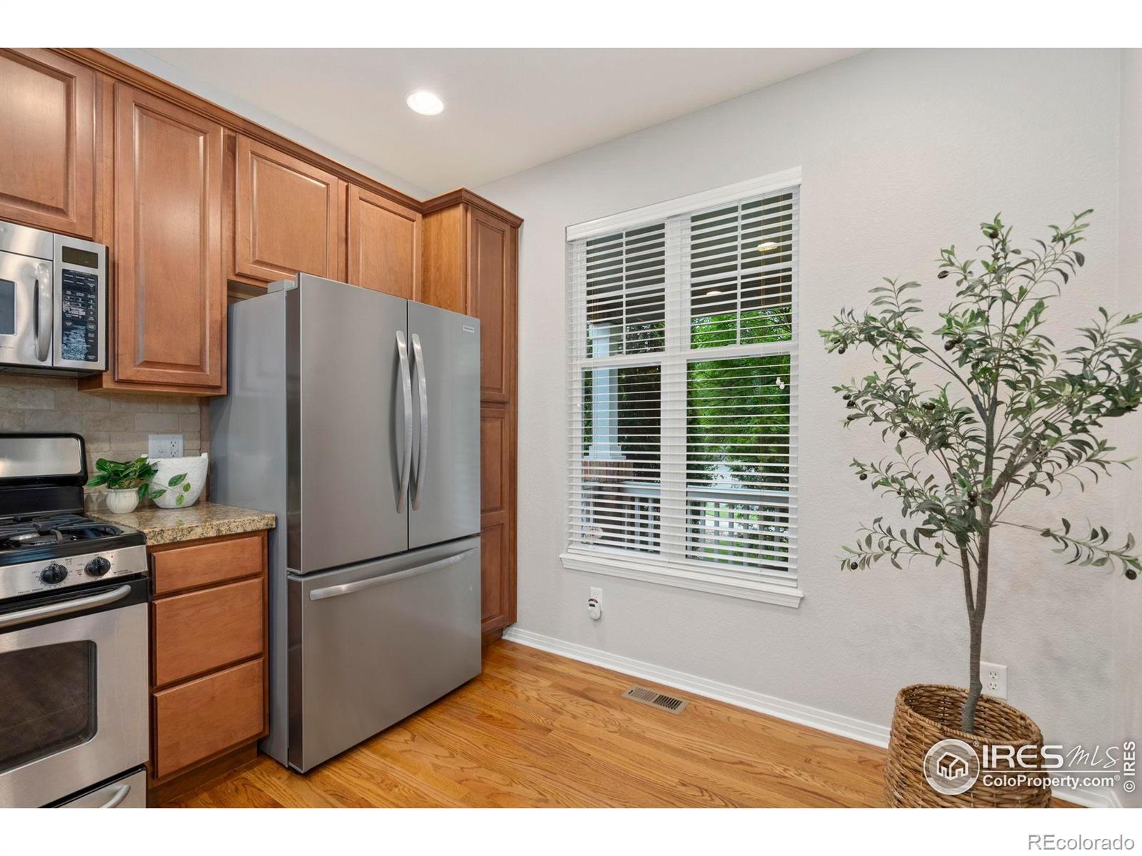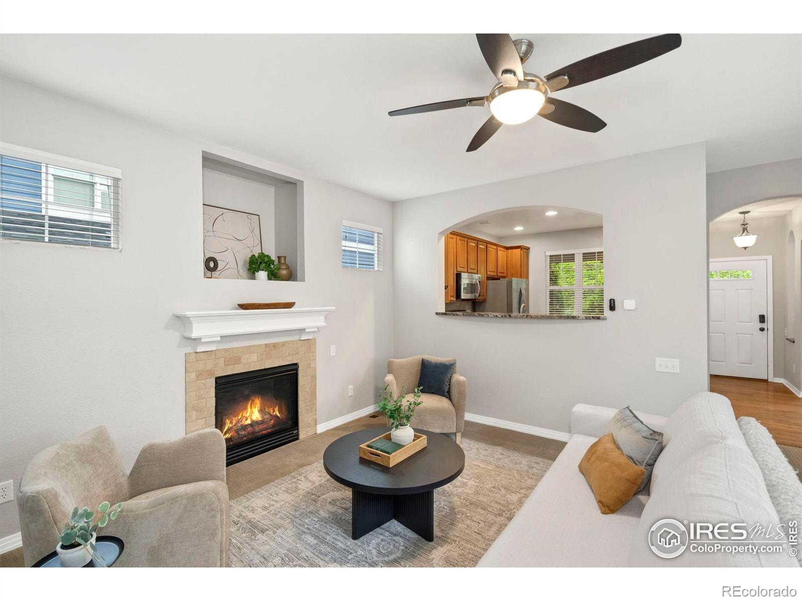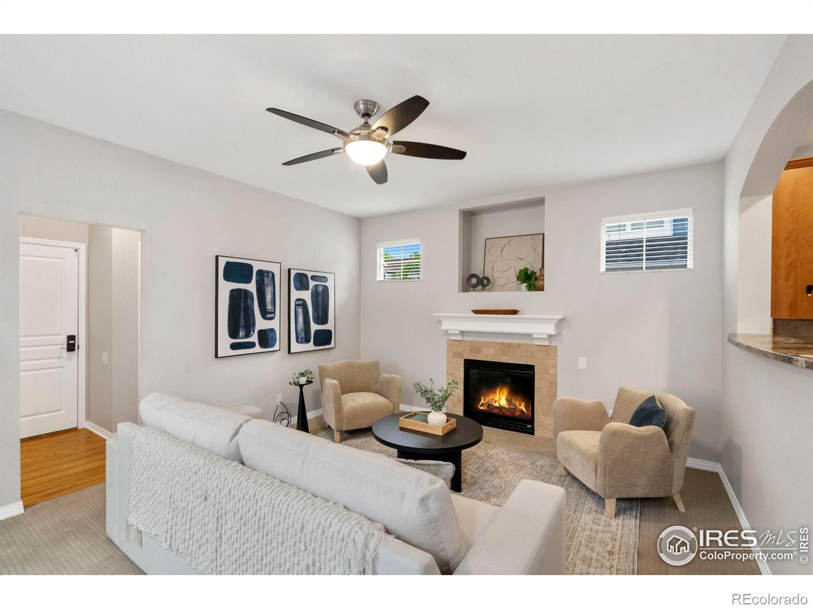 Don't miss out on this beautifully maintained home nestled in the sought-after Harvest Park neighborhood of Fort Collins. This charming two-story residence offers 3 bedrooms, 2.5 bathrooms, and over 2,100 square feet of comfortable living space. Inside, you'll find a warm and inviting living room with a cozy fireplace, hardwood floors throughout the main level, and a modern kitchen outfitted with stainless steel appliances and a gas range. The spacious primary suite includes a walk-in closet and a luxurious en-suite bathroom with a soaking tub. Two additional bedrooms provide flexibility for family, guests, or a home office. The home also features an attached two-car garage and a private, fenced yard. Located just steps away from community amenities including a pool, clubhouse, playground, and scenic trails, this property combines convenience and lifestyle. With close proximity to top-rated schools in the Poudre School District and easy access to shopping, dining, and medical facilities, this home is a perfect blend of comfort, style, and location.