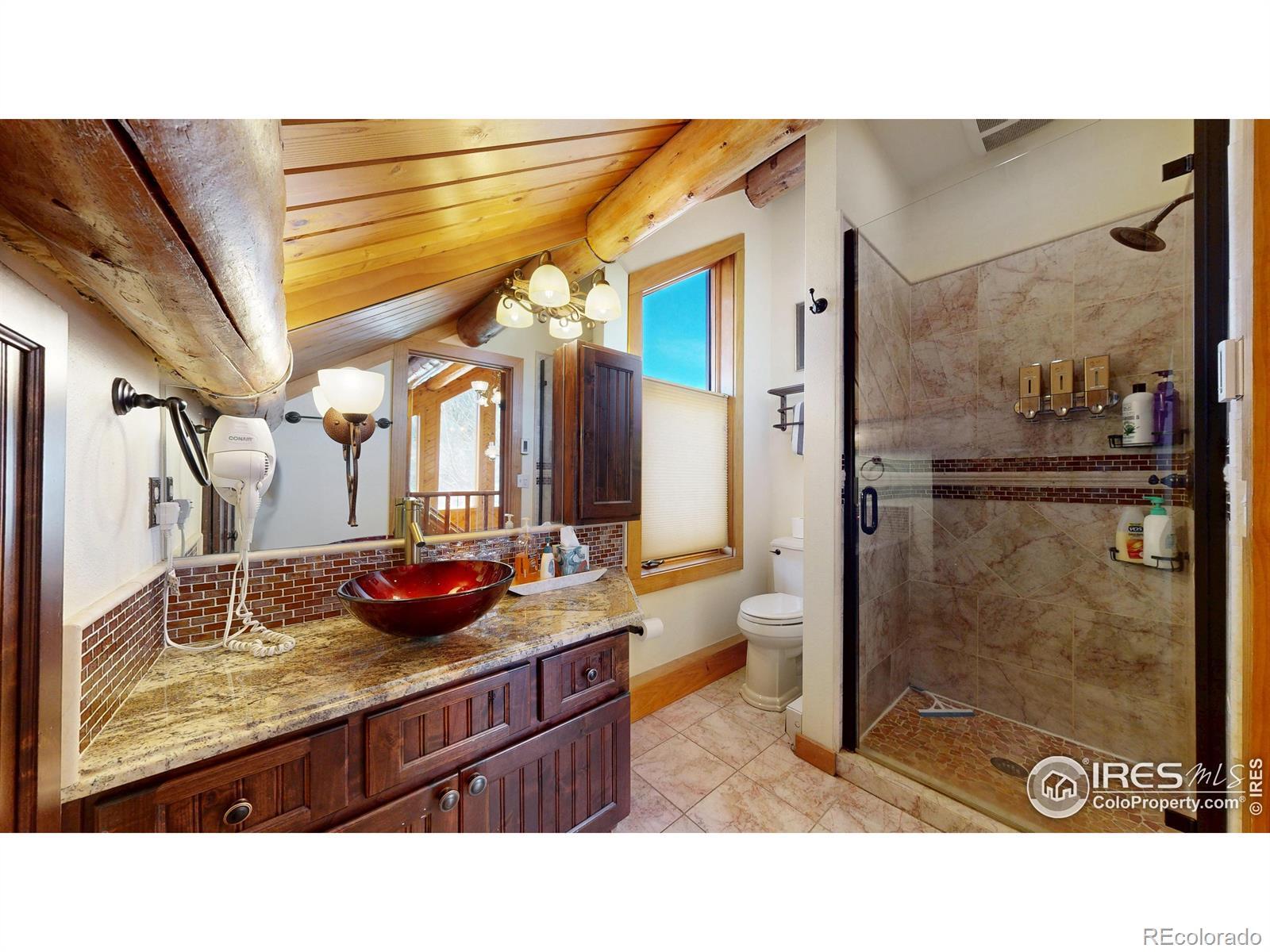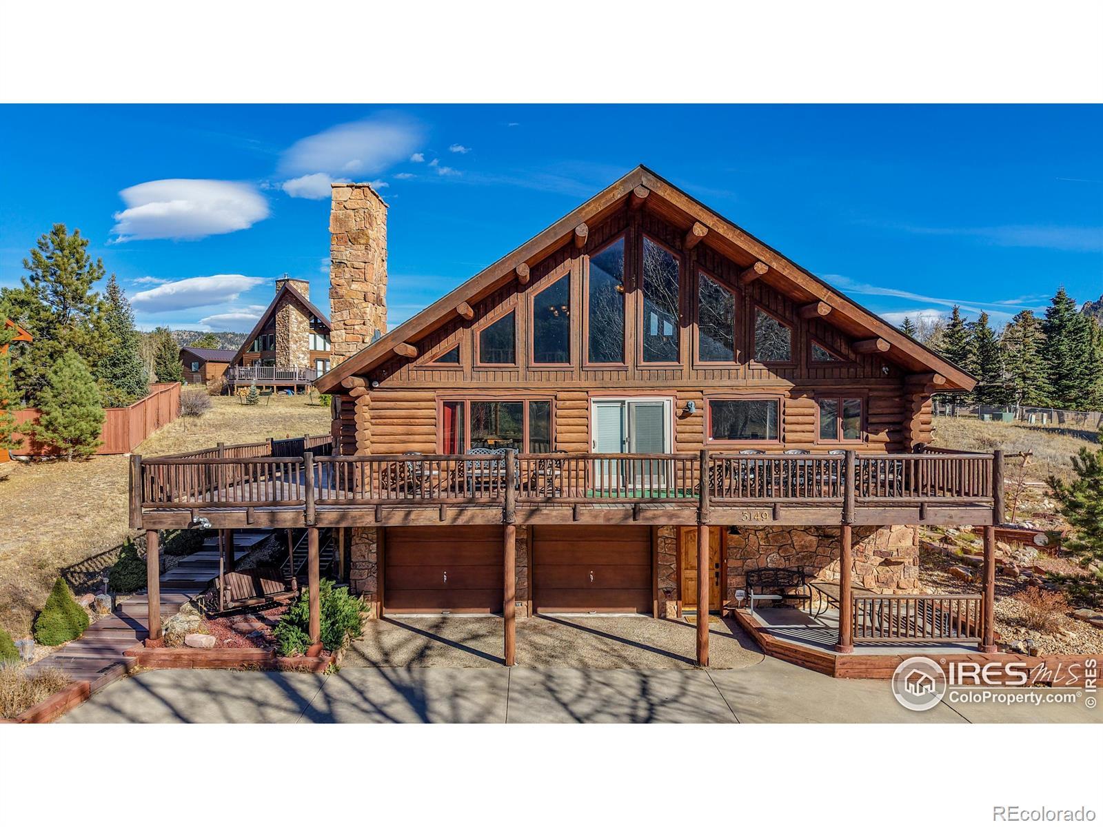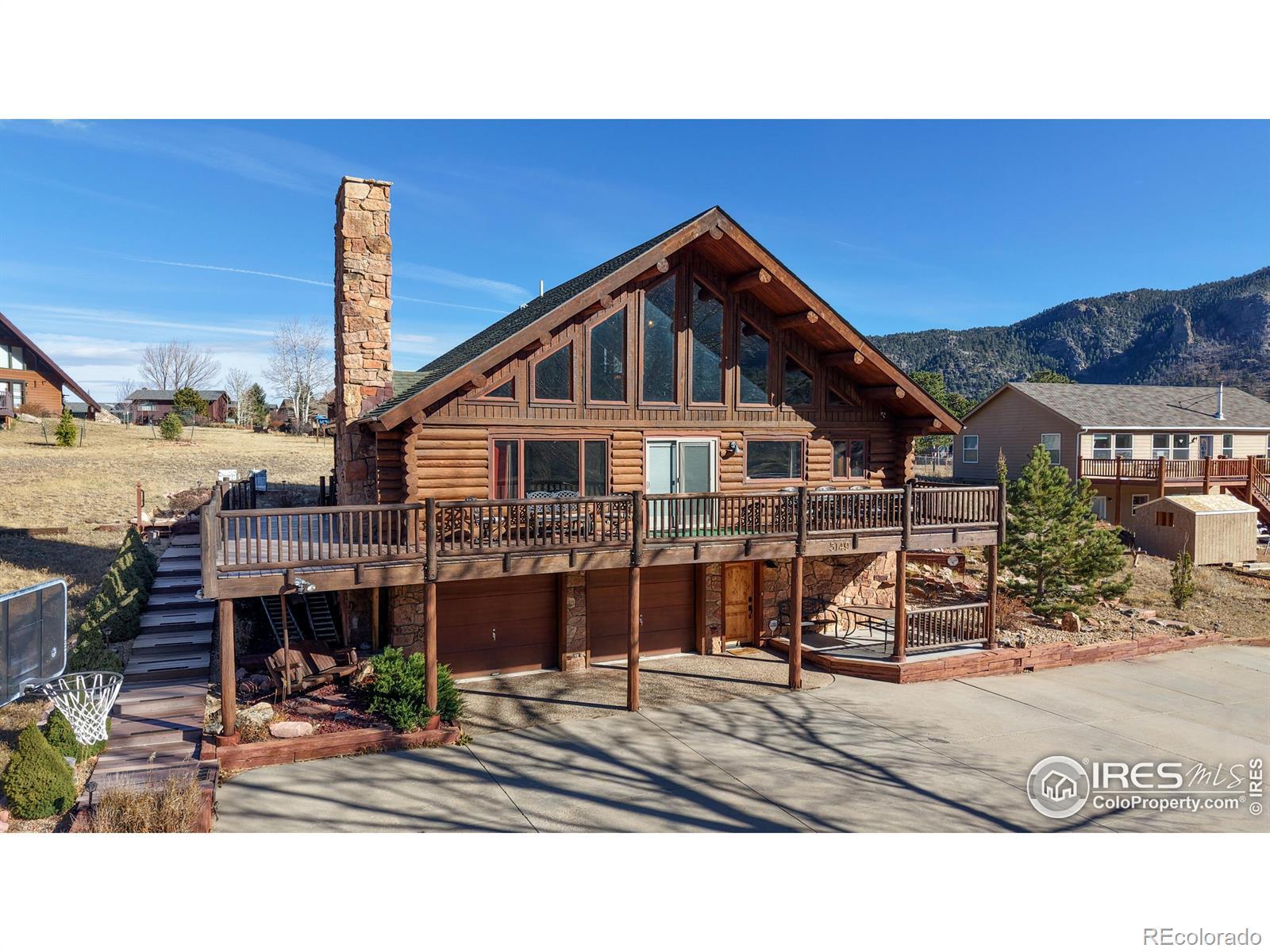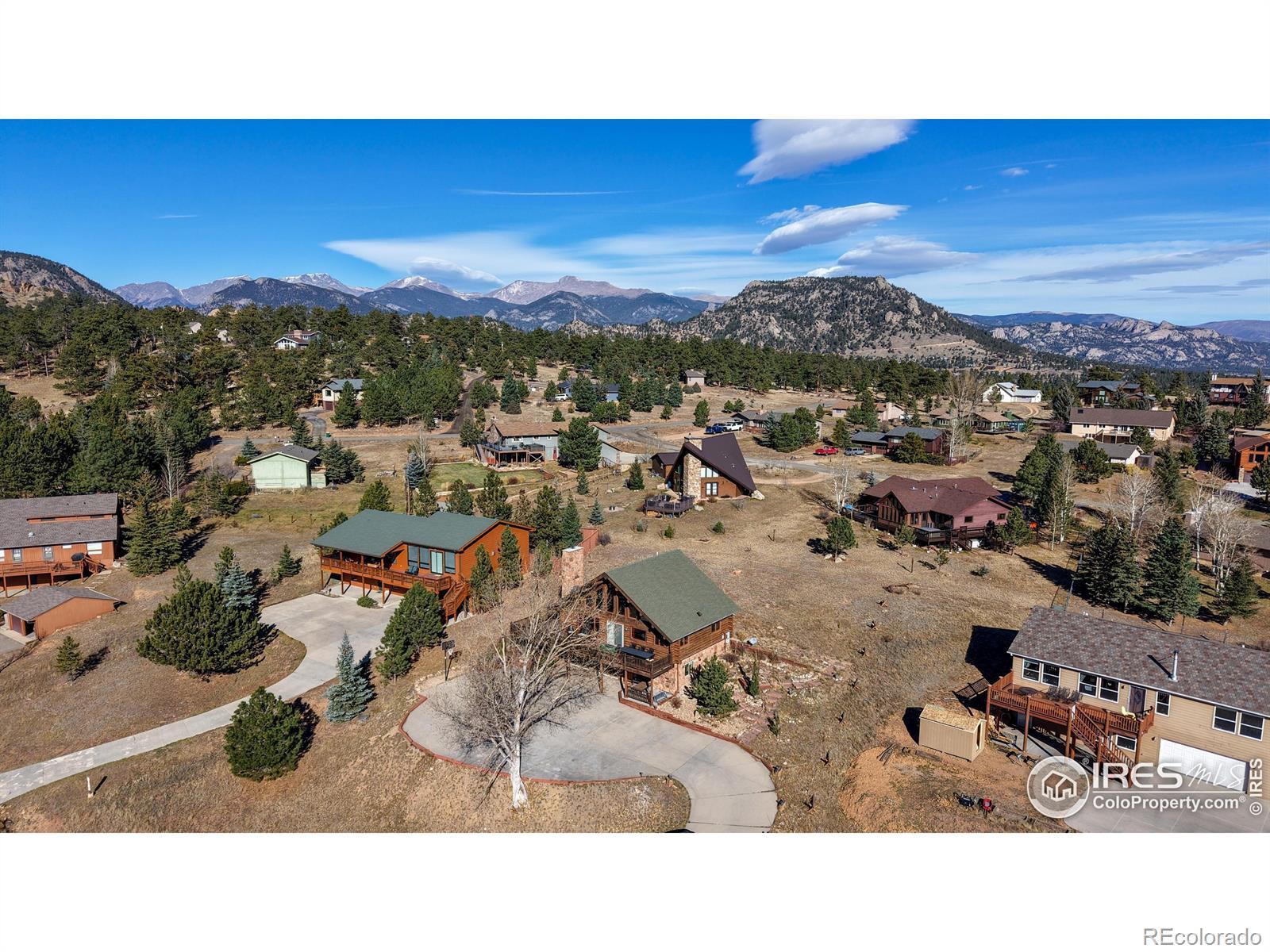Large Home with Vacation Rental Permit, the one you've been waiting for. Manage it yourself or hire it done. Enjoy sweeping views of Twin Sisters, Never Summer Ranch, and Longs Peak from this stunning full log home in the desirable Carriage Hills neighborhood along Fish Creek Road. This 3-bedroom, 3-bath mountain retreat pairs high-end finishes with the timeless character of log construction, making it ideal as a full-time residence, a second home, or a smart investment property. Warm log interiors, an open floor plan, and abundant natural light create an inviting atmosphere perfect for entertaining or relaxing by the creek. Ascend to the spectacular loft where large, expansive windows frame a breathtaking panorama of the surrounding mountains. This elevated space is perfect for a home office, inspiring studio, or cozy reading nook, offering a daily reminder of the serene beauty of Estes Park. Currently used as additional sleeping space, it features a walk-in closet, its own bathroom, and an egress window. Step outside to the spacious wrap-around deck that connects the front and side of the home, an outdoor haven ideal for family dining, stargazing under clear night skies, and peaceful wildlife watching with elk and deer often passing through the property. Perfectly situated just moments from the entrance to Rocky Mountain National Park and a short drive to downtown Estes Park's dining, shops, and seasonal festivals, this beautiful home captures the best of Colorado mountain living, blending rustic charm with modern comfort in one of Estes Park's most sought-after neighborhoods.