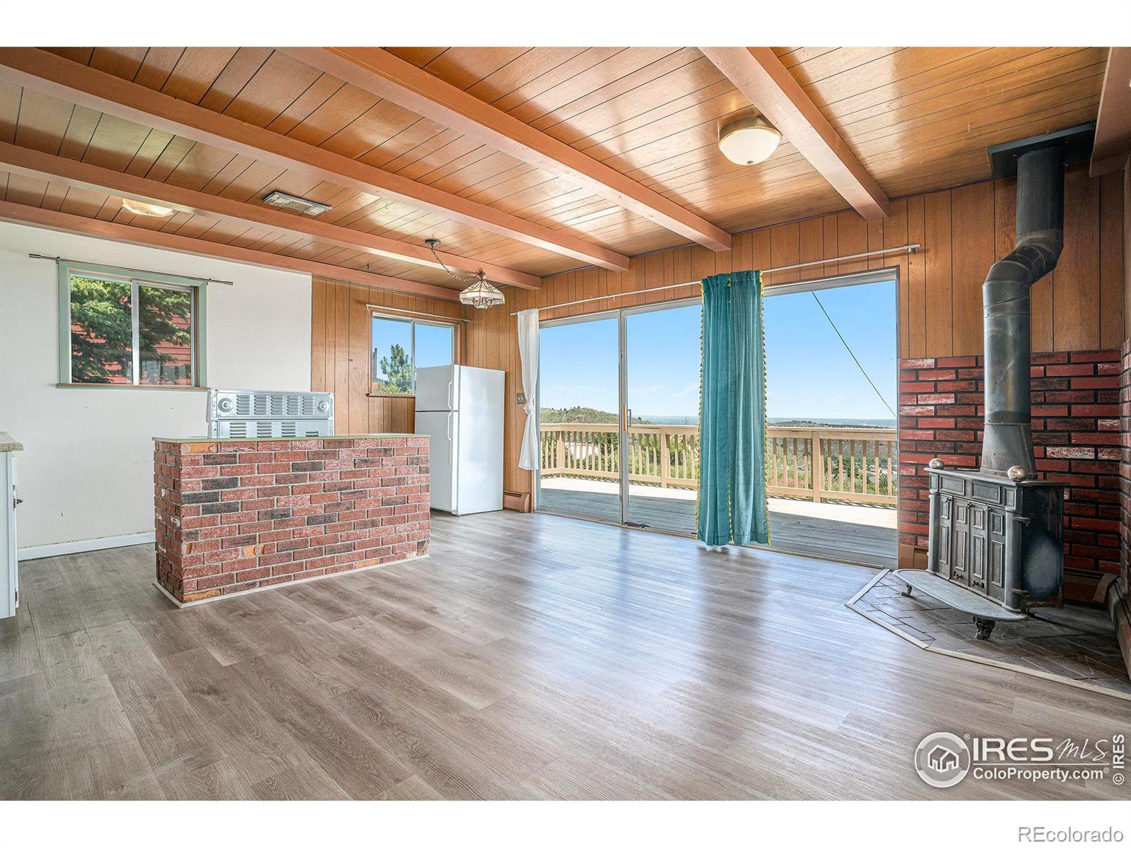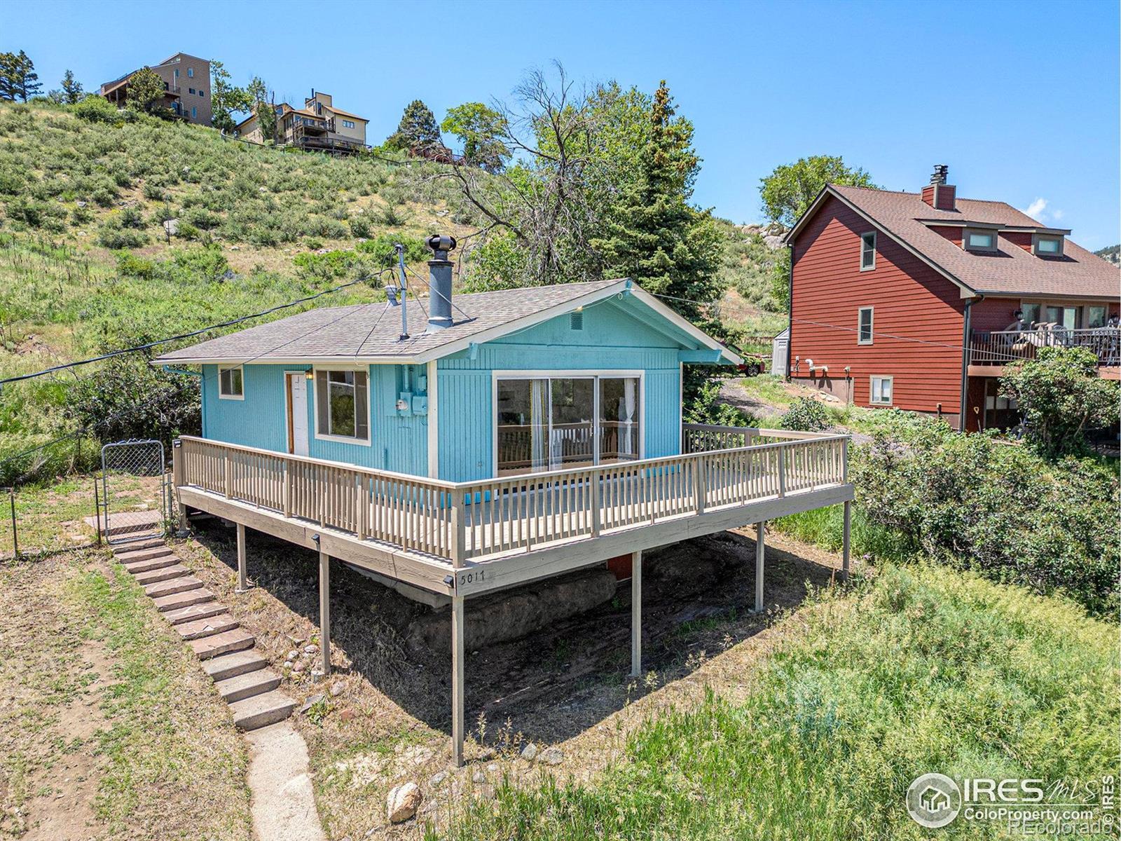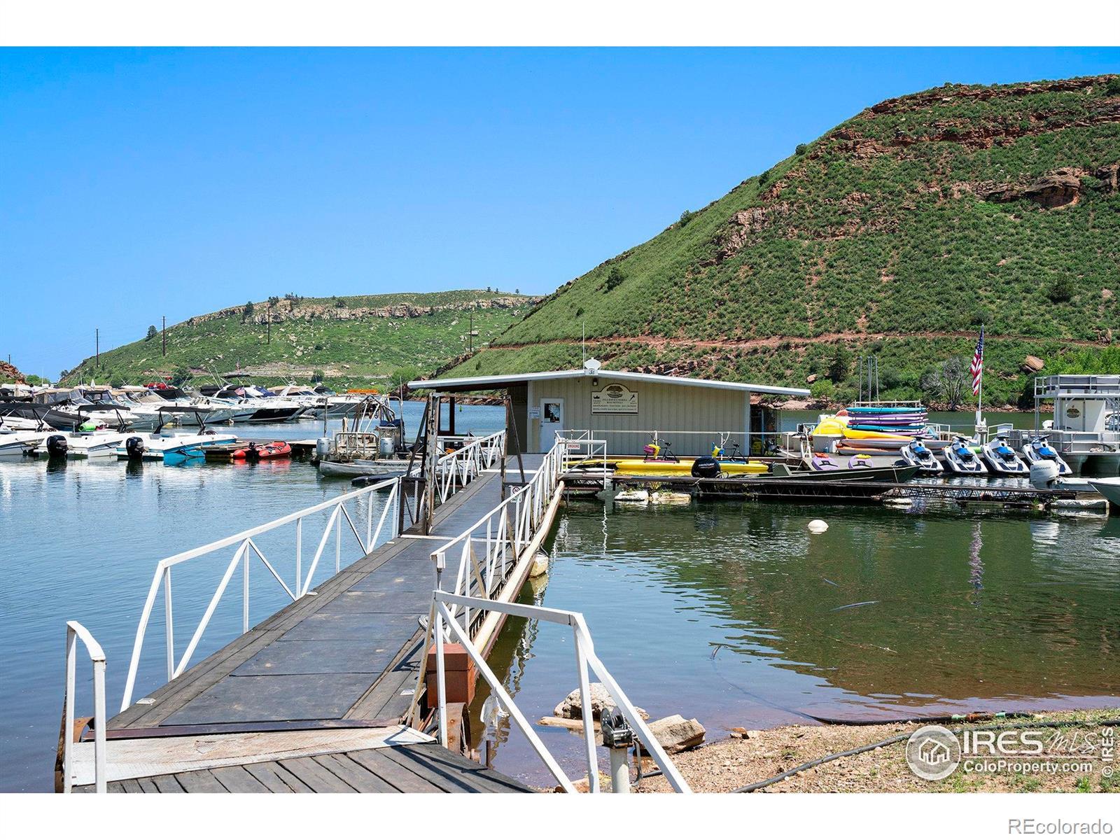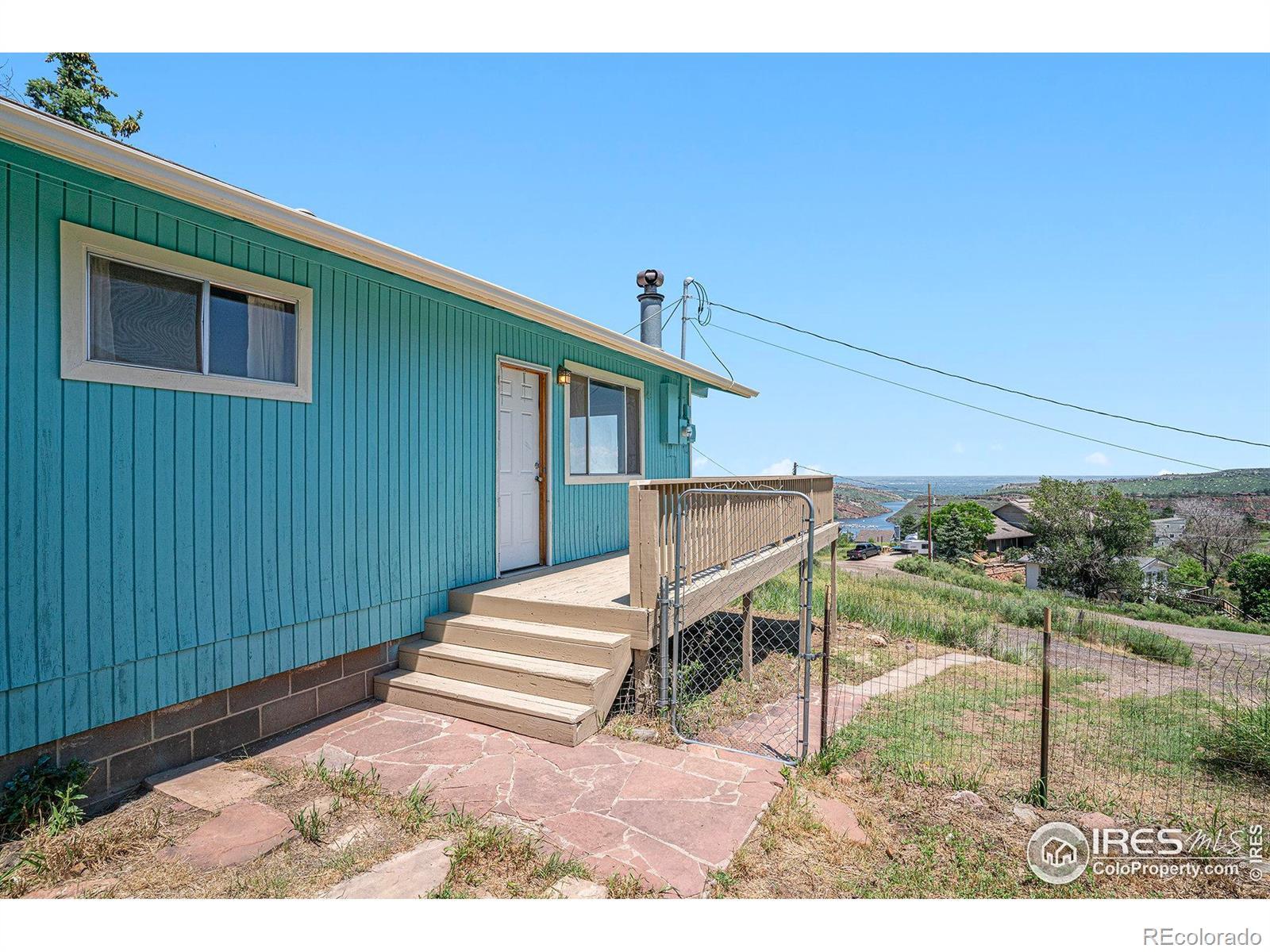 Experience mountain living with stunning views of Horsetooth Reservoir! This 1-bedroom home features an open floor plan and a large deck - perfect for soaking in peaceful mountain and lake views year round. The exterior and deck where painted/ stained just prior to listing for sale and the interior offers great potential to customize to your style. Bedroom is cozy in size but could be reconfigured into a spacious primary suite if desired. Second room is perfect for a small office or non-conforming.