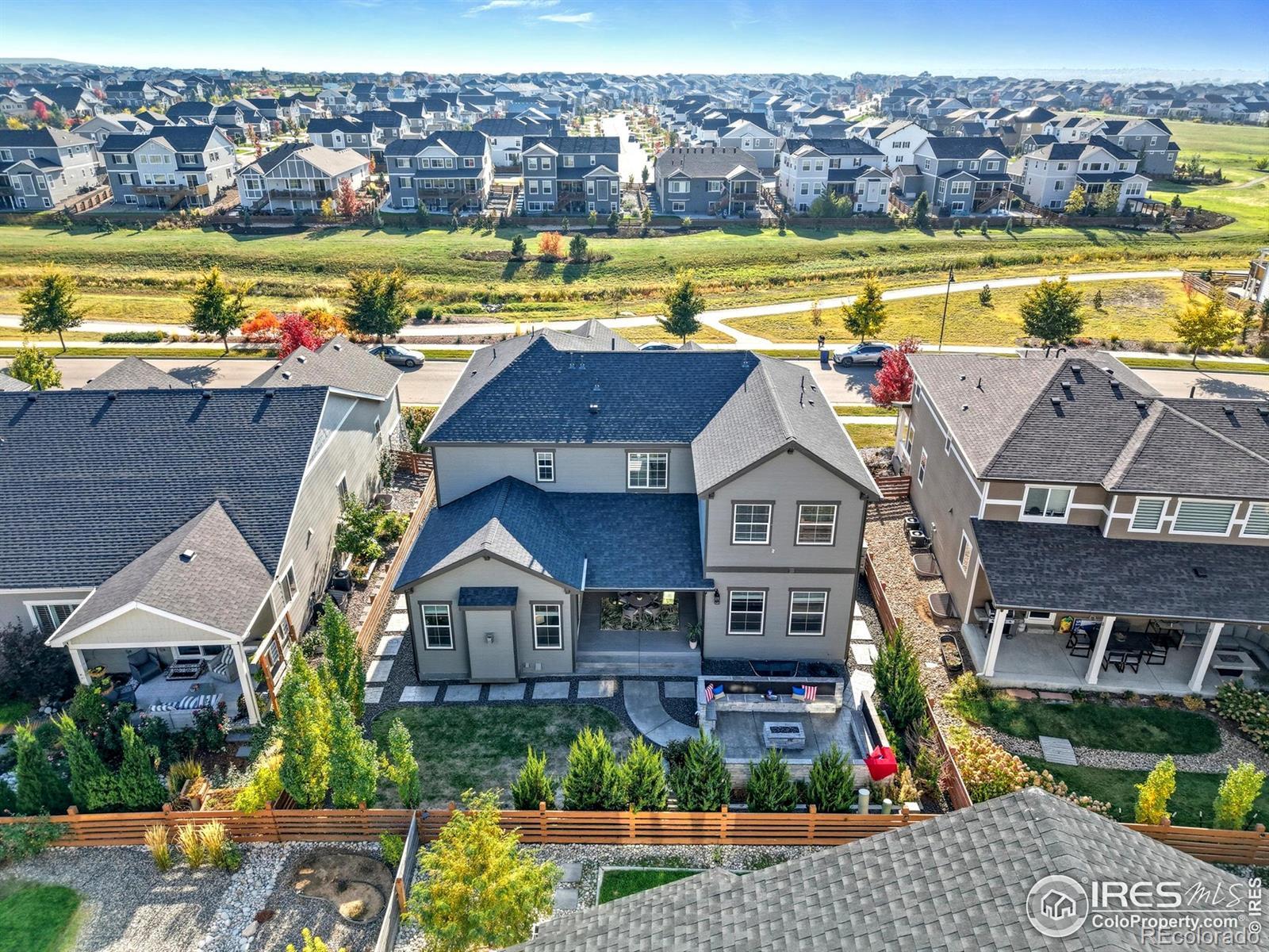 **Two promotions if you close before the end of the year!!** 4 pack of tickets 2nd row center ice at a Colorado Avalanche game in January PLUS, front & back yard landscaping design services from an award-winning landscape designer!! Over 150K of upgrades already done for you - permanent outdoor lighting, gas firepit and seating area, window coverings, finished basement with wet bar, gourmet kitchen and even stylish trash can storage! Welcome to Colliers Hill living at its best, where space, style, and sunsets are all included. This better-than-new home delivers 6 bedrooms, 6 baths, and all the flexibility you could need. The open-concept kitchen is a showstopper, with an oversized island, generous pantry, and enough counter space for both cooking marathons and casual gatherings. Two three-panel sliding doors open to the large covered patio, blending indoor and outdoor living perfectly. The backyard is equally impressive, featuring a custom firepit area and built-in Jellyfish lighting that makes every evening feel like an event. Add in the mountain views and open-space setting, and it's hard to imagine a better backdrop. On the main floor, you'll also find a dedicated office plus a guest suite, while the upstairs offers a roomy loft plus four bedrooms, including a luxurious primary suite with luxury shower and dual vanities. The finished basement is ready for entertaining with a wet bar, another guest suite, and space for movie nights, workouts, or game day. Best of all, you're just down the street from the new Colliers Hill clubhouse and pool, within walking distance to Soaring Heights PK-8 and Erie High Schools, and surrounded by miles of neighborhood trails and parks. It's the perfect mix of convenience, comfort, and community all wrapped up in one stunning home.