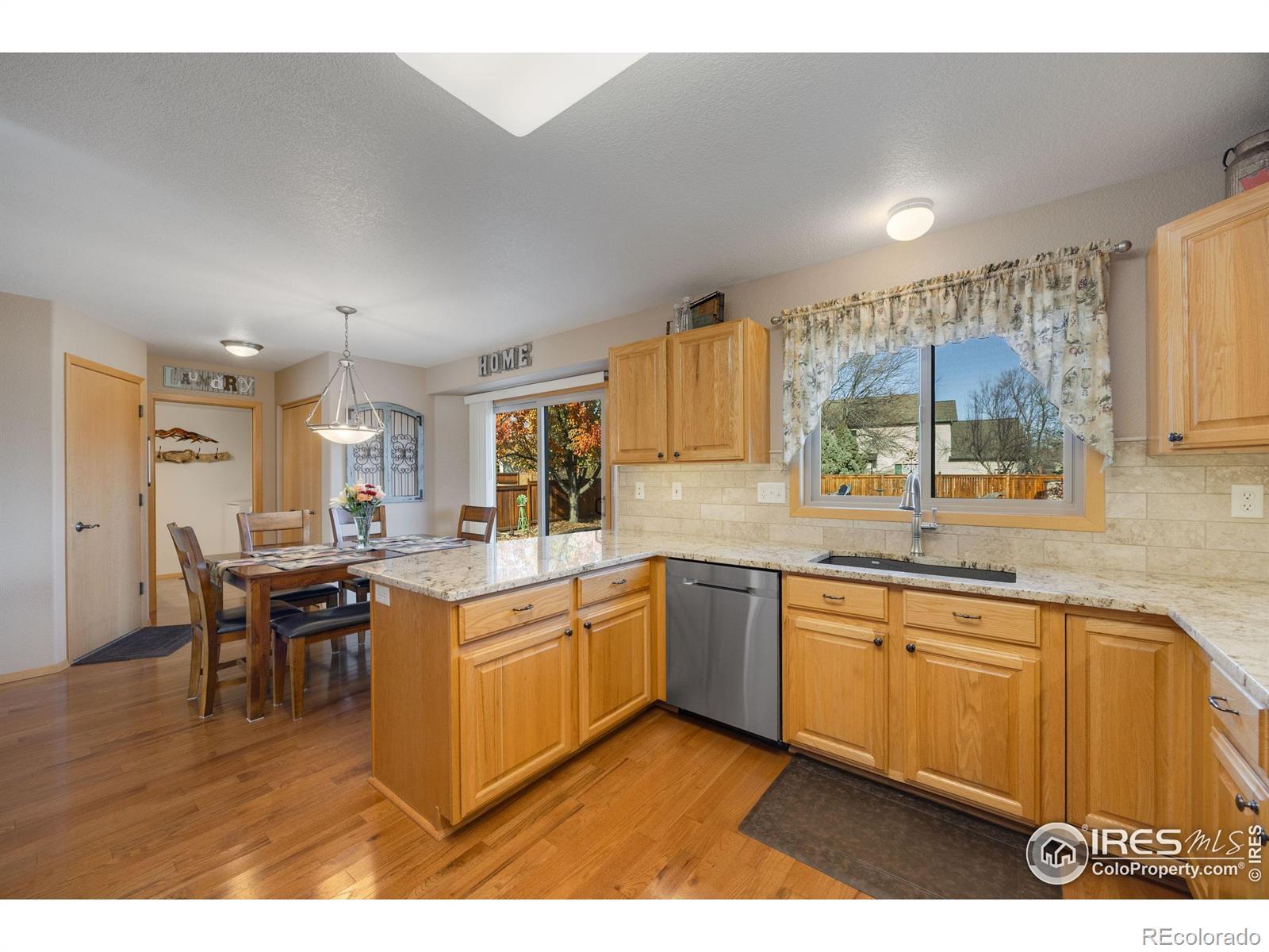 WOW!!! Looking for a 3-bed single-family home in Fort Collins with move-in-ready upgrades and solar? Welcome to 1514 Westfield Dr in Mountain Ridge Farm, where modern updates meet an UNBEATABLE LOCATION across from Westfield Pool, Park, and Playground. Built in 2003 and thoughtfully improved, this home offers 1,361 finished sq ft above grade plus a 714 sq ft unfinished basement ready for your vision. The upgraded kitchen features raised panel cabinets, granite slab countertops, tile backsplash, and hardwood flooring that flows through the main level. Bathrooms have been completely refreshed with new tile, granite counters, faucets, tubs, and toilets. Energy efficiency shines and keeps your bills low, with paid-off solar panels, a tankless hot water heater, new windows and doors. Upgrades continue with fresh exterior paint, and gutter guards. The oversized two-car garage includes an extra-deep bay-perfect for a workshop, storage, or a long vehicle. Set on a .16-acre lot, with a gorgeous backyard just waiting for your to host parties in, this home sits directly across from Westfield Park and Pool (POOL MEMBERSHIP INCLUDED), with Johnson Elementary and Webber Middle School just down the street and easy access to Horsetooth Reservoir, shopping, and dining. Priced at $625,000 with annual taxes of $3,346, and energy efficient upgrades, this home blends comfort, location, and value in one budget-friendly package.