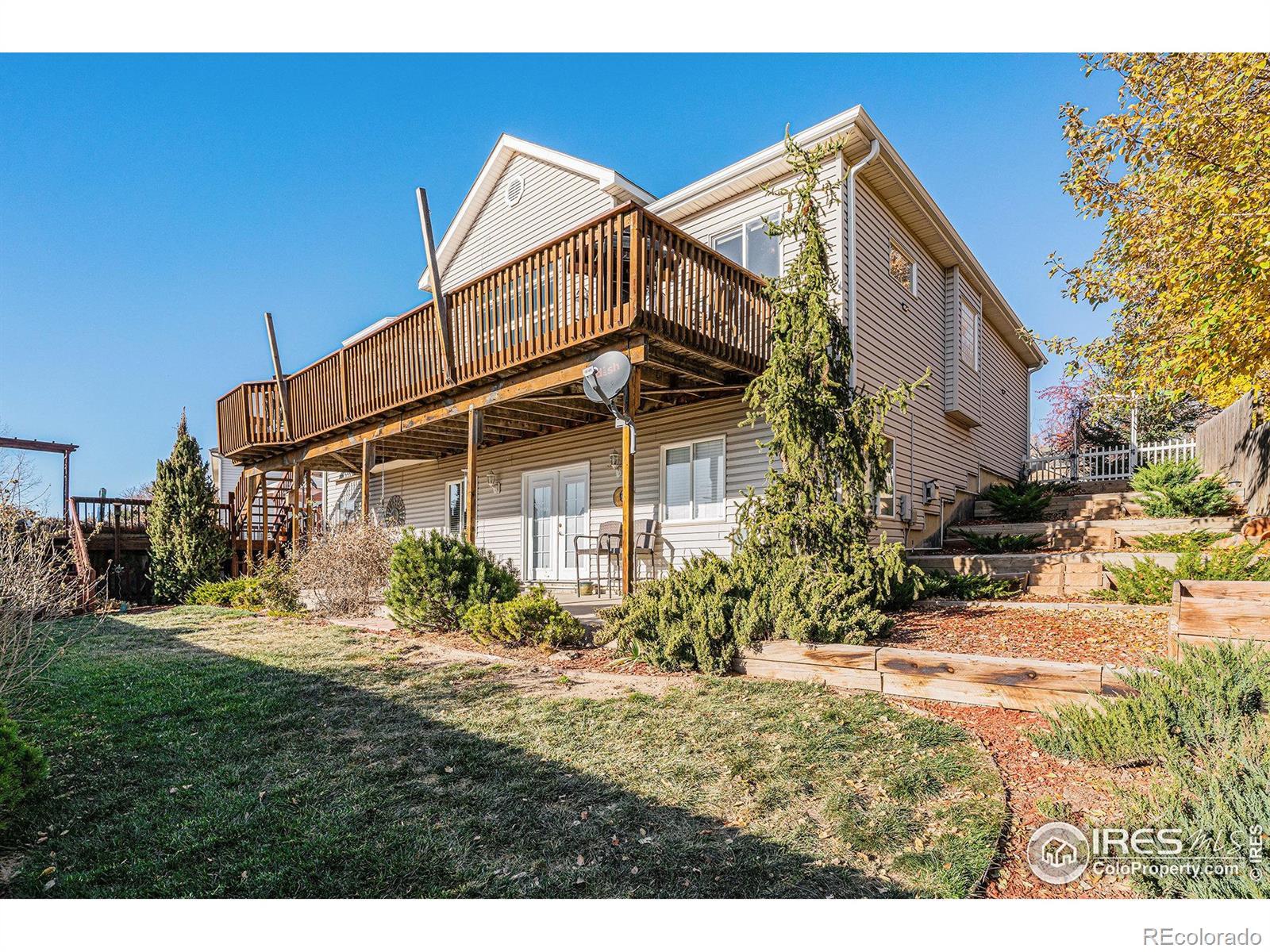 Enjoy breathtaking South and West MOUNTAIN VIEWS from this quality home on a LARGE LOT with NO HOA and an oversized 3-CAR GARAGE with RV PARKING! The main level boasts 12-foot ceilings, beautiful Acai wood floors, and south-facing windows with 3M film that brings in natural light while reducing heat. The eat-in kitchen is a chef's dream with granite countertops, stainless steel appliances, slate floors, granite backsplash, and two pantries for exceptional storage. A cozy multi-sided fireplace connects the living room to the formal dining area, which features a two-toned cove ceiling and a convenient bar area - and the bar stays with the home! The Owner's suite offers private deck access, a spacious walk-in closet, jetted tub, and custom pleated sheer blinds that allow light in while maintaining privacy. The large, bright laundry room features great views, a utility sink, and slate trim. The basement offers 10-foot ceilings, a bedroom with a huge walk-in closet, a large family room with a gas fireplace, and a spacious heated storage area. There's plenty of room for entertaining - the pool table/ping-pong combination stays! French doors and big windows open to the walk-out patio. Step outside to the expansive main-level deck leading to the 24' above-ground Copper Canyon pool with a surrounding deck and gazebo. Enjoy spectacular 4th of July Fireworks from your back deck! A new outdoor canvas gazebo cover has been purchased and will be included, and the large aqua wind sail on the upper deck also stays. With no HOA, extra parking space, and an oversized 3-car garage (over 1,000 sq. ft.), this property checks all the boxes. Recent updates include a newer air conditioner, furnace humidifier, and a 3-year-old pool liner. Ideal location near Highway 34 and Centerplace Mall with easy access to restaurants, banking, and major retailers - truly location, location, location!