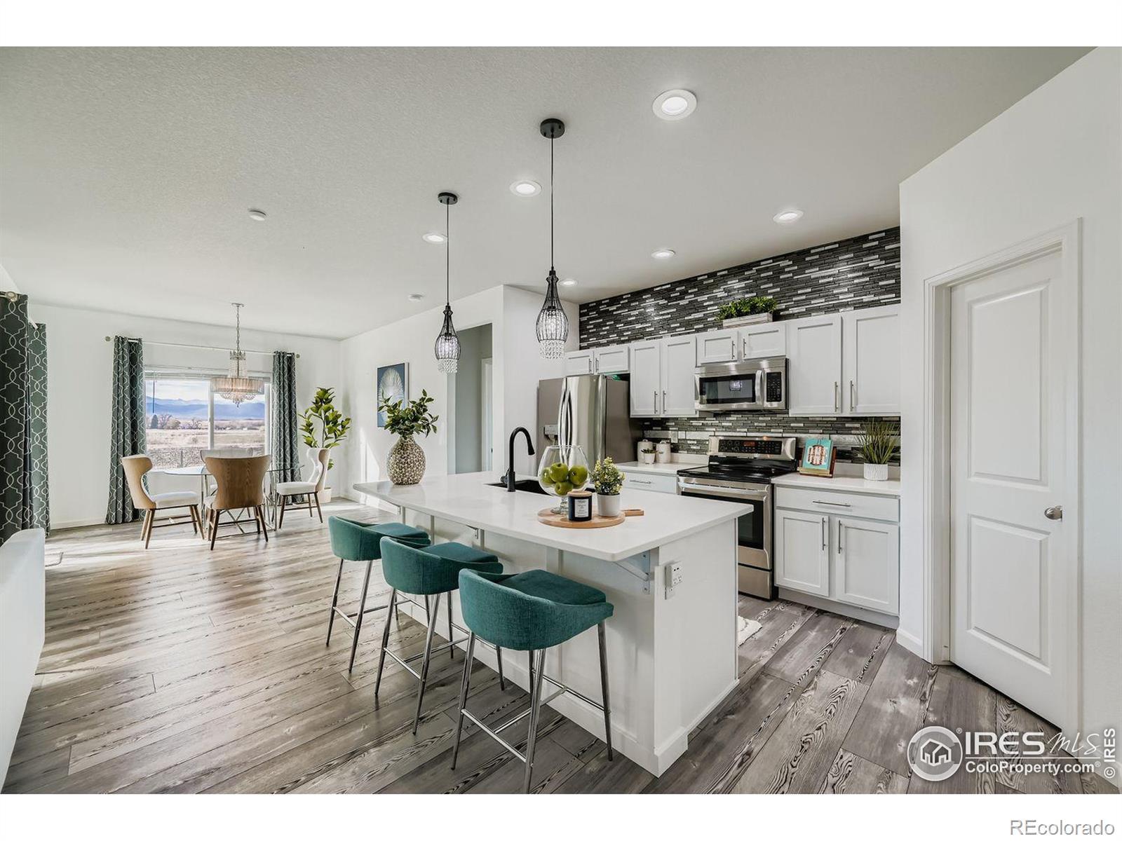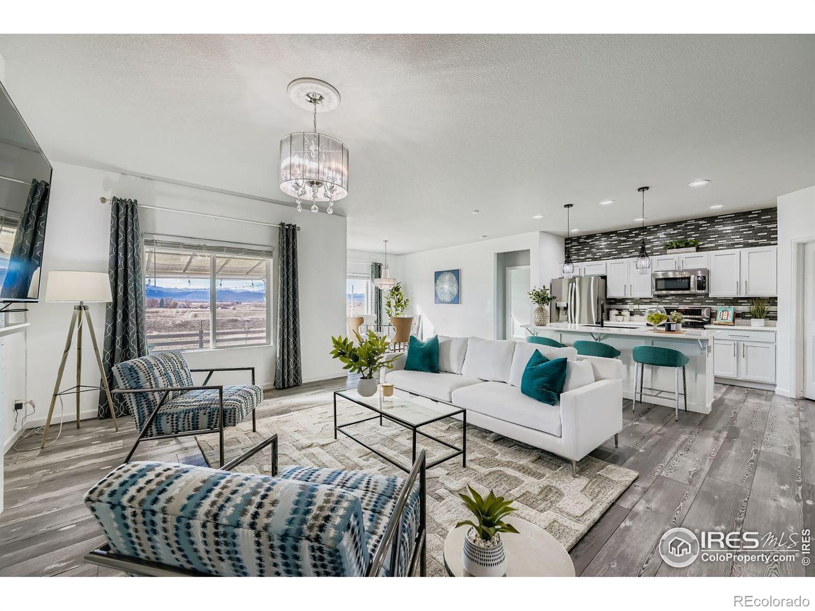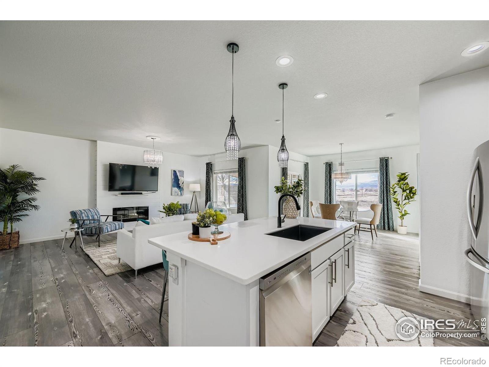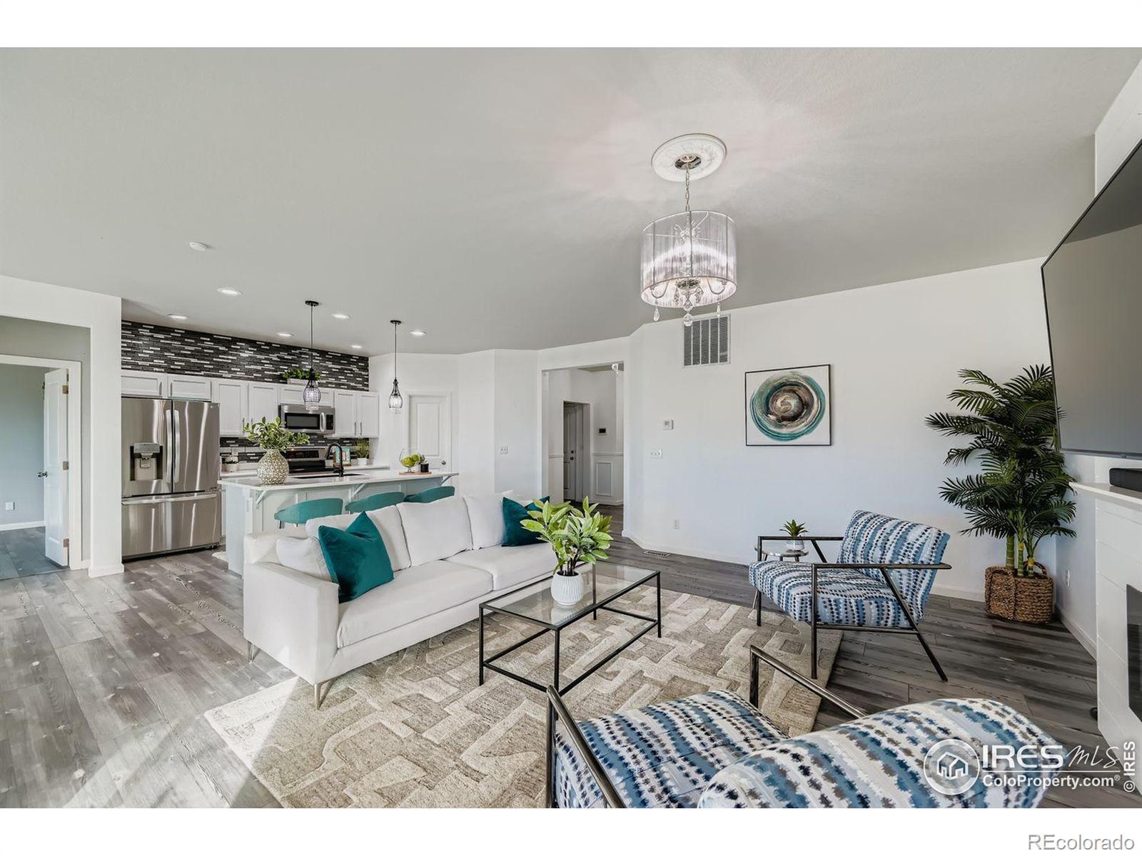 Have you been dreaming of magical front range mountain sunrises and sunsets? This immaculate single level home is bright, modern and as well cared for as they come! With one of the best prices on a single level home in the area, this is a must see! The fantastic open floor plan is spacious with sleek laminate flooring, upgraded surfaces and tile upgrades throughout. Enjoy the views from any of the windows in the main area living spaces or from the large primary bedroom complete with a large bathroom suite and kind of the closet dreams are made of. Two additional bedrooms at the front of the home are perfect for flexible other uses such as guests space or office. Enjoy your morning coffee soaking in the views from the comfort of inside by a fireplace or outdoors under the private patio. The fully fenced and low maintenance yard is plenty large for gathering or playing with your furry friends. Located in the popular Wyndham Hill neighborhood provides access to pocket parks, open space, community pool and clubhouse, as well as the convenience of location close to I-25 for easy commuting. All appliances and TV's stay. Come and take a look at this gorgeous home and start enjoying the perks of a move in ready home with the views of your dreams.