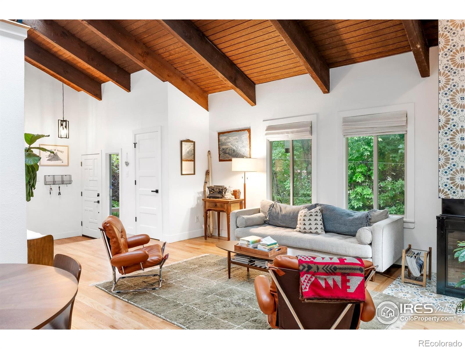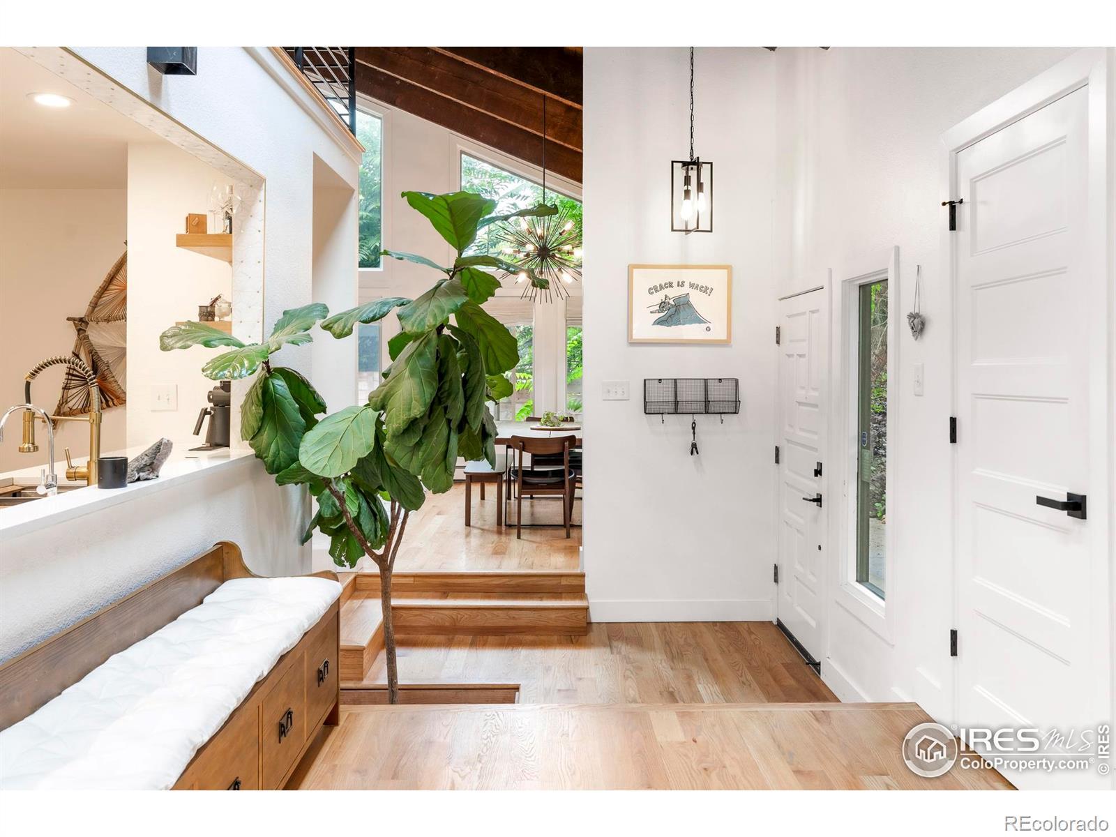 A rare fusion of modern design and timeless character is unveiled in this fully reimagined Applewood Green residence. Showcasing soaring ceilings, an open floorplan unfolds with abundant natural light. A stunning fiddle leaf fig tree anchors the entryway, setting the tone for the home's unique character. The living and dining areas are enhanced by vaulted, wood-beamed ceilings and a striking wood-burning fireplace, while the open kitchen boasts premium finishes perfect for entertaining. Two primary suites - one on each level - offer ideal flexibility for multi-generational living. Upstairs, dual loft areas provide space for a home office or lounge. The lower level is designed for leisure with a movie theater room, wet bar, updated flex space and generous storage. Outside, mature trees and lush foliage create privacy around the expansive yard featuring a patio with a pergola and a raised deck with a custom barrel sauna. An oversized two-car garage and large mudroom complete this renovated retreat.