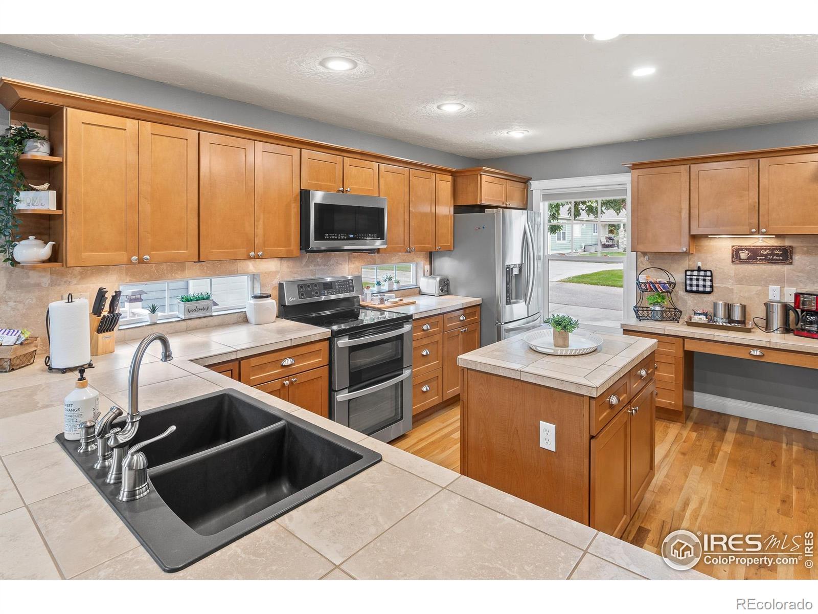 Rare Westridge Patio Home! Enjoy lock-and-go living in this beautifully maintained 3-bedroom, 2-bath patio home with an alley-load heated 2-car garage. The open-concept main floor features wood floors, a bright living room with custom built-ins and a cozy gas fireplace, and a stunning kitchen with custom cabinets, stainless steel appliances, island, and coffee/bar nook. The spacious primary suite offers a large walk-in closet and luxurious 5-piece bath. Main-floor laundry adds convenience, and the full basement is perfect for storage or future expansion. Energy-efficient solar panels keep electric bills low! HOA covers lawn care, snow removal, and trash-ideal for lock-and-go living. Fantastic location close to schools, restaurants, shopping, and the Greeley Family Funplex!