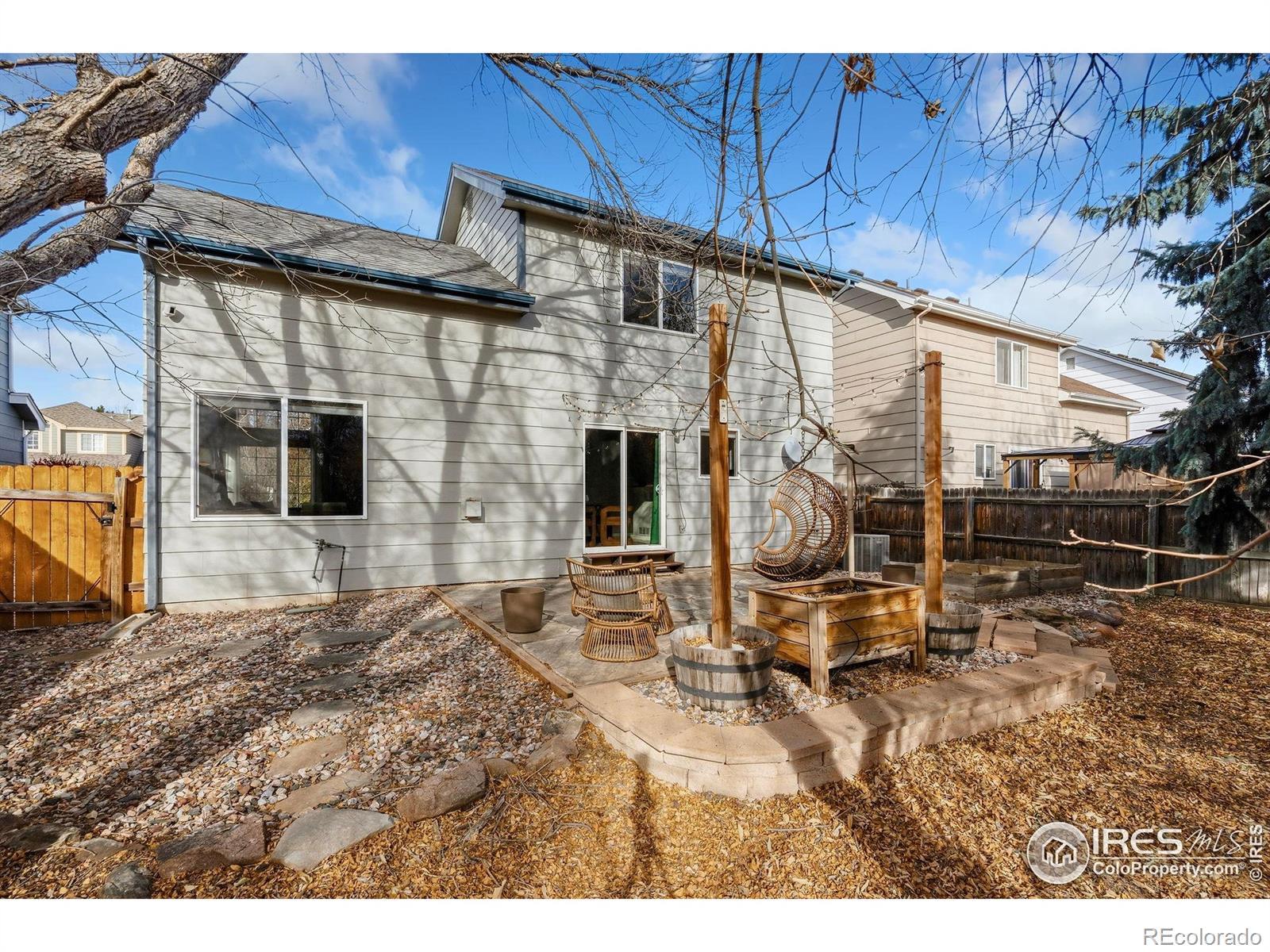 Welcome home to this beautifully cared for gem in the desirable Harmony Crossing neighborhood. Ideally located near schools, parks, local shops, and I-25, this home offers both comfort and convenience for your daily routine and weekend fun. Come inside and feel instantly at home in the bright open living room featuring high ceilings and a cozy gas fireplace, perfect for relaxing or gathering with friends. The updated kitchen and dining area include butcher block counters, modern finishes, stylish lighting, and upgraded features that make cooking and entertaining easy. Upstairs, you'll find three spacious bedrooms and two beautifully updated bathrooms. The unfinished basement offers space for a personal gym, storage, or future expansion. Outside, enjoy a low-maintenance backyard with raised garden beds, a shed, and plenty of space to unwind. Thoughtful details and charming updates throughout make this move in ready Harmony Crossing home a true find!