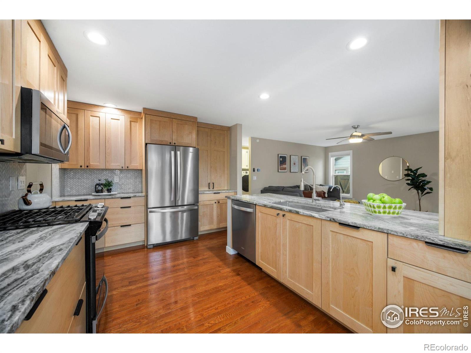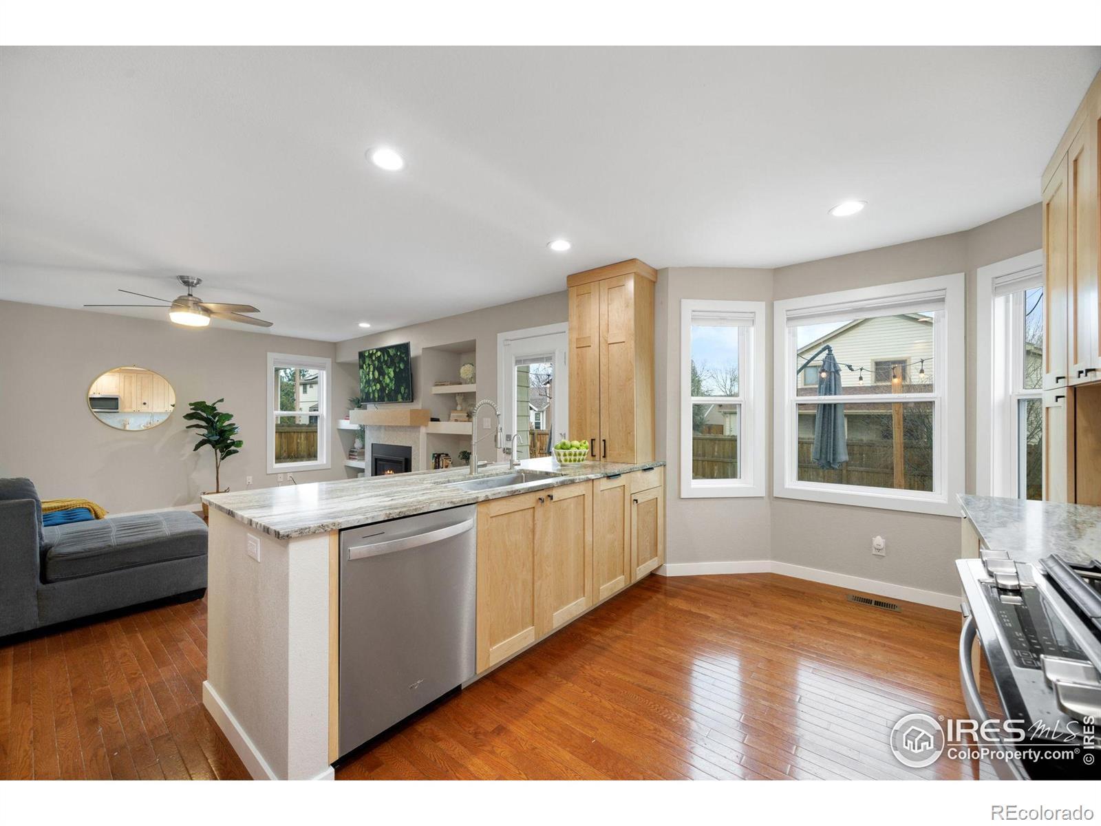 Location, Location, Location!! Welcome home to this beautifully updated 5-bedroom, 4-bathroom residence on a corner lot in desirable Sunstone Village. From the moment you enter, you'll notice the care and craftsmanship that define this thoughtfully designed home. A bright entryway welcomes you with vaulted ceilings, stylish tile flooring, and a custom-crafted banister that sets the tone for the updates throughout. Gather in the inviting living room, where a refinished gas fireplace with a custom maple mantle creates a warm focal point. The designer kitchen, completely reimagined in 2022, features quartzite countertops, maple cabinetry, and near-new stainless steel appliances, including a gas range ideal for everyday cooking and entertaining.Upstairs, the bedrooms offer comfort and quiet, complemented by new carpet. The house is completed with an energy-efficient furnace and water heater to newer windows and trim. Exit outside to a serene backyard oasis, perfect for morning coffee or evenings under the Colorado sky. With modern updates and timeless appeal, this Sunstone Village home is ready to welcome you.