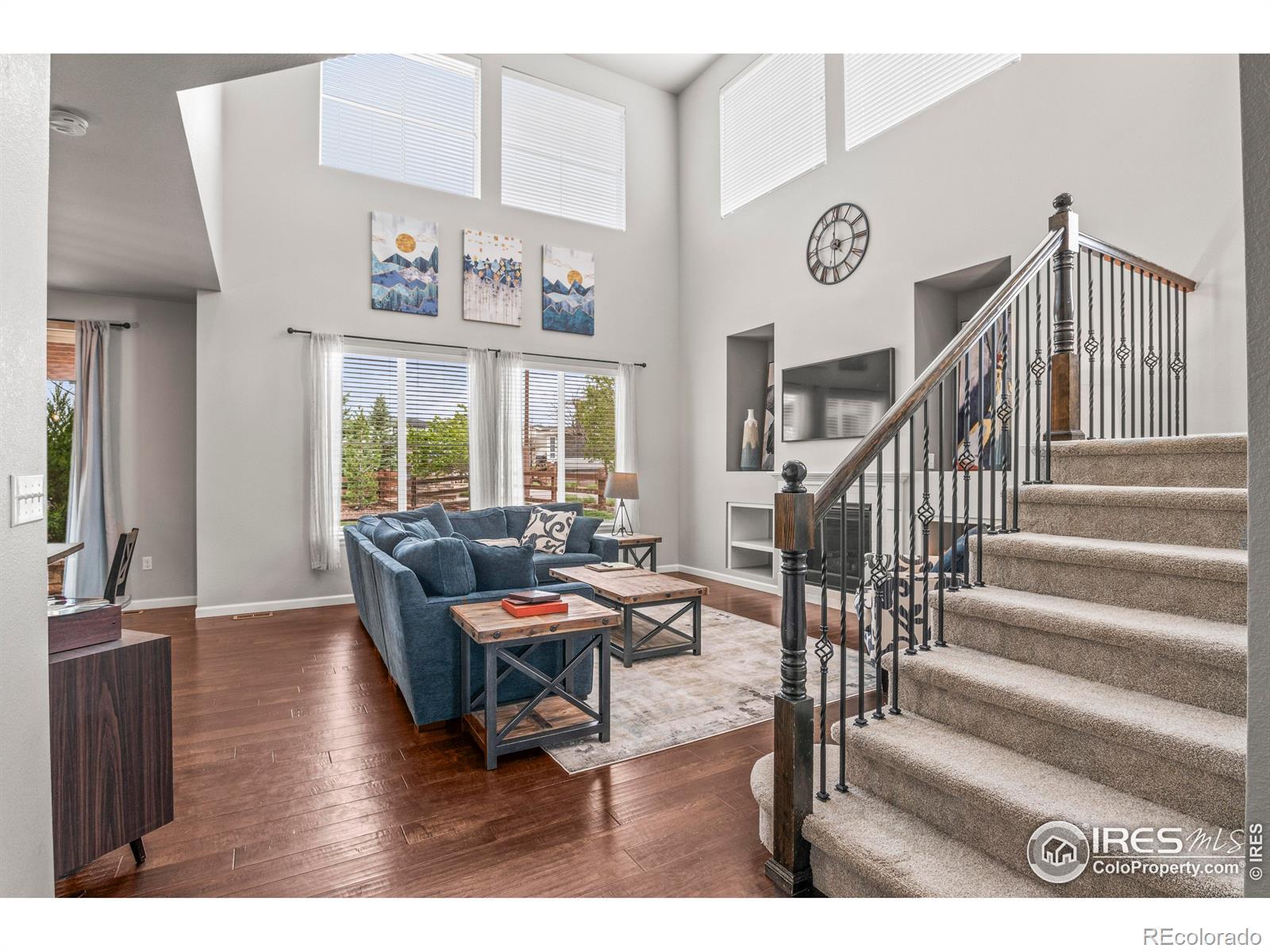*New Roof 2022 with transferrable warranty, new water heater in 2022, and solar panels paid off! Stunning Corner-Lot Home with Mountain Views in Coveted Candelas! Perfectly positioned on a spacious corner lot, this beautifully upgraded 4-bedroom, 4-bathroom home (5th bedroom could be added, currently storage) fronts to serene open space, a peaceful community pond, and showcases breathtaking mountain views from nearly every room. Step inside to discover bright, open living spaces flooded with natural light. The main level features gleaming hardwood floors, a private home office, and a seamless flow from the gourmet kitchen-complete with granite countertops, stainless steel appliances (including a gas range), and a center island-into the inviting living and dining areas. Upstairs, the expansive primary suite is a true retreat with a luxurious 5-piece bathroom, soaking tub, walk-in shower, and a generous closet. The fully finished basement adds even more living space, offering a stylish guest suite, a home theatre area, a dry bar with wine cooler, and ample storage. Designed for both relaxation and entertaining, the professionally landscaped backyard boasts a covered stamped concrete patio, a charming pergola, and an automatic sprinkler system for easy maintenance. With neighbors on only two sides, you'll enjoy extra privacy and tranquility. Additional features include an oversized garage (roomy enough for a full-sized truck), a second refrigerator, built-in storage shelving, a radon mitigation system, and a fully paid-off solar system to keep energy bills low. Located in the vibrant Candelas community, you'll have access to two resort-style pools, fitness centers, six parks, and over 16 miles of interconnected trails-right outside your front door. This home has it all-style, space, upgrades, and unbeatable views. The only thing missing is you!