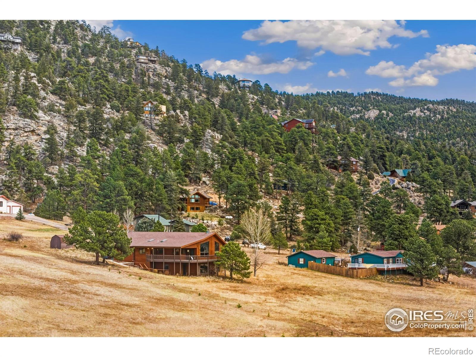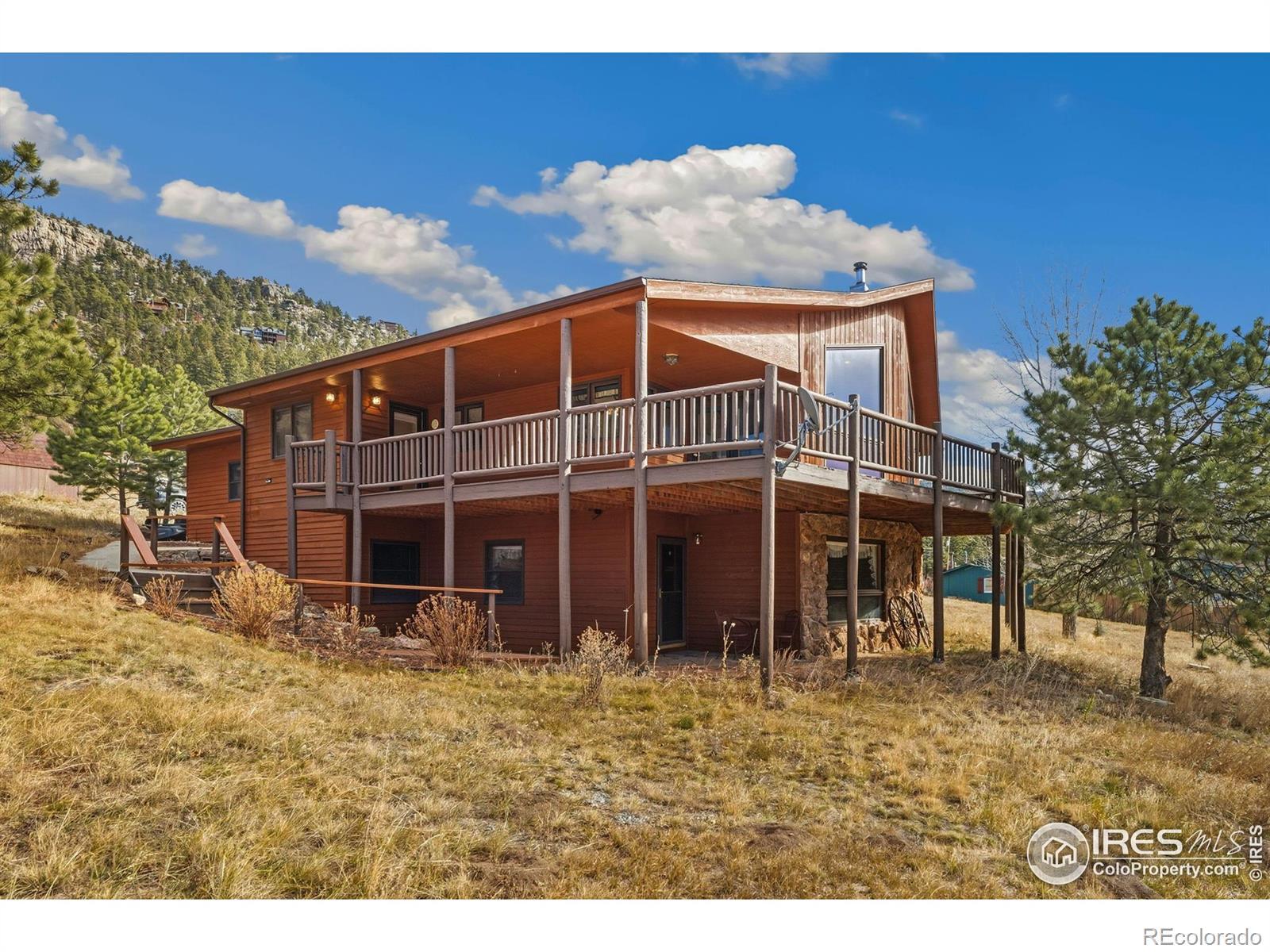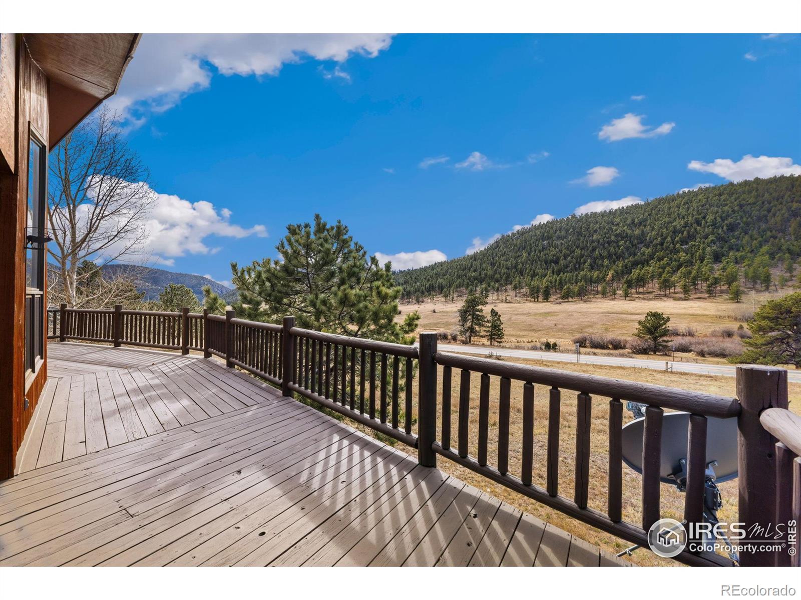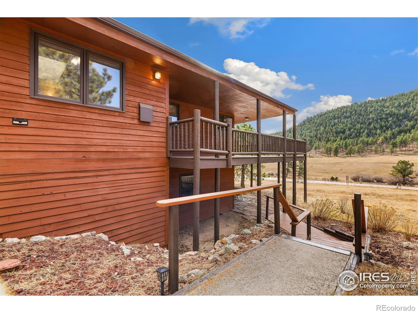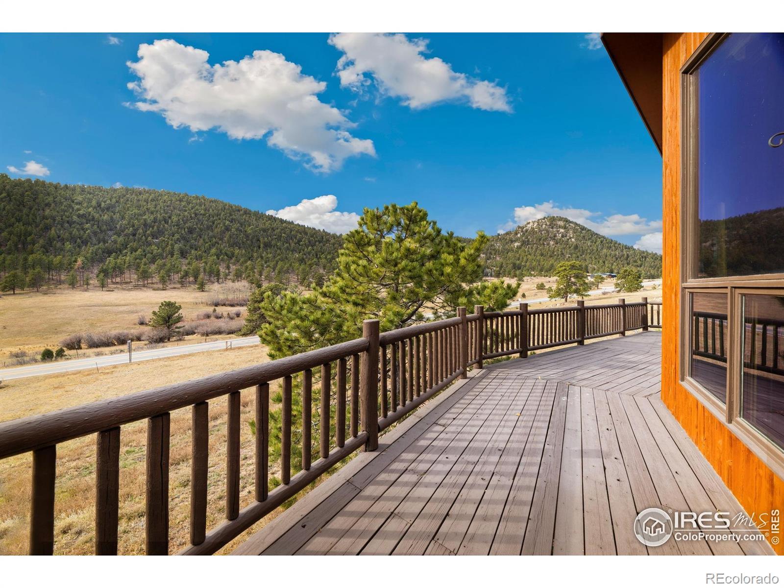 Discover your mountain retreat in Estes Park. This charming home welcomes you with custom wood-paneled ceilings, expansive windows, and wide-open living spaces that bring the beauty of the outdoors inside. Vaulted ceilings, a wood burning stove, and a spacious wrap-around deck.Step into the great room where natural light spills in, highlighting rich wood tones and sweeping views of open meadow and forest beyond. From your deck you'll gaze out across wide-open space toward the pine-covered hills, offering serene scenery by day and starlit skies by night.The main level offers a bright great room, dining area, kitchen with a breakfast nook, a cozy family room, two bedrooms and two baths. The lower level provides a self-contained ADU/guest suite with its own entrance, kitchen, living area, bedroom and bath. Alongside is a rec room that could serve as home theatre, gym, game area or extra sleeping zone. A two-car garage, two sheds, and space to park your RV completes the ensemble.Enjoy frequent wildlife sightings, a sense of privacy and direct access to national forest trails just up the road. Hermit Park lies across the way with convenient hiking access, and Highway 36 places downtown Estes Park and the Front Range minutes away. Ideal for full-time living, a weekend escape or income-producing potential, this home blends comfort, character and adventure in the heart of Colorado's mountain beauty.
