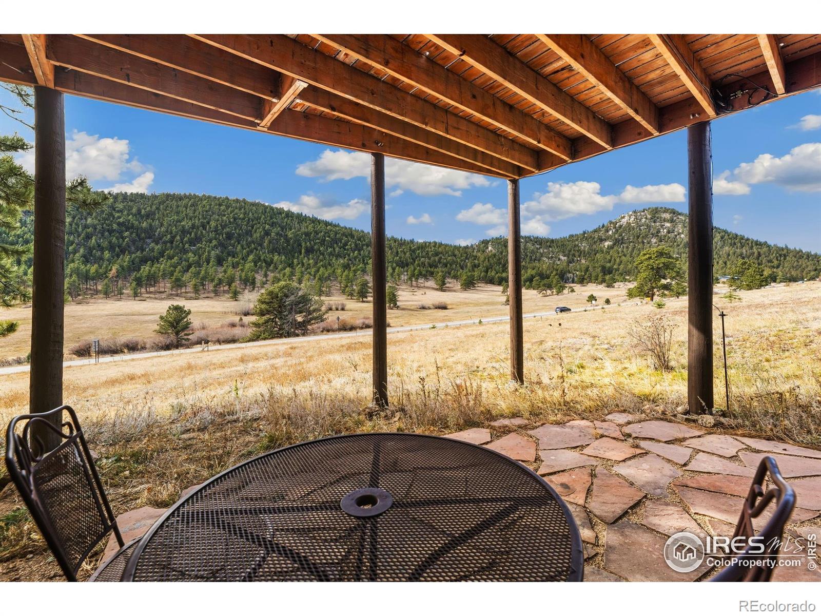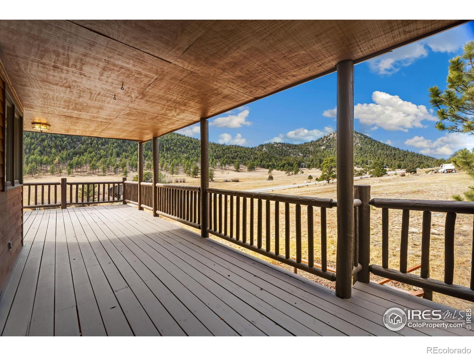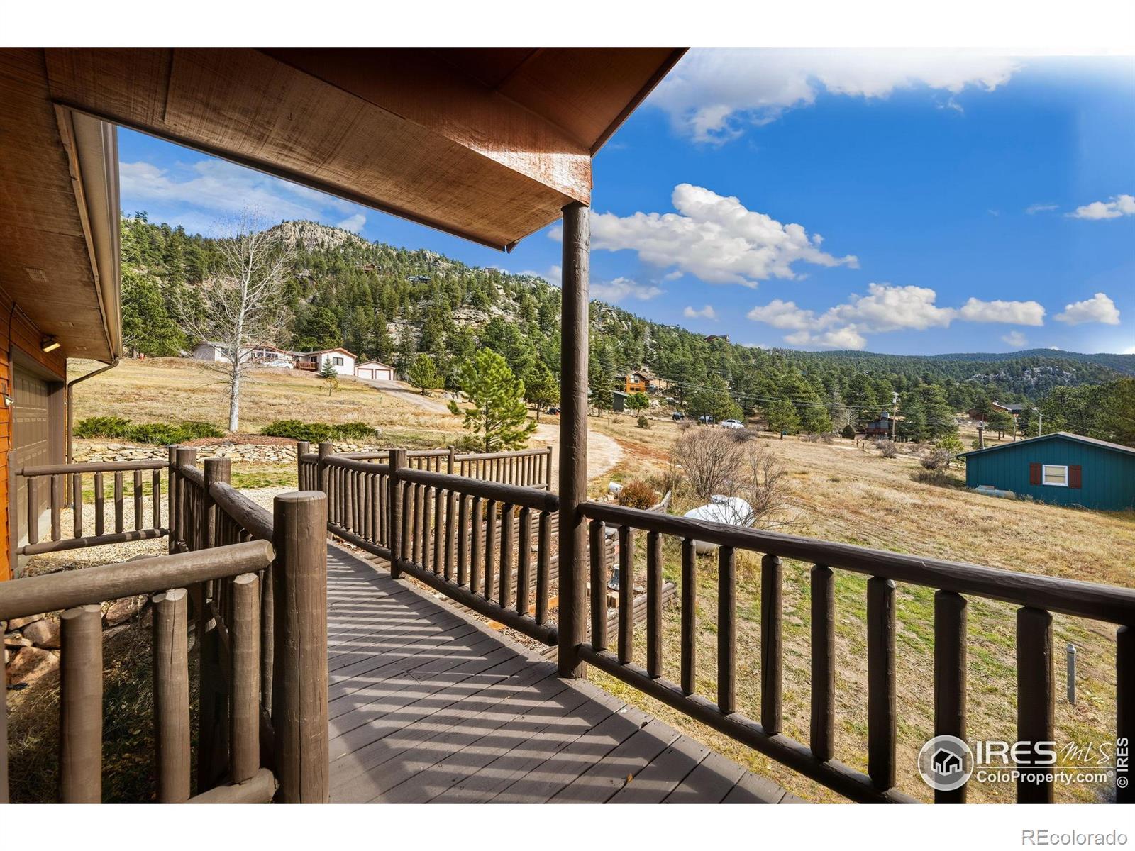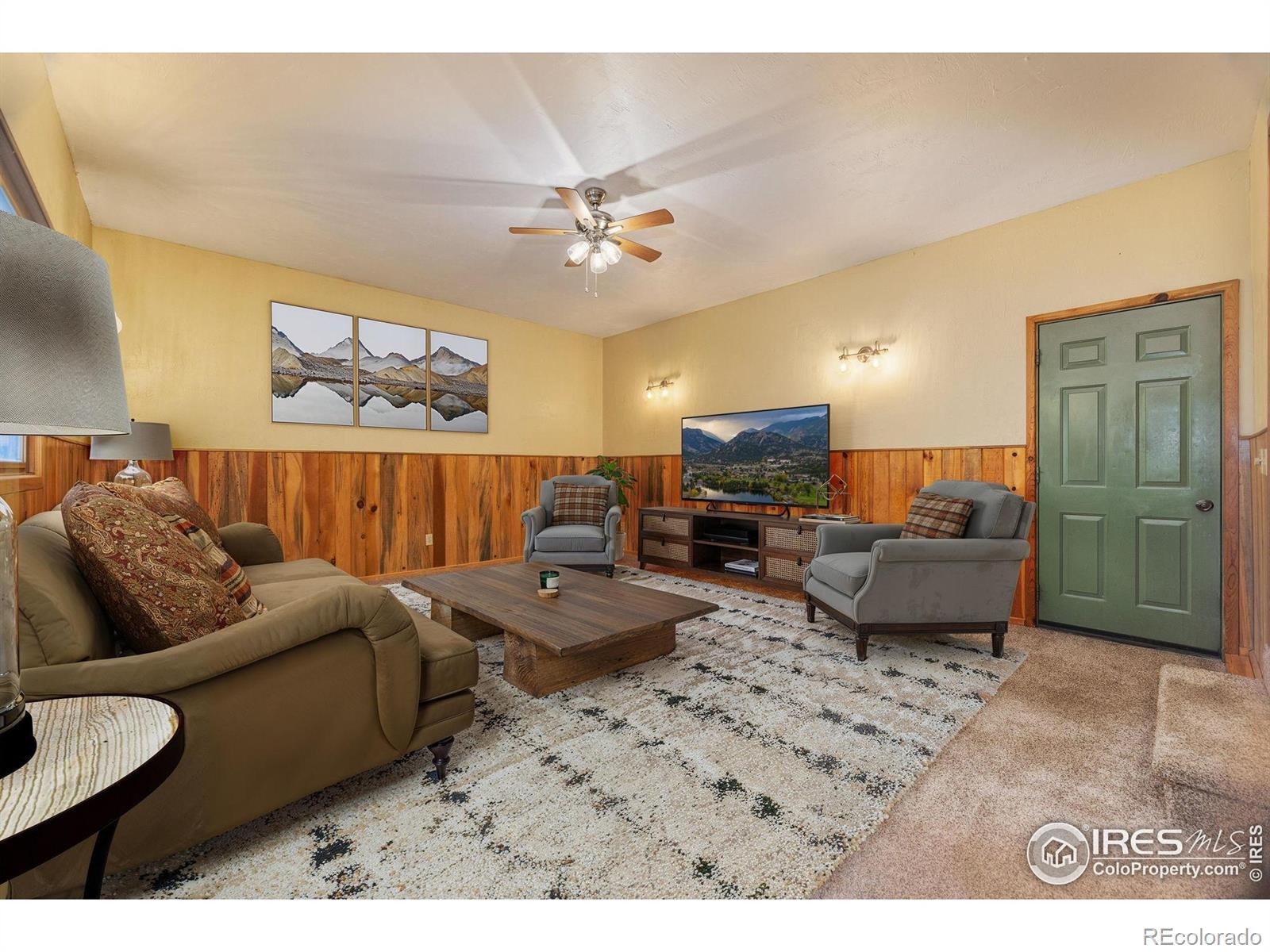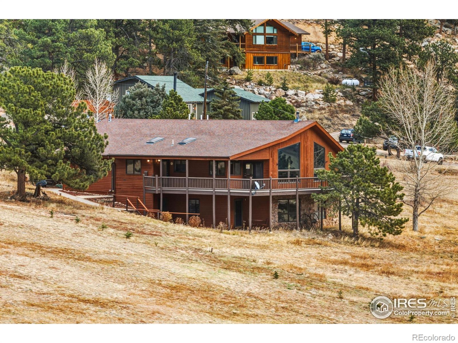 Discover your mountain retreat in Estes Park. This charming home welcomes you with custom wood-paneled ceilings, expansive windows, and wide-open living spaces that bring the beauty of the outdoors inside. Vaulted ceilings, a wood burning stove, and a spacious wrap-around deck.Step into the great room where natural light spills in, highlighting rich wood tones and sweeping views of open meadow and forest beyond. From your deck you'll gaze out across wide-open space toward the pine-covered hills, offering serene scenery by day and starlit skies by night.The main level offers a bright great room, dining area, kitchen with a breakfast nook, a cozy family room, two bedrooms and two baths. The lower level provides a self-contained ADU/guest suite with its own entrance, kitchen, living area, bedroom and bath. Alongside is a rec room that could serve as home theatre, gym, game area or extra sleeping zone. A two-car garage, two sheds, and space to park your RV completes the ensemble.Enjoy frequent wildlife sightings, a sense of privacy and direct access to national forest trails just up the road. Hermit Park lies across the way with convenient hiking access, and Highway 36 places downtown Estes Park and the Front Range minutes away. Ideal for full-time living, a weekend escape or income-producing potential, this home blends comfort, character and adventure in the heart of Colorado's mountain beauty.