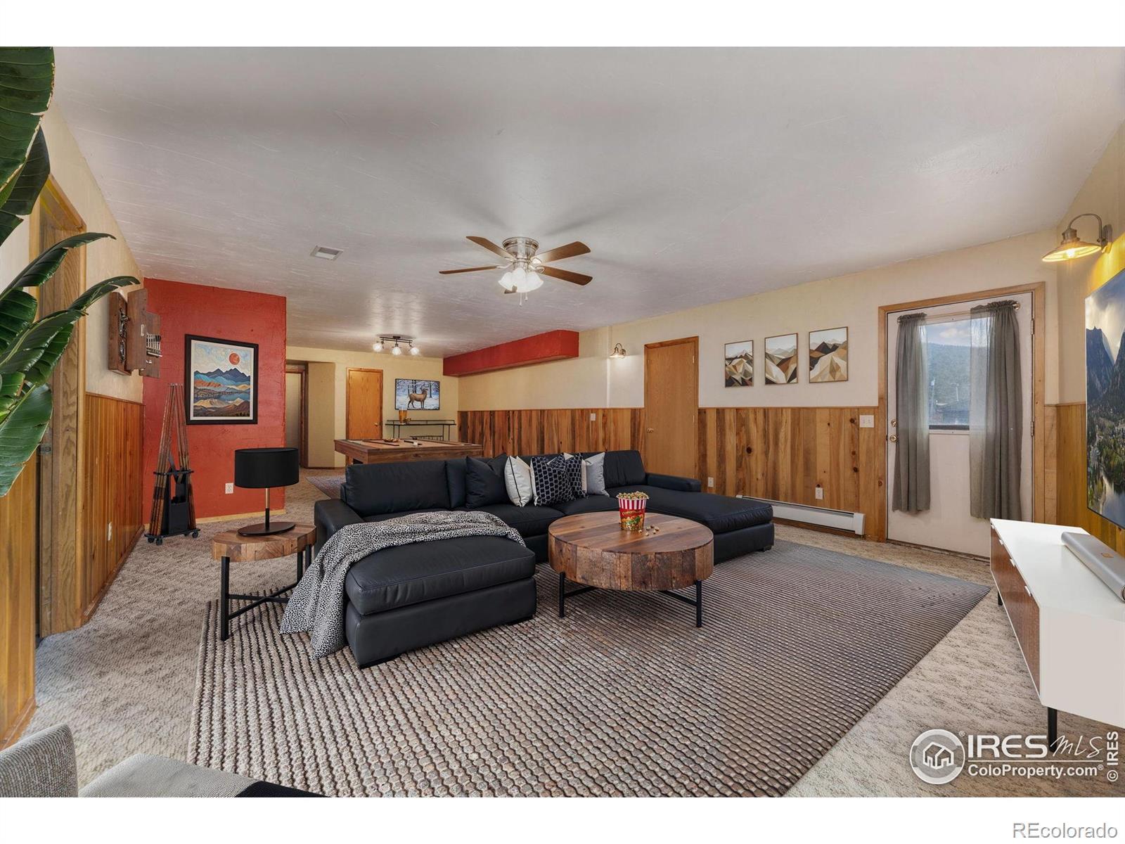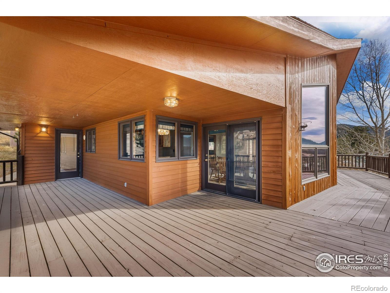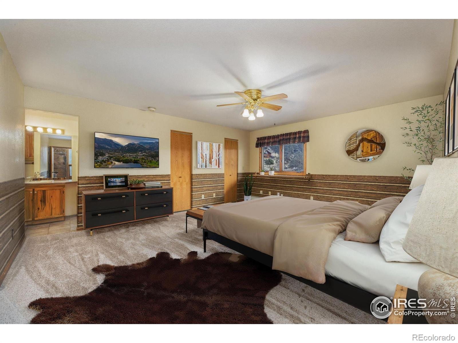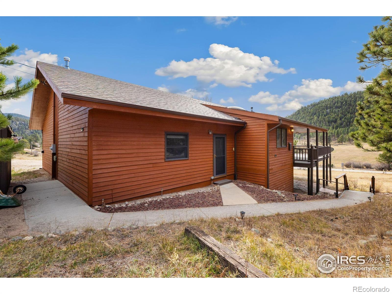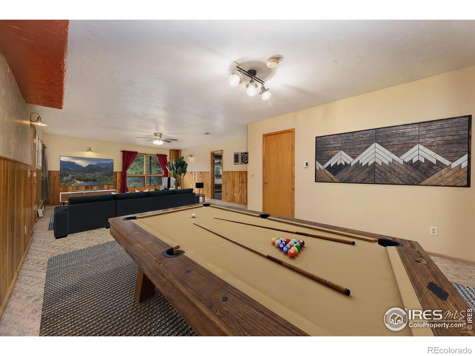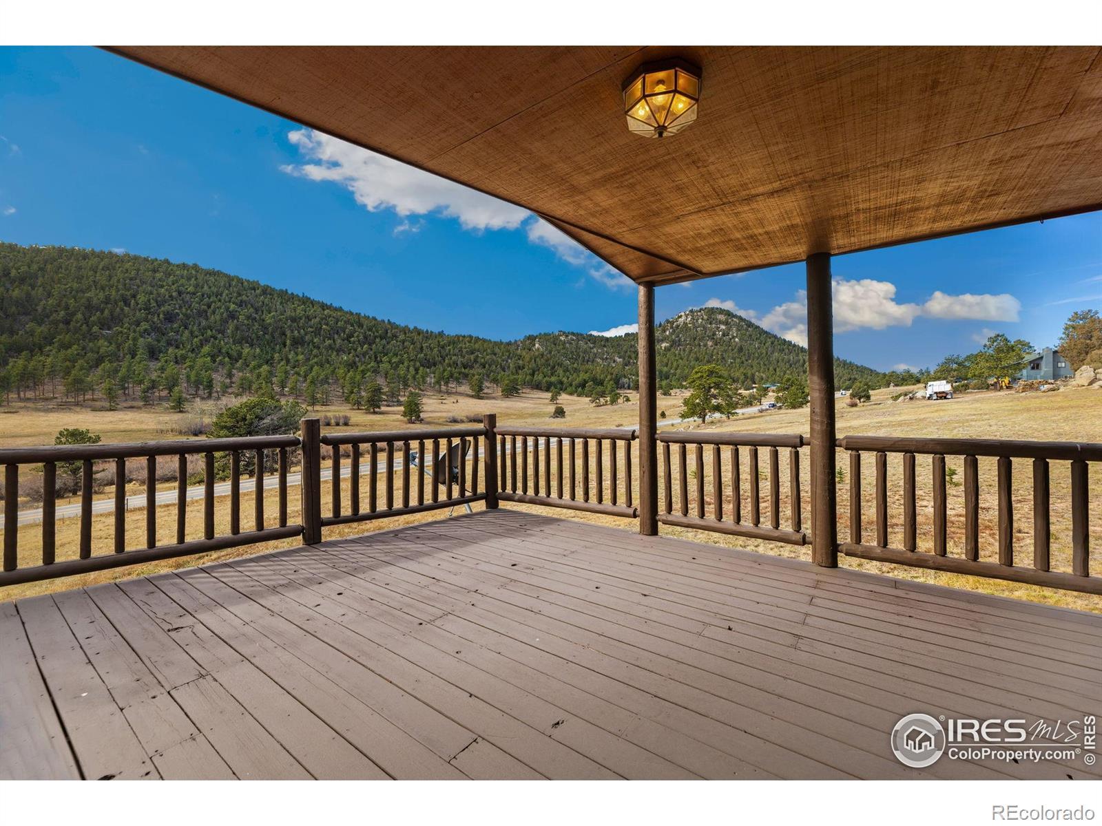 Discover your mountain retreat in Estes Park. This charming home welcomes you with custom wood-paneled ceilings, expansive windows, and wide-open living spaces that bring the beauty of the outdoors inside. Vaulted ceilings, a wood burning stove, and a spacious wrap-around deck.Step into the great room where natural light spills in, highlighting rich wood tones and sweeping views of open meadow and forest beyond. From your deck you'll gaze out across wide-open space toward the pine-covered hills, offering serene scenery by day and starlit skies by night.The main level offers a bright great room, dining area, kitchen with a breakfast nook, a cozy family room, two bedrooms and two baths. The lower level provides a self-contained ADU/guest suite with its own entrance, kitchen, living area, bedroom and bath. Alongside is a rec room that could serve as home theatre, gym, game area or extra sleeping zone. A two-car garage, two sheds, and space to park your RV completes the ensemble.Enjoy frequent wildlife sightings, a sense of privacy and direct access to national forest trails just up the road. Hermit Park lies across the way with convenient hiking access, and Highway 36 places downtown Estes Park and the Front Range minutes away. Ideal for full-time living, a weekend escape or income-producing potential, this home blends comfort, character and adventure in the heart of Colorado's mountain beauty.