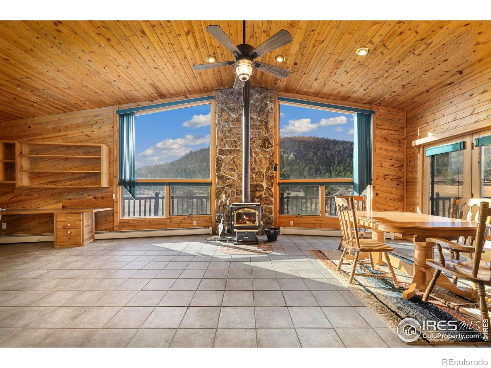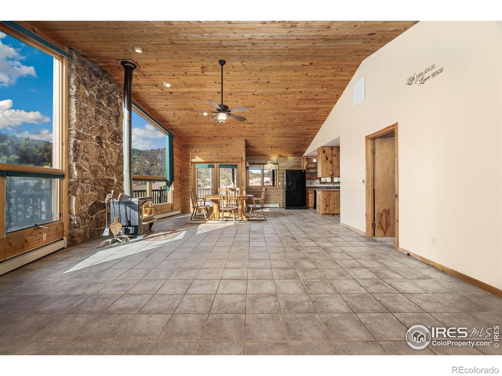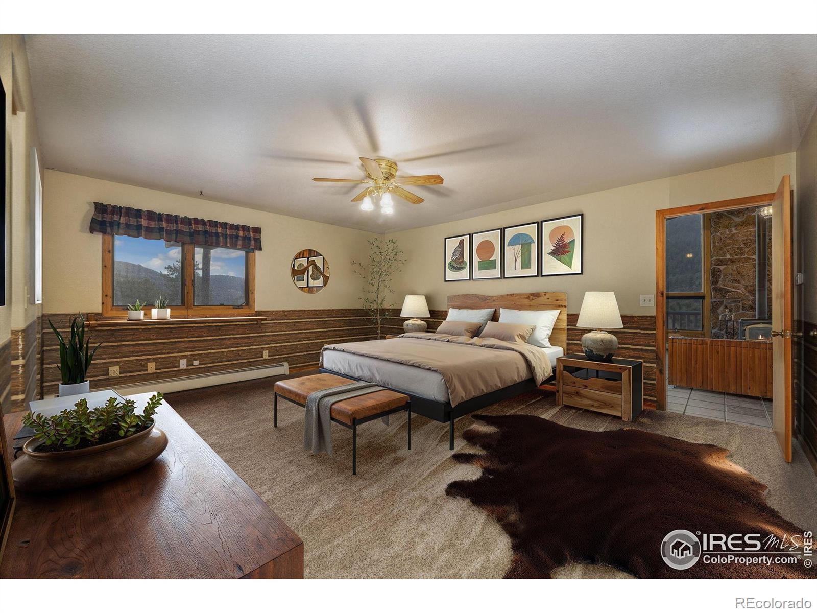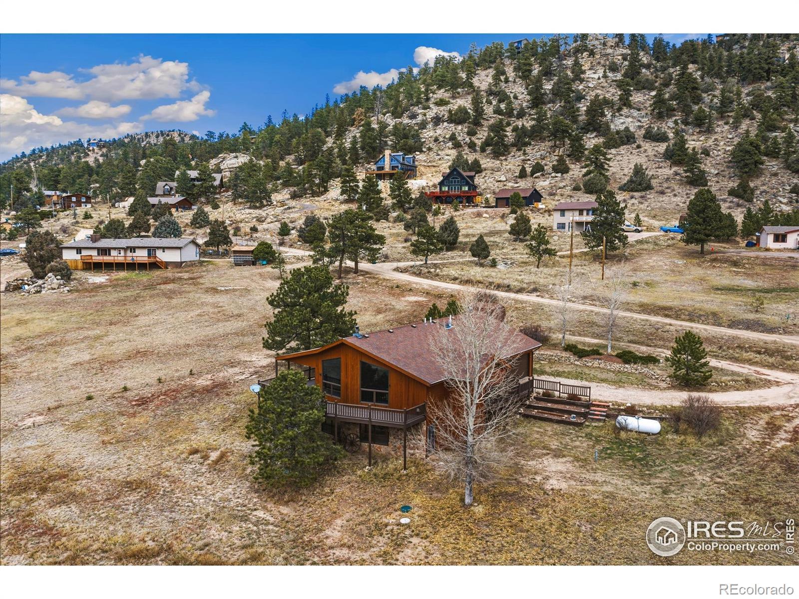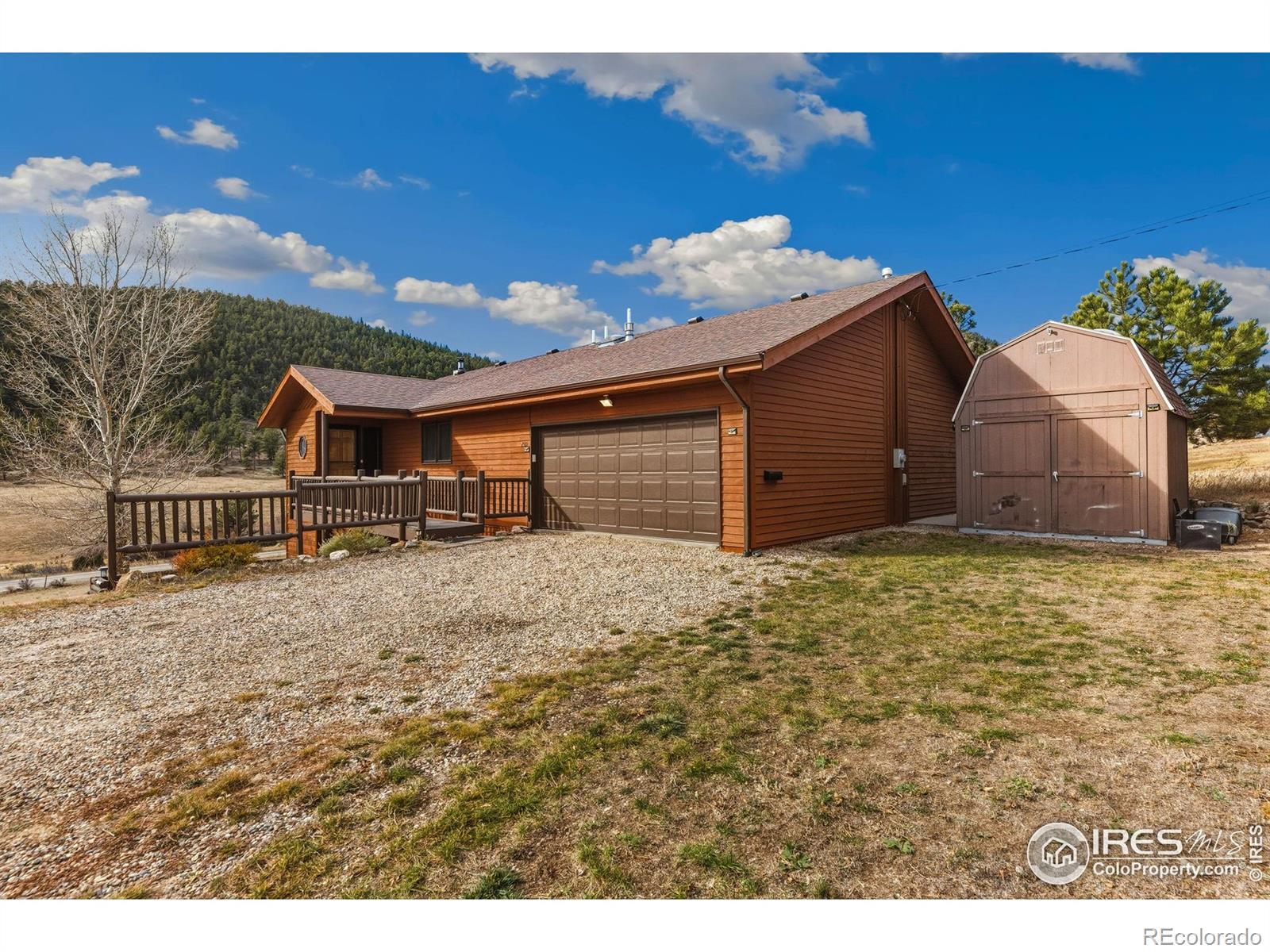 Discover your mountain retreat in Estes Park. This charming home welcomes you with custom wood-paneled ceilings, expansive windows, and wide-open living spaces that bring the beauty of the outdoors inside. Vaulted ceilings, a wood burning stove, and a spacious wrap-around deck.Step into the great room where natural light spills in, highlighting rich wood tones and sweeping views of open meadow and forest beyond. From your deck you'll gaze out across wide-open space toward the pine-covered hills, offering serene scenery by day and starlit skies by night.The main level offers a bright great room, dining area, kitchen with a breakfast nook, a cozy family room, two bedrooms and two baths. The lower level provides a self-contained ADU/guest suite with its own entrance, kitchen, living area, bedroom and bath. Alongside is a rec room that could serve as home theatre, gym, game area or extra sleeping zone. A two-car garage, two sheds, and space to park your RV completes the ensemble.Enjoy frequent wildlife sightings, a sense of privacy and direct access to national forest trails just up the road. Hermit Park lies across the way with convenient hiking access, and Highway 36 places downtown Estes Park and the Front Range minutes away. Ideal for full-time living, a weekend escape or income-producing potential, this home blends comfort, character and adventure in the heart of Colorado's mountain beauty.