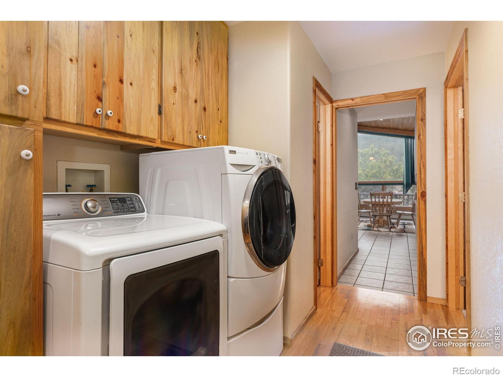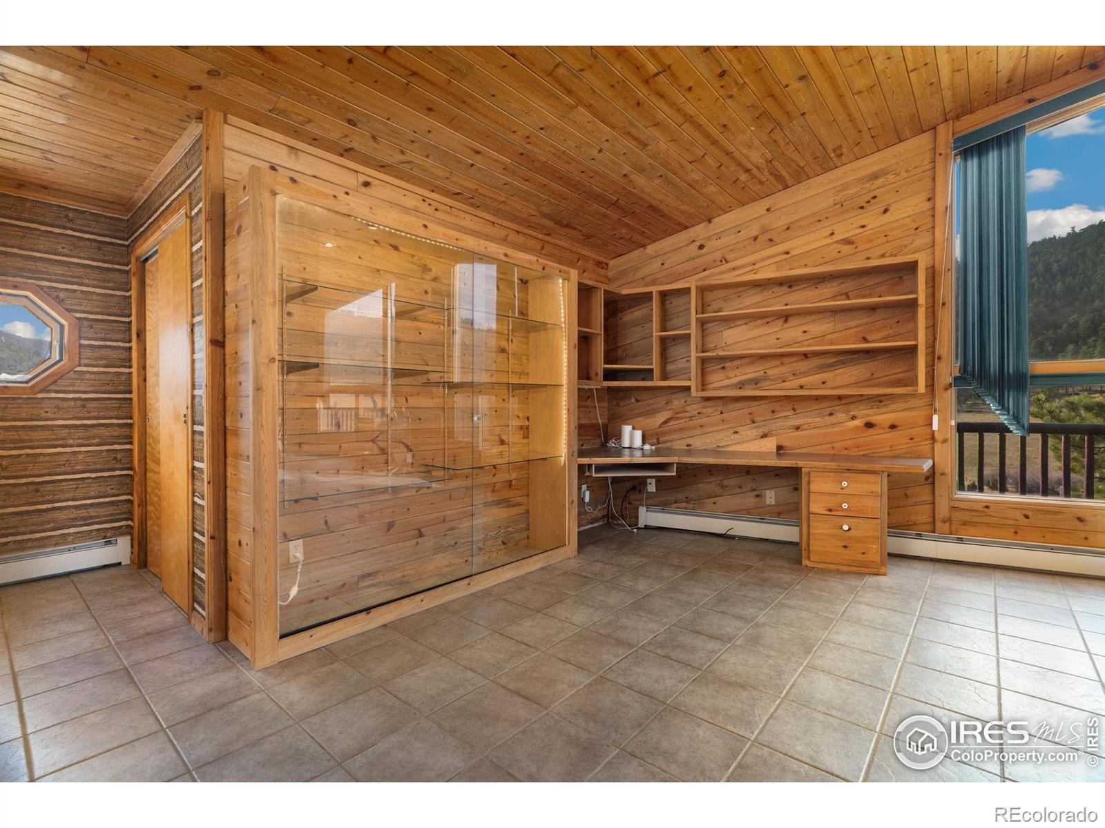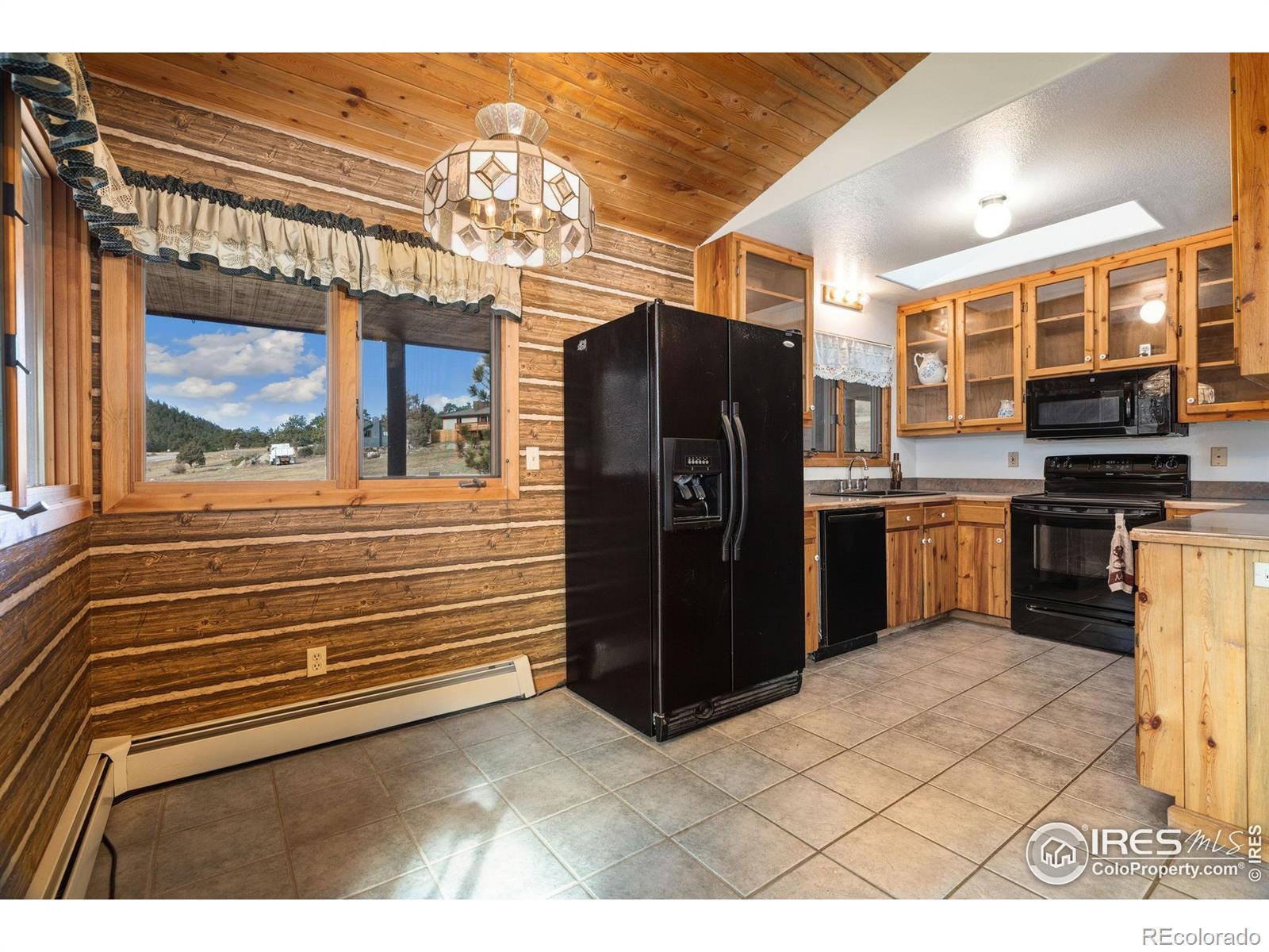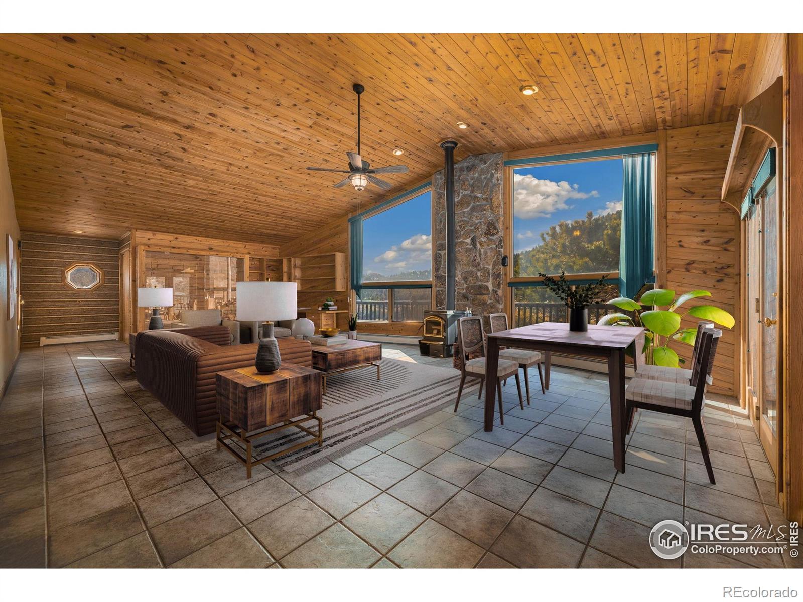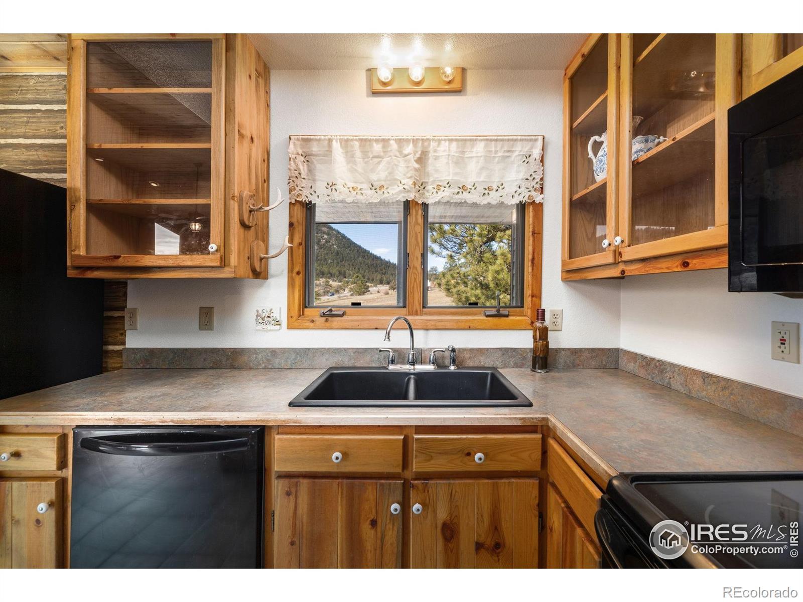 Discover your mountain retreat in Estes Park. This charming home welcomes you with custom wood-paneled ceilings, expansive windows, and wide-open living spaces that bring the beauty of the outdoors inside. Vaulted ceilings, a wood burning stove, and a spacious wrap-around deck.Step into the great room where natural light spills in, highlighting rich wood tones and sweeping views of open meadow and forest beyond. From your deck you'll gaze out across wide-open space toward the pine-covered hills, offering serene scenery by day and starlit skies by night.The main level offers a bright great room, dining area, kitchen with a breakfast nook, a cozy family room, two bedrooms and two baths. The lower level provides a self-contained ADU/guest suite with its own entrance, kitchen, living area, bedroom and bath. Alongside is a rec room that could serve as home theatre, gym, game area or extra sleeping zone. A two-car garage, two sheds, and space to park your RV completes the ensemble.Enjoy frequent wildlife sightings, a sense of privacy and direct access to national forest trails just up the road. Hermit Park lies across the way with convenient hiking access, and Highway 36 places downtown Estes Park and the Front Range minutes away. Ideal for full-time living, a weekend escape or income-producing potential, this home blends comfort, character and adventure in the heart of Colorado's mountain beauty.