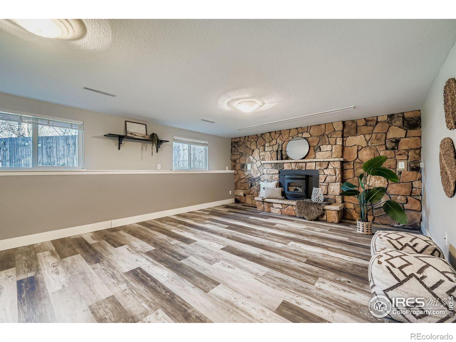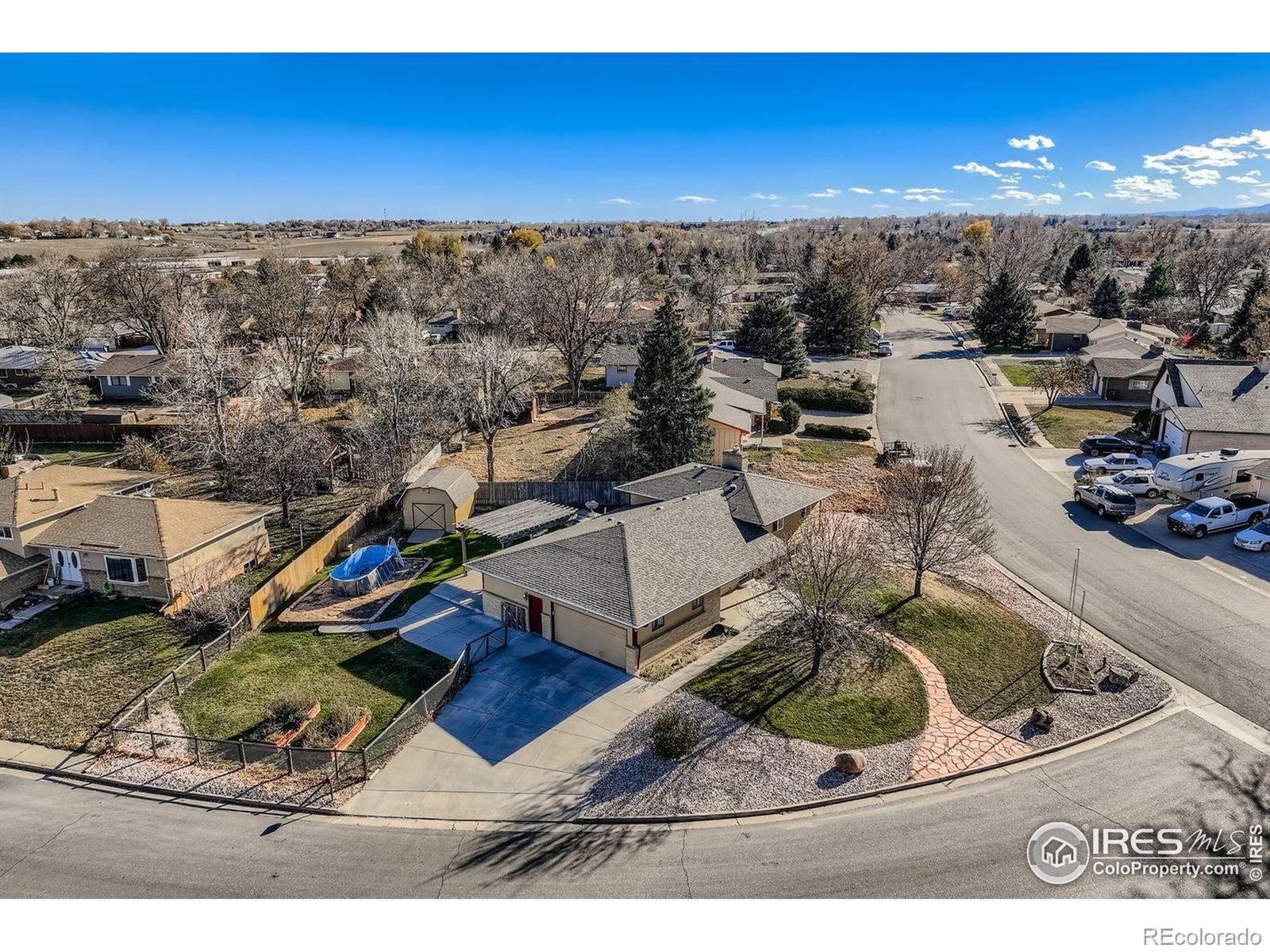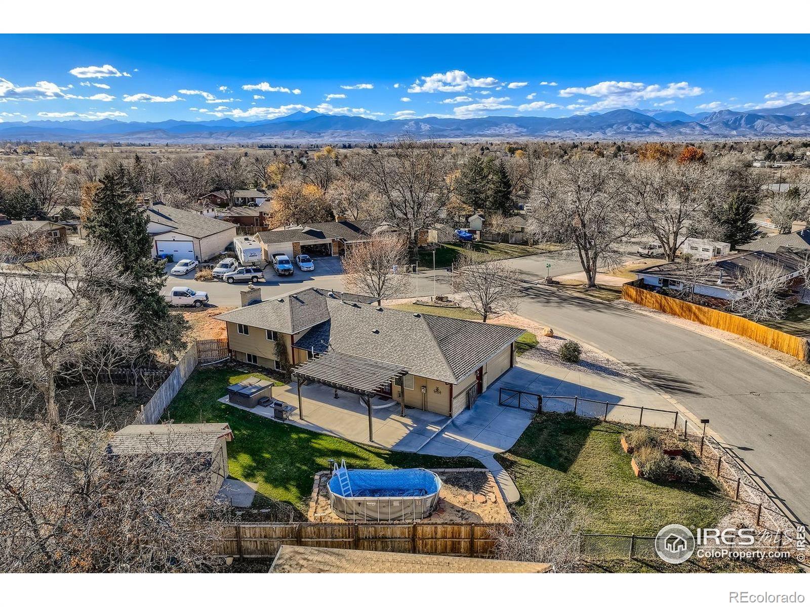 Just minutes from downtown Loveland, this stunning multi-level home delivers undeniable wow factor from the moment you walk in. With no HOA and no Metro District, the main level is designed for both style and function, featuring a chef-inspired industrial kitchen with a large island, Dacor appliances, abundant cabinetry, and seamless flow into the dining area and spacious living room-ideal for gatherings and everyday living. Upstairs, you'll find a generous primary suite complete with a private bath and his-and-her closets. Two additional bedrooms and a beautifully updated full wet bath complete this level, offering modern convenience and thoughtful design.The lower level provides a cozy retreat with a welcoming family room featuring a pellet stove, another bedroom, and a 3/4 bathroom-perfect for guests or multi-generational living. One level down, the partially finished basement adds even more flexibility with an additional bedroom and the laundry room. Step outside to your backyard oasis-a large patio with pergola, natural gas grill, hot tub, above-ground pool, powered storage shed with lighting, and even space for chickens with a small coop ready to go. RV parking on the south side and an oversized 2-car garage with a workshop area complete this impressive property. Major upgrades include a new electrical panel, new water heater, and new radon system, making this home truly move-in ready. The laundry was relocated to the basement by the current owners, but there is a gas stub on the lower level at the original location should future owners wish to move it back. Refrigerator in the garage, freezer in the basement, and the hot tub are also included. 1/2 Mile to Derby Hill Park