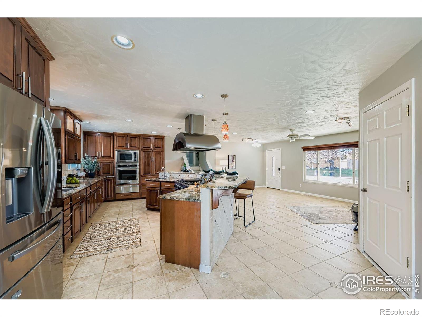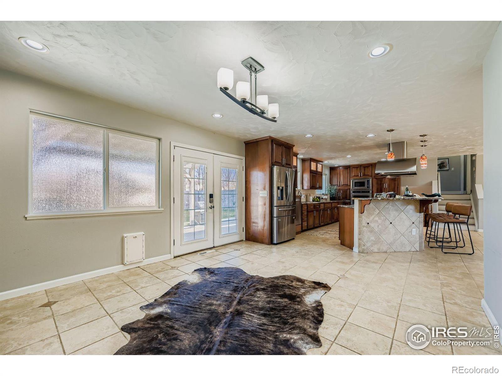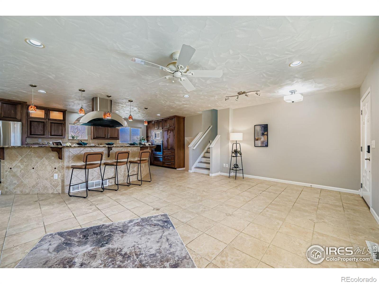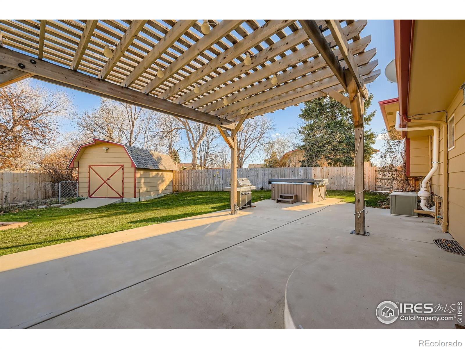 Just minutes from downtown Loveland, this stunning multi-level home delivers undeniable wow factor from the moment you walk in. With no HOA and no Metro District, the main level is designed for both style and function, featuring a chef-inspired industrial kitchen with a large island, Dacor appliances, abundant cabinetry, and seamless flow into the dining area and spacious living room-ideal for gatherings and everyday living. Upstairs, you'll find a generous primary suite complete with a private bath and his-and-her closets. Two additional bedrooms and a beautifully updated full wet bath complete this level, offering modern convenience and thoughtful design.The lower level provides a cozy retreat with a welcoming family room featuring a pellet stove, another bedroom, and a 3/4 bathroom-perfect for guests or multi-generational living. One level down, the partially finished basement adds even more flexibility with an additional bedroom and the laundry room. Step outside to your backyard oasis-a large patio with pergola, natural gas grill, hot tub, above-ground pool, powered storage shed with lighting, and even space for chickens with a small coop ready to go. RV parking on the south side and an oversized 2-car garage with a workshop area complete this impressive property. Major upgrades include a new electrical panel, new water heater, and new radon system, making this home truly move-in ready. The laundry was relocated to the basement by the current owners, but there is a gas stub on the lower level at the original location should future owners wish to move it back. Refrigerator in the garage, freezer in the basement, and the hot tub are also included. 1/2 Mile to Derby Hill Park