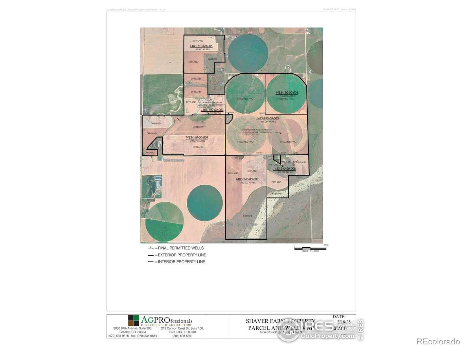 Approximately 480 acres of irrigated ground with 4 pivots. The remainder of the property is made up of 880 +/- acres of dryland and access roads, 250+/- acres of pasture, farmstead with a house, shops, grain storage, and cattle pens (approximately 20 acres). There are 8 wells commingled to supply water to the four pivot sprinklers, and 3 additional permitted, undrilled wells that could irrigate 160 acres around the farmstead. The Shaver Farms property, located in Southwestern Morgan County Colorado, has been operated by the Shaver family for 3 generations. The irrigated crops have shown high yields over the years, crop records are available upon request. This is a profitable farm with very nice amenities, making it easy to get the day's work done and take proper care of the equipment. Too many positives to list, but this farm being profitable should tell you enough, a must see. Call for information and to see the farm.