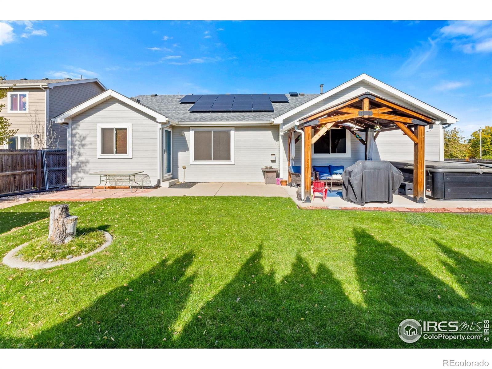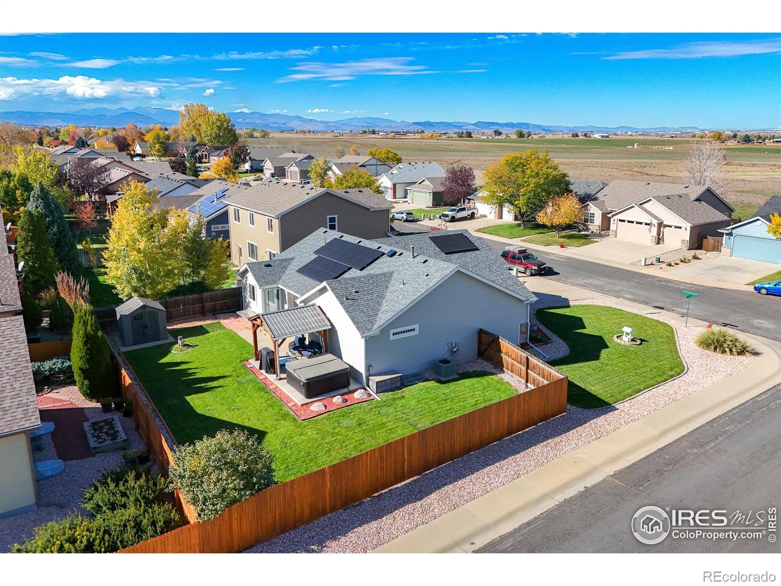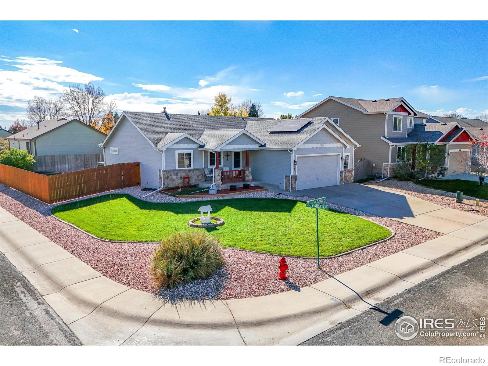 Welcome Home to 1720 Goldenvue Dr in Rolling Hills Ranch! A very livable 5 Bed - 3 Bath Open Floor Plan Ranch style home with a Full Finished Basement! Plus a New Paid Off Solar System cutting those electric bills to practically nothing! Everything is done and Move in Ready, including new Interior and Exterior paint, LVP Flooring, Stainless Appliances, New Windows throughout, Newer Roof, Gorgeous Landscaping even with a new storage shed! Don't miss the Oversized Garage with workshop kickout, ideal for tools, toys, or shelving. Large Kitchen with plenty of cabinet space including a huge pantry plus an eat in kitchen nook. Come visit one of the Best Neighborhoods in Johnstown and view this well cared for home. Centrally located within walking distance to the New Roosevelt Middle School, Nelson Park Fields, Shopping and an easy shot to I25. PLUS - NO METRO Tax and super low HOA! Johnstown is Booming and 1720 Goldenvue in Rolling Hills Ranch is the place to be!