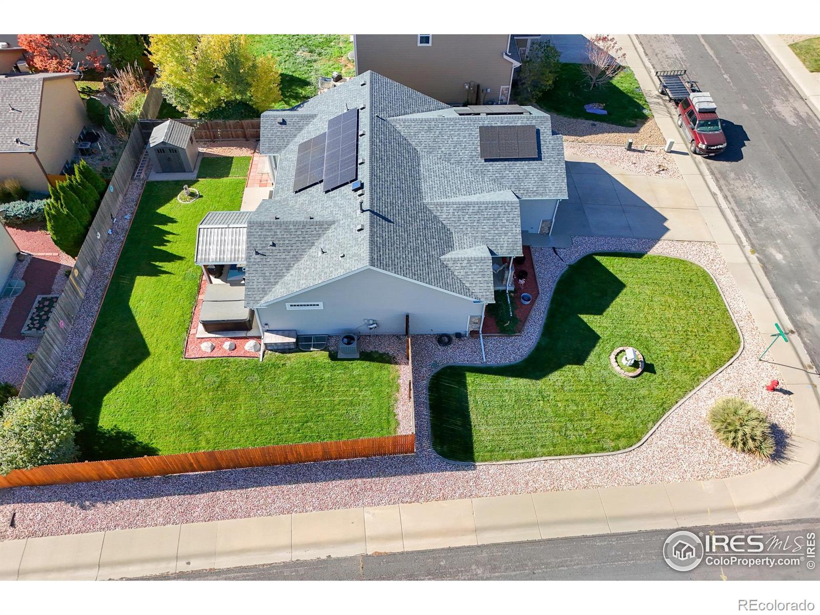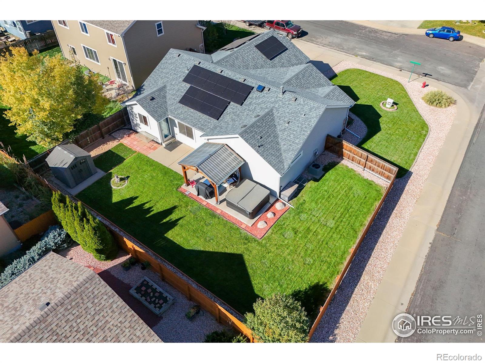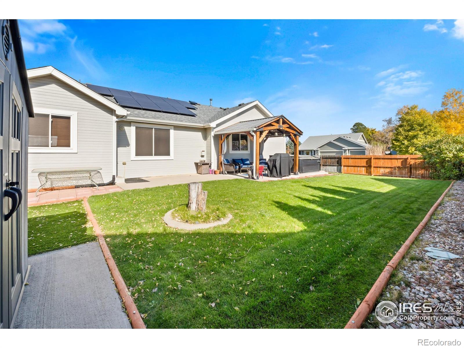 Welcome Home to 1720 Goldenvue Dr in Rolling Hills Ranch! A very livable 5 Bed - 3 Bath Open Floor Plan Ranch style home with a Full Finished Basement! Plus a New Paid Off Solar System cutting those electric bills to practically nothing! Everything is done and Move in Ready, including new Interior and Exterior paint, LVP Flooring, Stainless Appliances, New Windows throughout, Newer Roof, Gorgeous Landscaping even with a new storage shed! Don't miss the Oversized Garage with workshop kickout, ideal for tools, toys, or shelving. Large Kitchen with plenty of cabinet space including a huge pantry plus an eat in kitchen nook. Come visit one of the Best Neighborhoods in Johnstown and view this well cared for home. Centrally located within walking distance to the New Roosevelt Middle School, Nelson Park Fields, Shopping and an easy shot to I25. PLUS - NO METRO Tax and super low HOA! Johnstown is Booming and 1720 Goldenvue in Rolling Hills Ranch is the place to be!