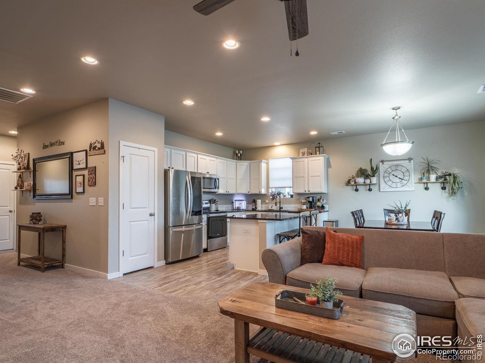 Step into this stunning 3-bedroom, 2-bathroom ranch-style home, built in 2020; offering modern comfort with timeless appeal. Freshly installed carpet throughout for that brand new feel. Spacious open floor plan with a welcoming kitchen island, perfect for gatherings. With A 3-car garage and a generous 6,800 Sq ft lot with a fully fenced yard, you'll have plenty of space for all that storage. Featuring a solar panel roof to help lower electricity costs. During the hot Colorado months, enjoy and relax in the neighborhood pool. Location highlights to this amazing home; include local Elementary and Middle Schools less than a mile away, Convenient access to grocery stores, coffee shops, pharmacies, and more. A quaint, friendly neighborhood with everything you need close by. This home combines modern efficiency with community charm, making it the perfect place to settle in and enjoy all that Wellington has to offer. Showings to begin on November 22.